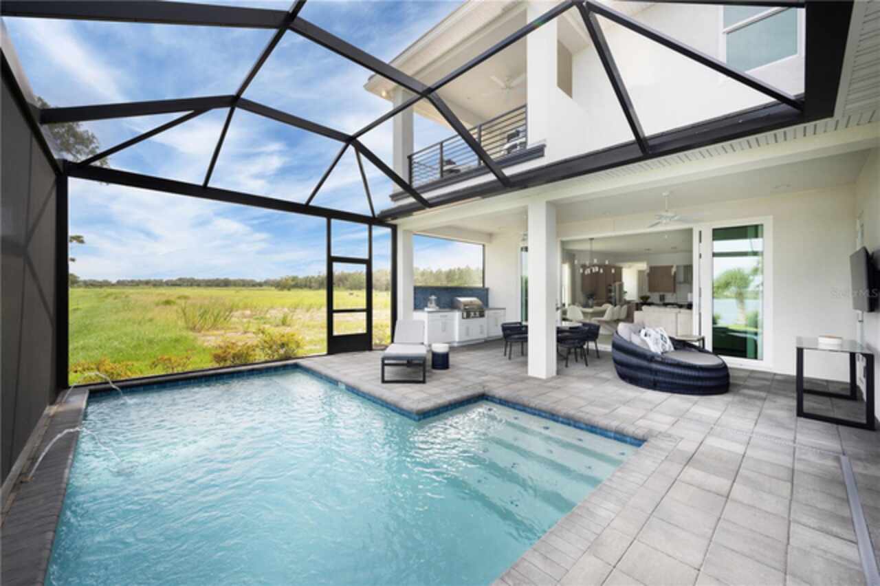 Pre-Construction. To be built. PRE-CONSTRUCTION. Buy now and select all of the finishes to give this home your personal touch. Construction time expected to take one year. Located in the Laurels neighborhood of Bellechase. The Veranda model home is the perfect combination of sleek sophistication and functionality. This spacious, two-story design offers four spacious bedrooms, three and a half bathrooms, and over 3, 500 square feet of living space. The bright and open first floor boasts a contemporary kitchen which overlooks the great room and casual dining space, perfect for nights in with family and entertaining friends alike. Upstairs, the Veranda presents an expansive bonus room with optional wet bar and covered balcony that offers the perfect space for entertaining family and friends in luxurious style. With its modern appliances and sleek finishes, you can host parties of any size with ease. • Outdoor living space is made to enjoy all year round with its covered lanai, pool and optional outdoor kitchen. • Den offers a private space to work from home. • Owner’s suite includes spa-like bathroom featuring a soaking tub and spacious shower, and an oversized closet. • Conveniently access under stair storage and utility room through garage.