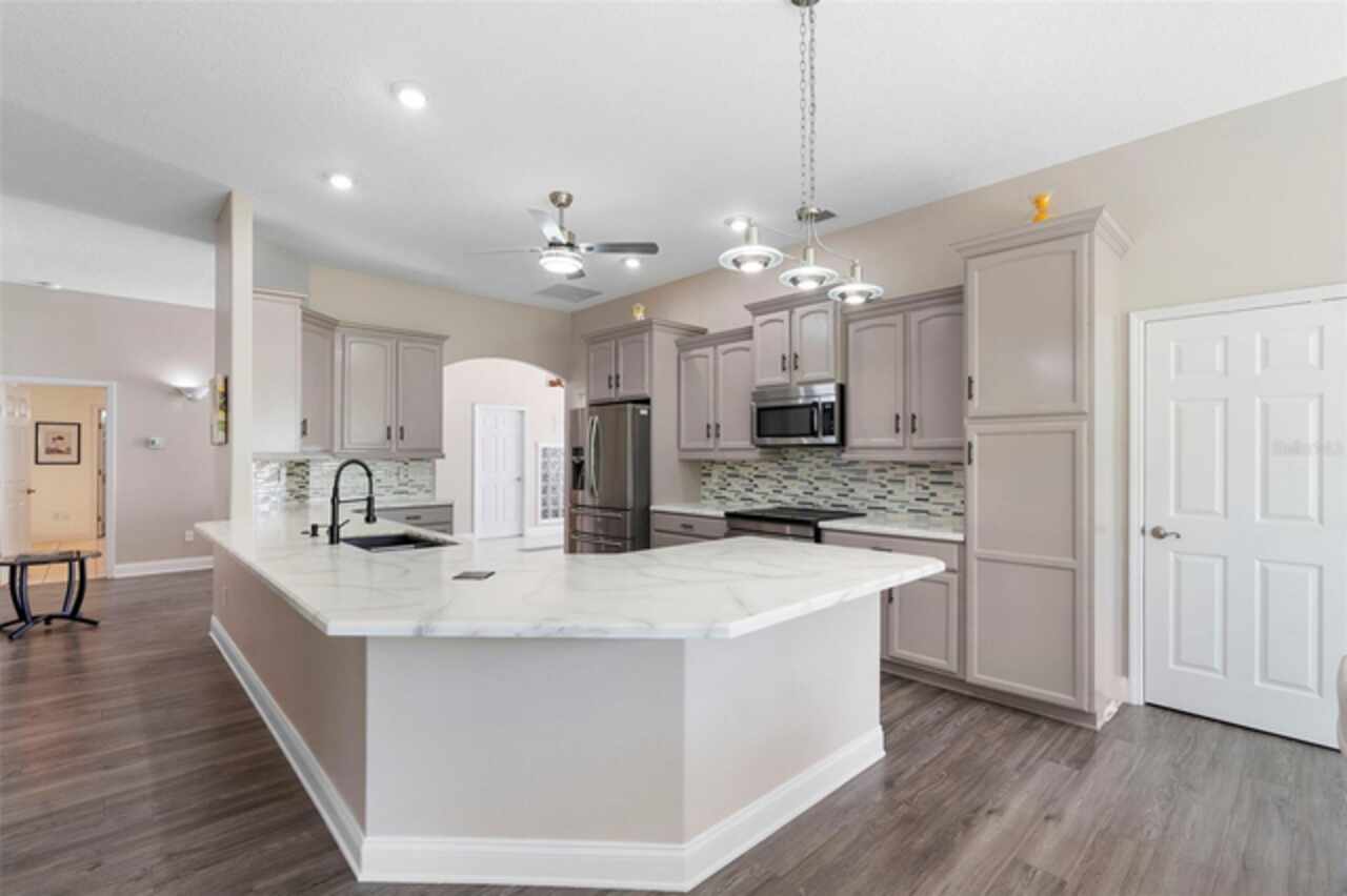 Under contract-accepting backup offers. Seller offering credit toward buyer’s rate buy-down or closing costs! Take advantage of this incredible incentive and make this corner-lot custom home yours today. Owner-builder home thoughtfully designed and impeccably maintained, with the option to purchase the adjoining back lot for added space or future opportunities. The corner property can be purchased separately or together. The roof and water heater are only 3 years old. Additional features include a new 4-ton, 2-speed HVAC system, horseshoe driveway, extended (26' x 29') two-car garage large enough to fit a full-size truck with additional storage, spacious foyer and open high-ceiling floor plan. Enjoy a custom-designed (16' x 24') home theater room (equipment included), a living room featuring a built-in 75” Sony 4K TV with electric fireplace and a formal dining area perfect for entertaining. The chef’s kitchen boasts custom space-saving cabinetry, pantry, stainless steel appliances and a large island with recessed power outlets. The primary suite features custom build-outs with lighting and shelving, double tray ceiling, patio access, and a luxurious owner’s bath with seamless shower entry and walk-in closet. The second bath has been recently renovated and the flex room offers custom shelving, LED lighting and can double as an additional bedroom or office. The large screened-in patio includes custom cypress wood detailing, a wet bar and a brand-new 5-person jacuzzi leading out to a lush tropical oasis. Meticulous new landscaping enhances the exterior curb appeal with a well built for the sprinkler system. Centrally located near hospitals, schools, shopping, and more! This home checks all the boxes. Schedule your private showing today!
