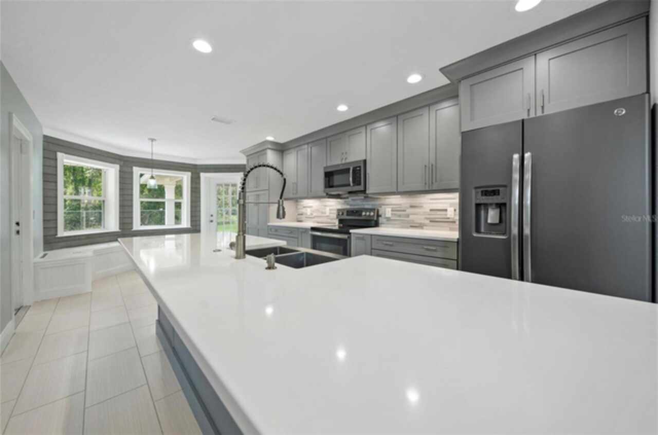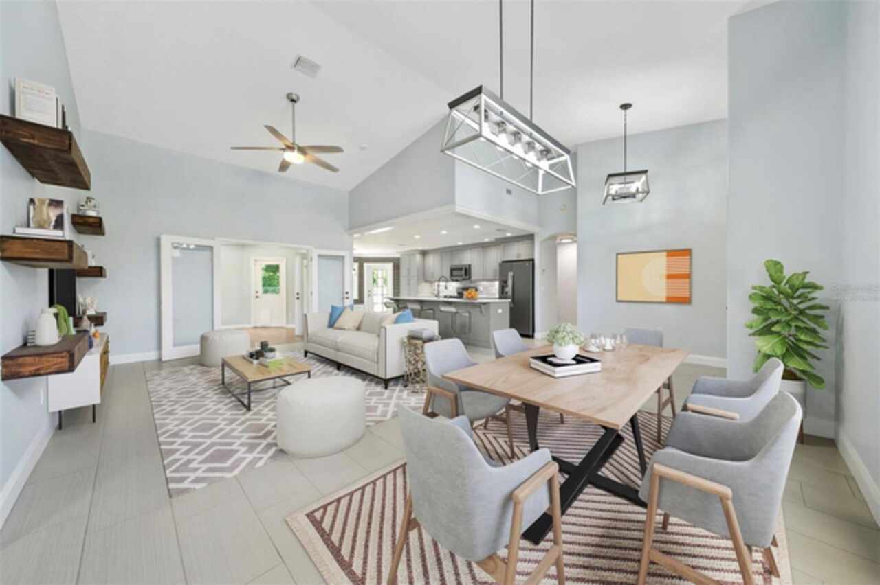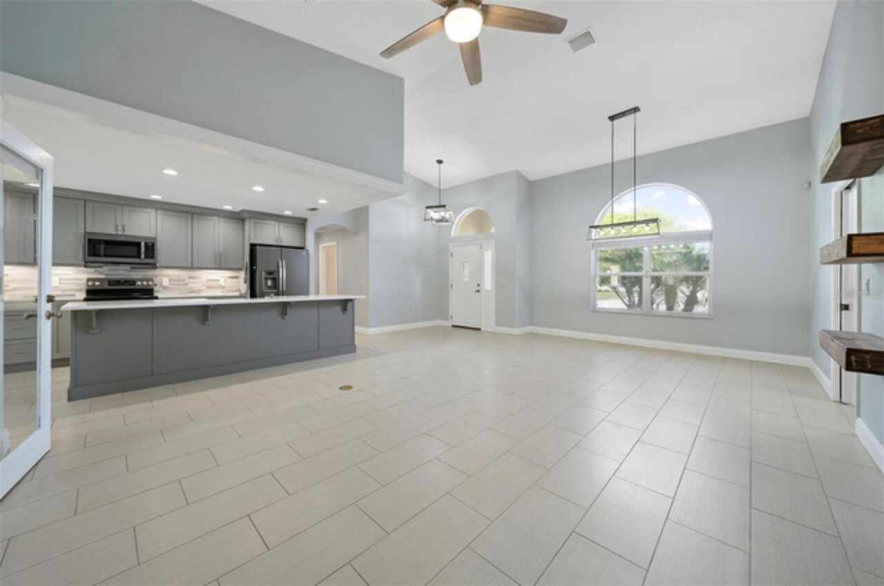 One or more photo(s) has been virtually staged. Short Sale. Short Sale – Welcome to your dream home! Featuring a newer roof, A/C, and water heater (2023), this beautifully updated property sits on an oversized, fully fenced lot with impressive curb appeal and a fantastic backyard entertaining area. Step inside and you’ll be greeted by an open, light-filled floor plan highlighted by vaulted ceilings. The stunning kitchen boasts a HUGE island, stylish grey cabinetry, and an eat-in nook with built-in bench seating and storage, framed by bay windows overlooking the spacious backyard. Updated lighting fixtures throughout add a modern and warm touch to every room. The primary suite offers a luxurious retreat with a spa-inspired bathroom, complete with a gorgeous free-standing tub—perfect for relaxing after a long day. Enjoy Florida living at its best on the covered paver patio, ideal for hosting gatherings or enjoying your morning coffee. Located in a highly sought-after neighborhood, you’ll appreciate the proximity to top-rated schools, dining, and parks. This move-in ready home blends modern updates with timeless comfort—schedule your private showing today!