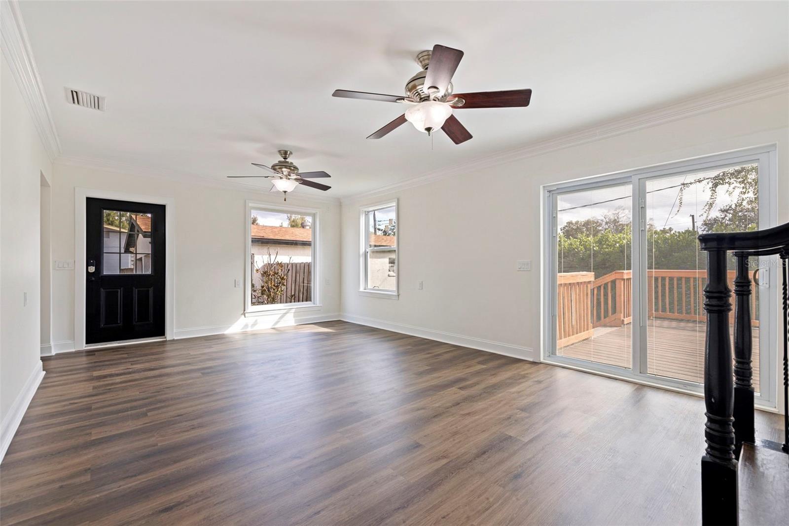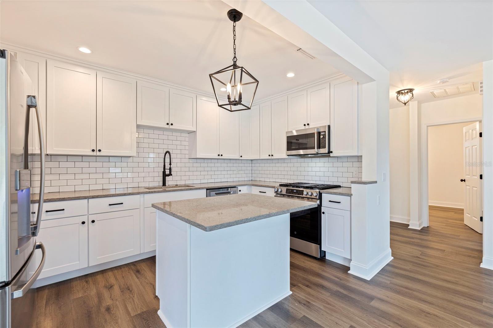 MODERN FARMHOUSE CHARM MEETS CONTEMPORARY COMFORT IN THIS NEWLY RENOVATED BEAUTY! Welcome to this stunning Modern Farmhouse–style residence, where timeless design meets everyday functionality. This spacious two-level single-family home offers an inviting blend of warmth, elegance, and modern convenience—perfectly situated on an oversized double lot with exceptional outdoor living spaces. Step through the cozy covered front porch and into a bright, open-concept lower level designed for both relaxing and entertaining. The front great room combines the living room, dining area, and gourmet kitchen into one seamless flow, highlighted by rich wood ceiling beams, 6-inch floor moldings, and luxury vinyl plank flooring throughout. The modern kitchen features gleaming stainless steel appliances, including a French door refrigerator, natural gas range with convection oven, dishwasher, and a microwave/convection combo oven. Elegant quartzite countertops and white wood cabinetry provide both beauty and function. At the rear of the home, a spacious family room opens through sliding glass doors onto a large TREX deck overlooking the fenced backyard—perfect for gatherings, play, or peaceful evenings outdoors. The lower level also includes two comfortable bedrooms, one and a half baths, and a large laundry room for added convenience. Upstairs, retreat to your primary suite, featuring a luxury ensuite bathroom with a freestanding soaking tub, oversized walk-in shower, and elegant modern finishes. A second bedroom, additional full bath, and a versatile loft space—ideal for a playroom, reading nook, or fitness area—complete the upper level. Outside, enjoy exceptional functionality with a detached two-car garage that includes a workshop area and a vintage full bathroom ready for renovation. (This area could easily be converted to an ADU for additional equity-earning potential!!) A circular driveway ensures ample parking, while masonry block construction, vinyl siding, and newer hurricane-rated windows and doors throughout the home provide durability and peace of mind. Both the roof and HVAC systems are newer as well, and there is natural gas utility for the kitchen stove/range, water heater and laundry room/dryer connection. From its picture-perfect curb appeal to its thoughtfully designed interior, this home embodies modern Florida living with farmhouse-inspired warmth. Conveniently located near downtown St. Petersburg and downtown Tampa, and within a bike ride or short drive to Weedon Island Preserve/Park for kayaking, hiking and boating. You will also be within easy access to two major airports, top-rated dining, shopping, and entertainment, and beaches --this property truly has it all. Current Flood Policy is Assumable by the New Owner!