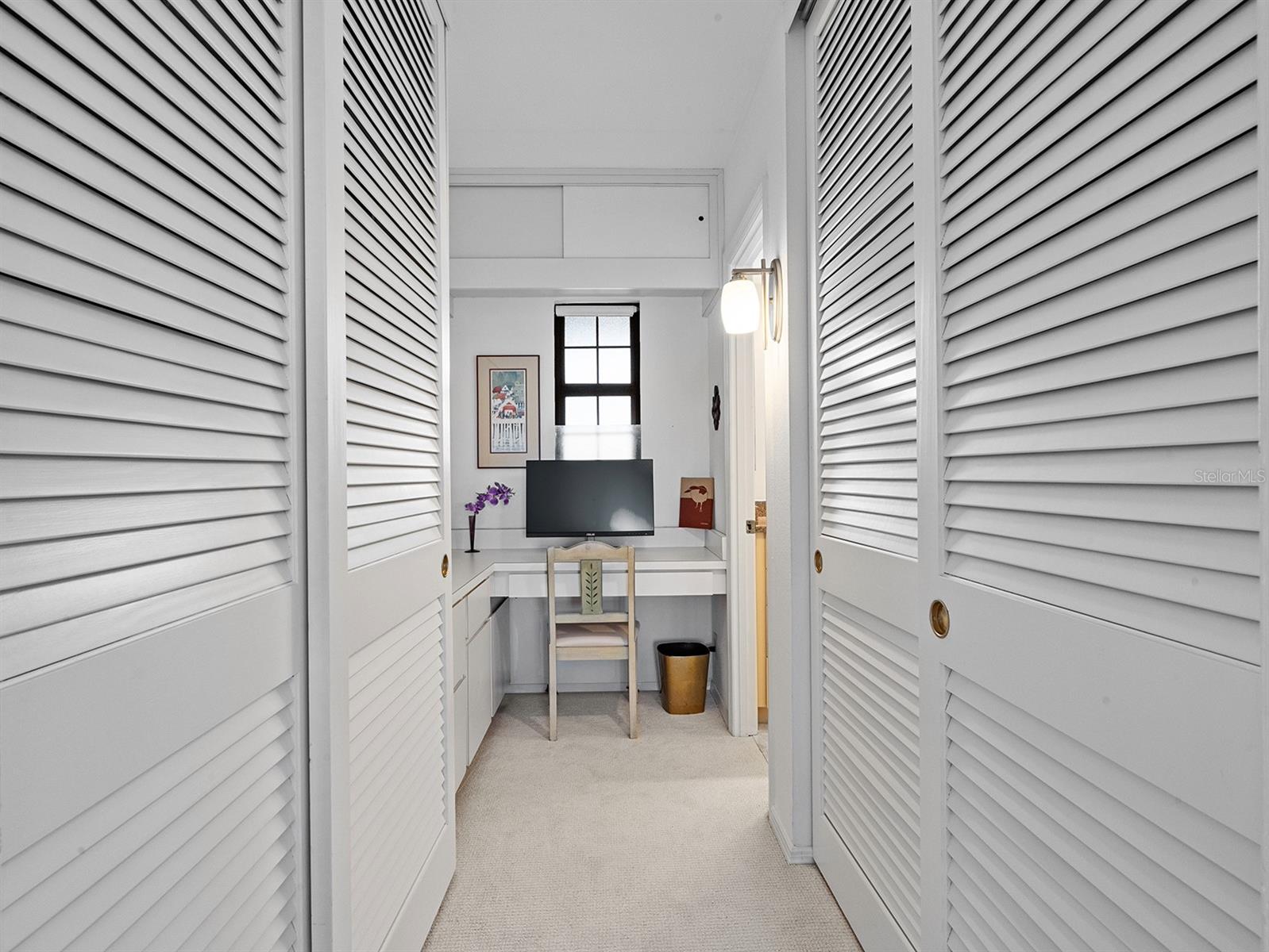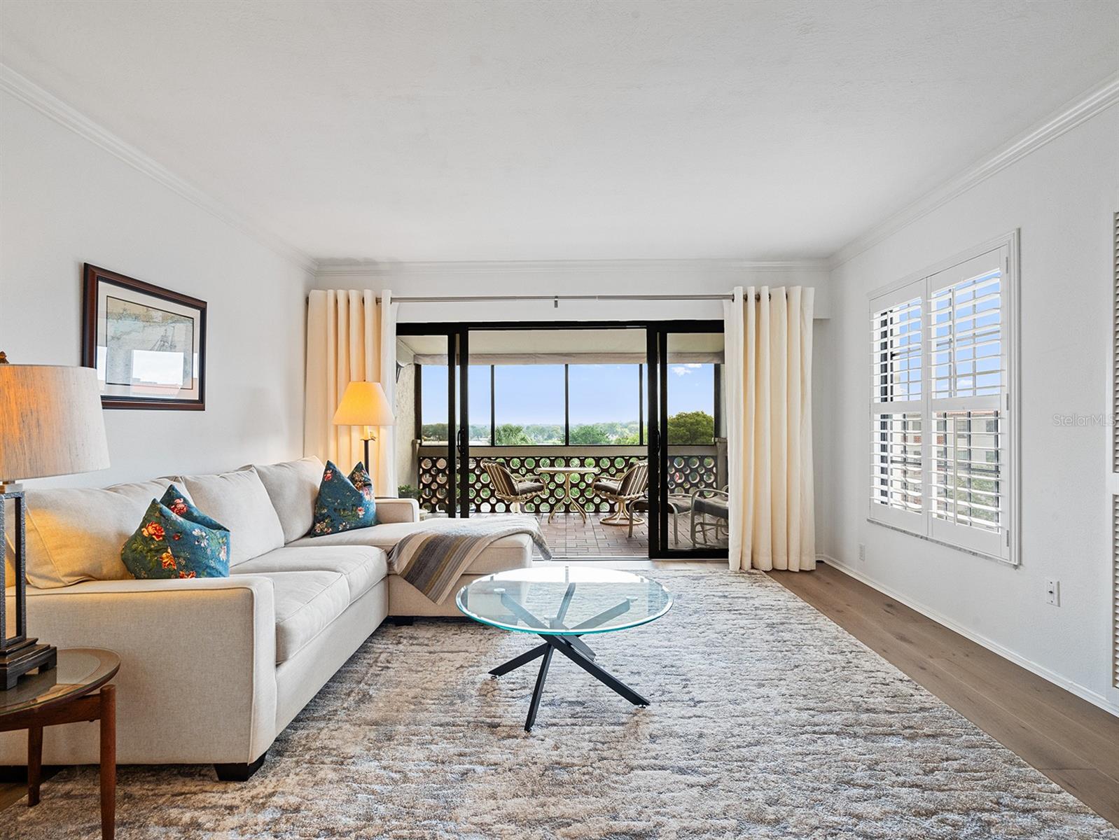 Welcome to The Cloisters, one of Winter Park’s established lakefront communities, ideally between Park Avenue and Lake Osceola. This top-floor residence, rarely available in the building, offers a turnkey lifestyle with exceptional updates and peaceful water views. The home’s oversized screened balcony, complete with a custom awning, creates an uncommon open-air retreat that overlooks the community’s heated pool, putting green, manicured gardens and Lake Osceola. Unlike many residences in the community, this property retains its original open balcony design, offering outdoor living rarely found in this floor plan. Inside, every surface has been thoughtfully remodeled. The kitchen features solid wood cabinetry, granite countertops and refined finishes. Both baths are fully updated, including a new tub with glass enclosure in the guest bath and a walk-in shower with frameless glass in the primary suite. Tile flooring, custom vanities and designer fixtures complete each space. Engineered hardwood flooring runs throughout the main living areas, with plush carpet in the bedrooms for added comfort. The primary suite includes custom built-ins, dual closets and a built-in desk with additional cabinetry, delivering elegance and function. The second bedroom offers flexibility as a guest room or study and features optional shared access from the primary suite for additional privacy. Additional highlights include a covered and assigned parking space equipped with one of the building’s few electric vehicle charging stations, ample guest parking and access to a community dock with boat slips available through a resident lottery system. The Cloisters has successfully completed all required Milestone Inspections and the Structural Integrity Reserve Study, ensuring peace of mind for future residents and affirming the association’s commitment to long-term stewardship. Amenities include two fitness centers with dry saunas and a newly renovated clubhouse with kitchen and a partial bath for use as a powder room, ideal for hosting private events. Ideally positioned just steps from the dining, shopping and cultural energy of Park Avenue and in proximity to Rollins College, this original-owner residence offers a compelling blend of lifestyle, location and enduring design.