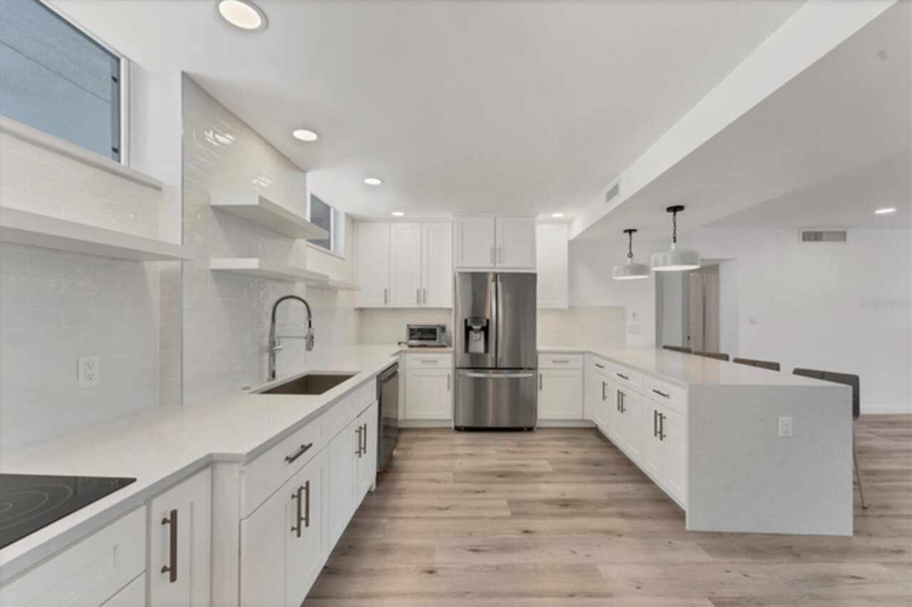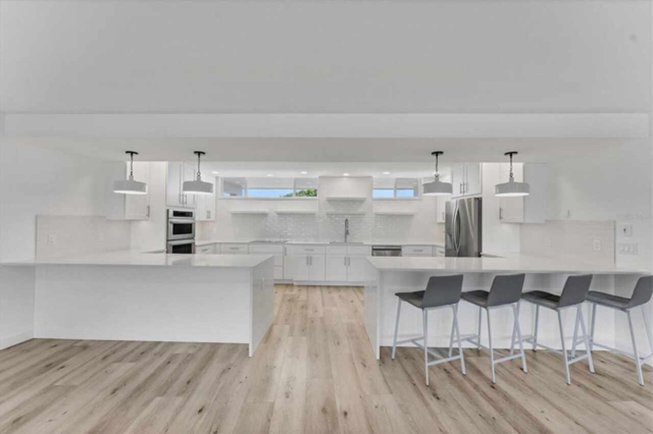 Sands Point, a sought-after beachfront community within the gates of the Longboat Key Club, set on the gorgeous southern tip of Longboat Key. This newly remodeled 3BR/2BA, split plane with a large open living space to relax or entertain family and friends. The kitchen has been remarkably redone, featuring a breakfast bar, dining area, and custom solid surface countertops to complement the all-white cabinetry, designer tile and backsplash and stainless-steel appliances. The Master suite provides a wall of windows to enjoy morning sunlight and views, this spacious ensuite w/bath and walk-in shower. The 2& 3rd guest bedroom is well-sized and arranged to ensure the comfort of your visitors, with a beautiful tropical backdrop beyond. Residents of Sands Point indulge in a resort lifestyle, with a heated pool, Kayaking, clubhouse and optional boat docks at the Sands Point Marina. Shorts drive to the restaurants and shops of St. Armands Circle as well as downtown Sarasota.