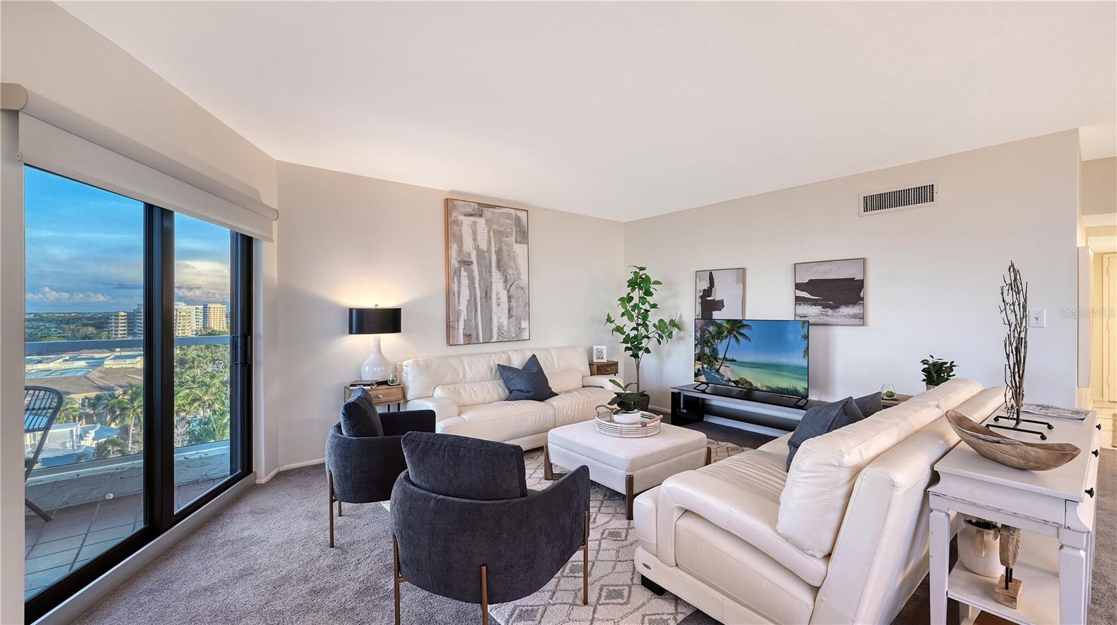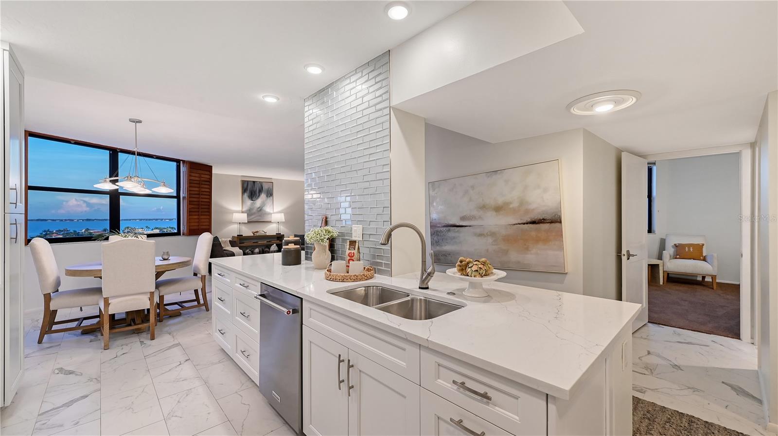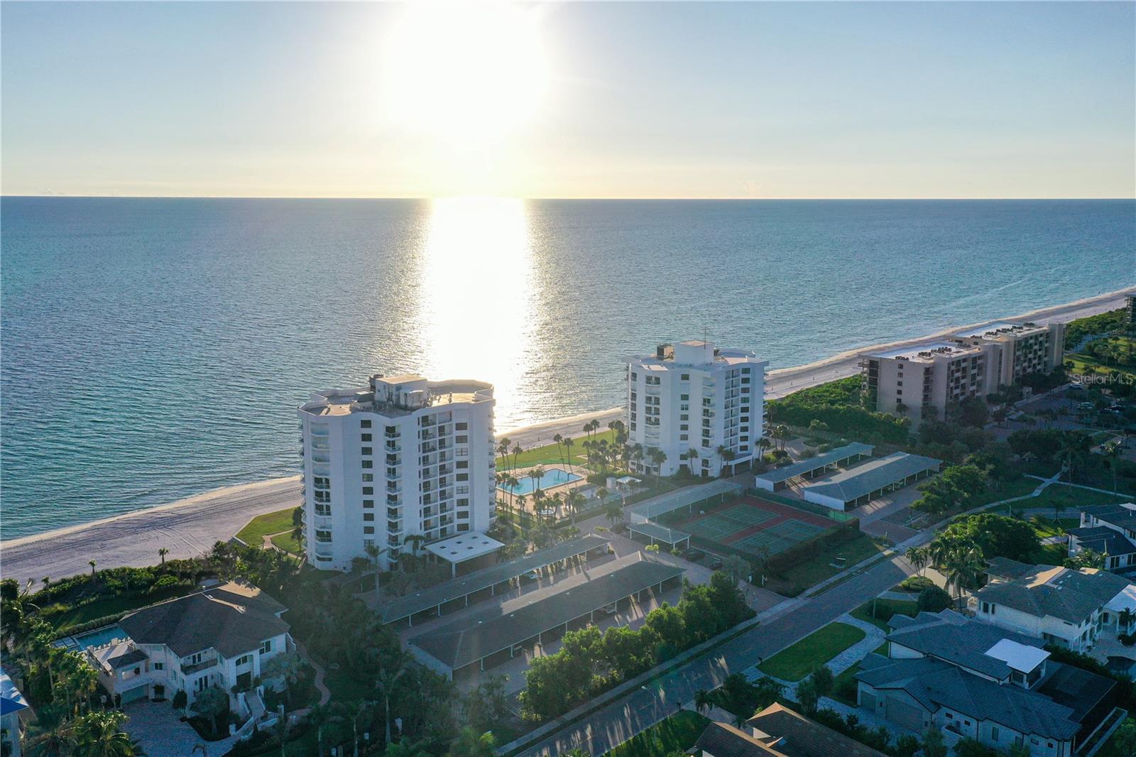 Perched atop the 11th floor, this penthouse residence at Privateer South captures an extraordinary sweep of views spanning Longboat Key Club’s lush golf course, the expanse of Sarasota Bay, the downtown skyline, and the Gulf of Mexico’s turquoise waves. Offering more than 1, 400 square feet, the light-filled interiors flow effortlessly between living, dining, and kitchen spaces, framed by impact windows and glass sliders that open to two private terraces—one Gulf-facing and one Bay-facing—inviting you to enjoy sunrises and sunsets alike. The modernized kitchen balances style and function with quartz countertops, a sleek tile backsplash, shaker cabinetry, and stainless-steel appliances. Porcelain tile flooring adds a timeless touch, enhancing the airy ambiance throughout. The split-bedroom plan ensures privacy when guests visit, with the primary suite offering direct access to the larger terrace, a spacious walk-in closet, and a private en-suite bath, while the guest suite is positioned on the opposite wing with its own serene views. Additional comforts include newer impact-rated windows and sliders, covered parking, and an owner’s storage unit located on the same floor. Privateer South, set directly on the Gulf of Mexico, has recently been enhanced with upgrades that further elevate its appeal, including a newer roof, refreshed lobby, and updated common areas. Residents enjoy a lifestyle that blends leisure and convenience, with a beachside heated pool and spa on an expansive deck, tennis, pickleball, and shuffleboard courts, fitness center, fire pit lounge, barbecue area with outdoor seating, social room with catering kitchen, and guest suites for visitors. On-site management and security provide peace of mind in this sought-after community. Beyond the gates, Longboat Key delivers a lifestyle defined by natural beauty and cultural access. Championship golf and fine dining await for members at the Longboat Key Club, while the boutiques and restaurants of St. Armands Circle are minutes away. Downtown Sarasota, with its world-class theaters, museums, galleries, and vibrant waterfront, is an easy drive south. Award-winning beaches, including those of neighboring Lido and Siesta Key, complete the picture, offering endless opportunities to explore, relax, and savor life on the Gulf Coast. This penthouse is more than a residence—it’s a front-row seat to the very best of Sarasota living.