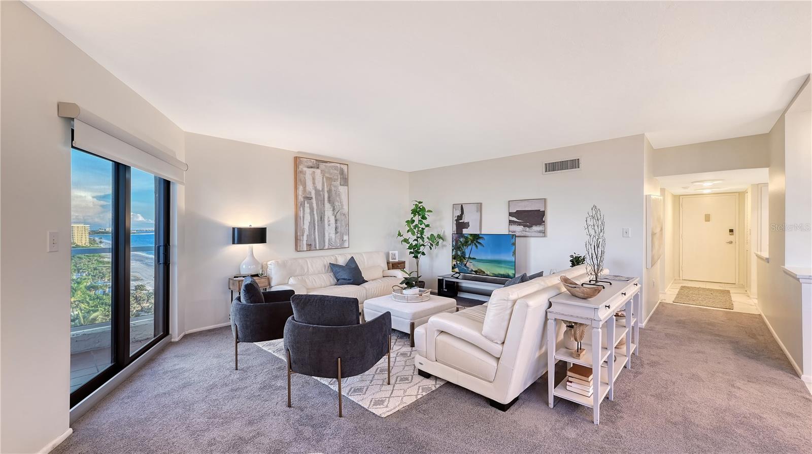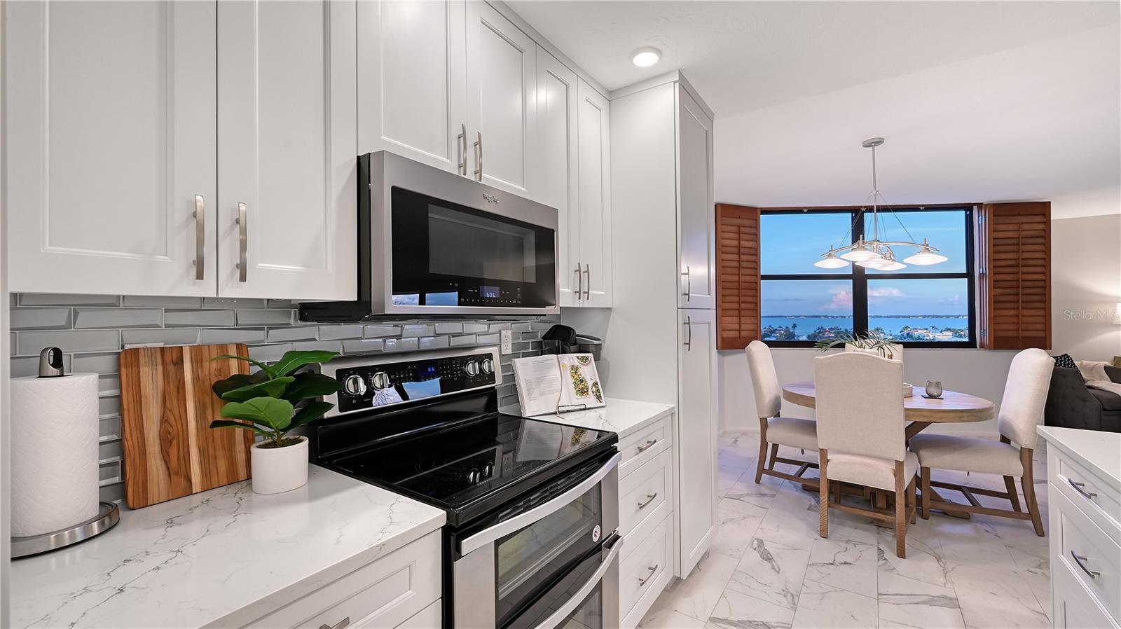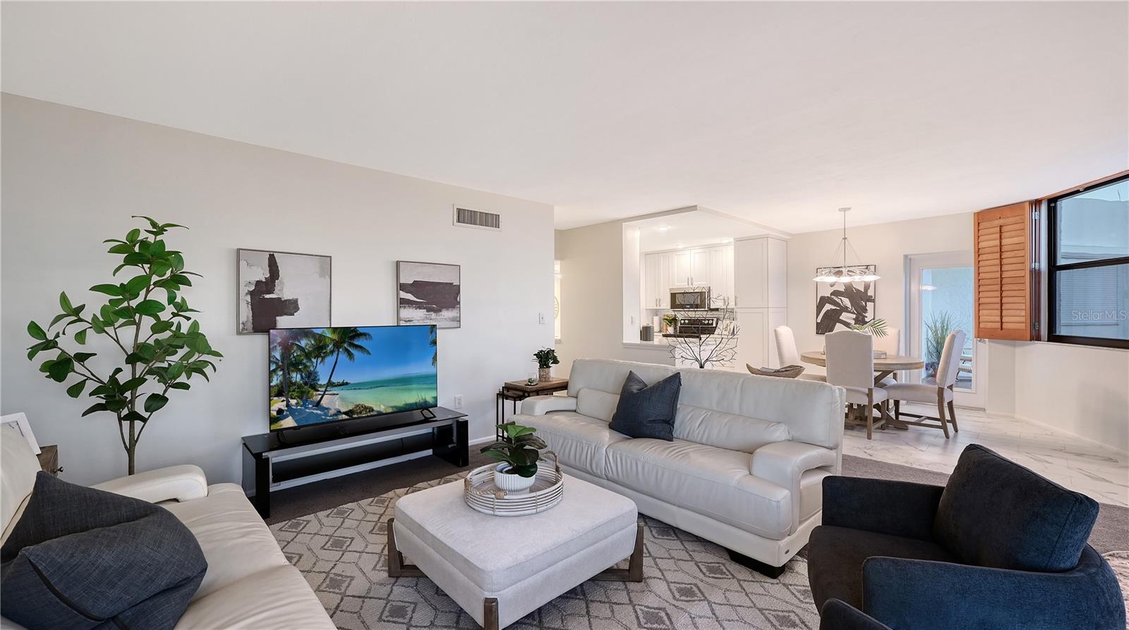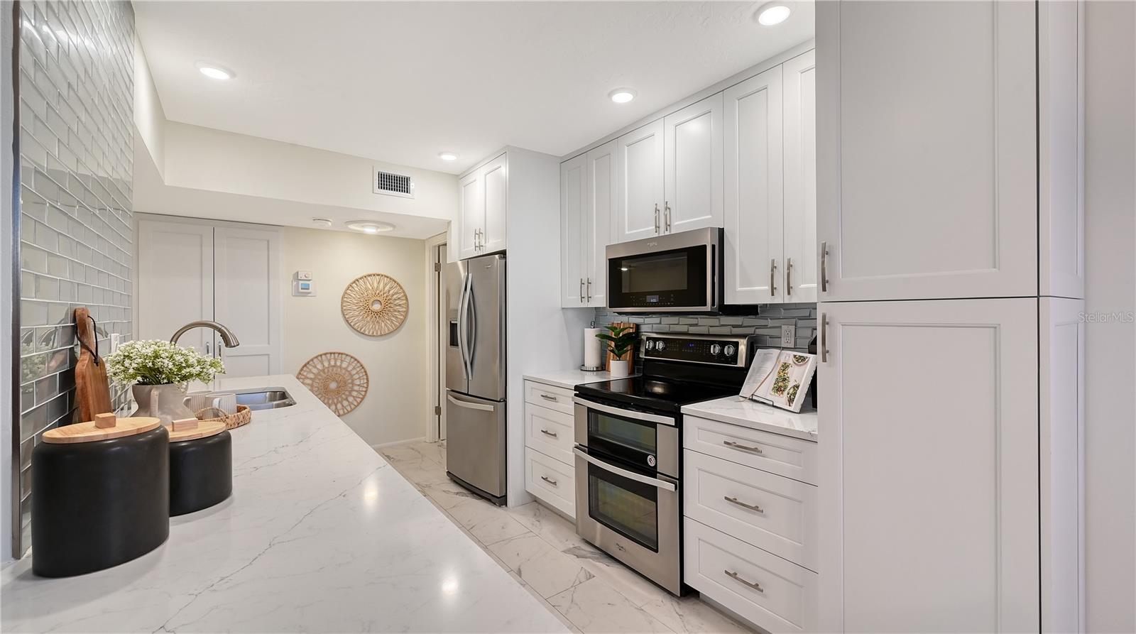 Perched atop the 11th floor, this penthouse residence at Privateer South captures an extraordinary sweep of views spanning Longboat Key Club’s lush golf course, the expanse of Sarasota Bay, the downtown skyline, and the Gulf of Mexico’s turquoise waves. Offering more than 1, 400 square feet, the light-filled interiors flow effortlessly between living, dining, and kitchen spaces, framed by impact windows and glass sliders that open to two private terraces—one Gulf-facing and one Bay-facing—inviting you to enjoy sunrises and sunsets alike. The modernized kitchen balances style and function with quartz countertops, a sleek tile backsplash, shaker cabinetry, and stainless-steel appliances. Porcelain tile flooring adds a timeless touch, enhancing the airy ambiance throughout. The split-bedroom plan ensures privacy when guests visit, with the primary suite offering direct access to the larger terrace, a spacious walk-in closet, and a private en-suite bath, while the guest suite is positioned on the opposite wing with its own serene views. Additional comforts include newer impact-rated windows and sliders, covered parking, and an owner’s storage unit located on the same floor. Privateer South, set directly on the Gulf of Mexico, has recently been enhanced with upgrades that further elevate its appeal, including a newer roof, refreshed lobby, and updated common areas. Residents enjoy a lifestyle that blends leisure and convenience, with a beachside heated pool and spa on an expansive deck, tennis, pickleball, and shuffleboard courts, fitness center, fire pit lounge, barbecue area with outdoor seating, social room with catering kitchen, and guest suites for visitors. On-site management and security provide peace of mind in this sought-after community. Beyond the gates, Longboat Key delivers a lifestyle defined by natural beauty and cultural access. Championship golf and fine dining await for members at the Longboat Key Club, while the boutiques and restaurants of St. Armands Circle are minutes away. Downtown Sarasota, with its world-class theaters, museums, galleries, and vibrant waterfront, is an easy drive south. Award-winning beaches, including those of neighboring Lido and Siesta Key, complete the picture, offering endless opportunities to explore, relax, and savor life on the Gulf Coast. This penthouse is more than a residence—it’s a front-row seat to the very best of Sarasota living.