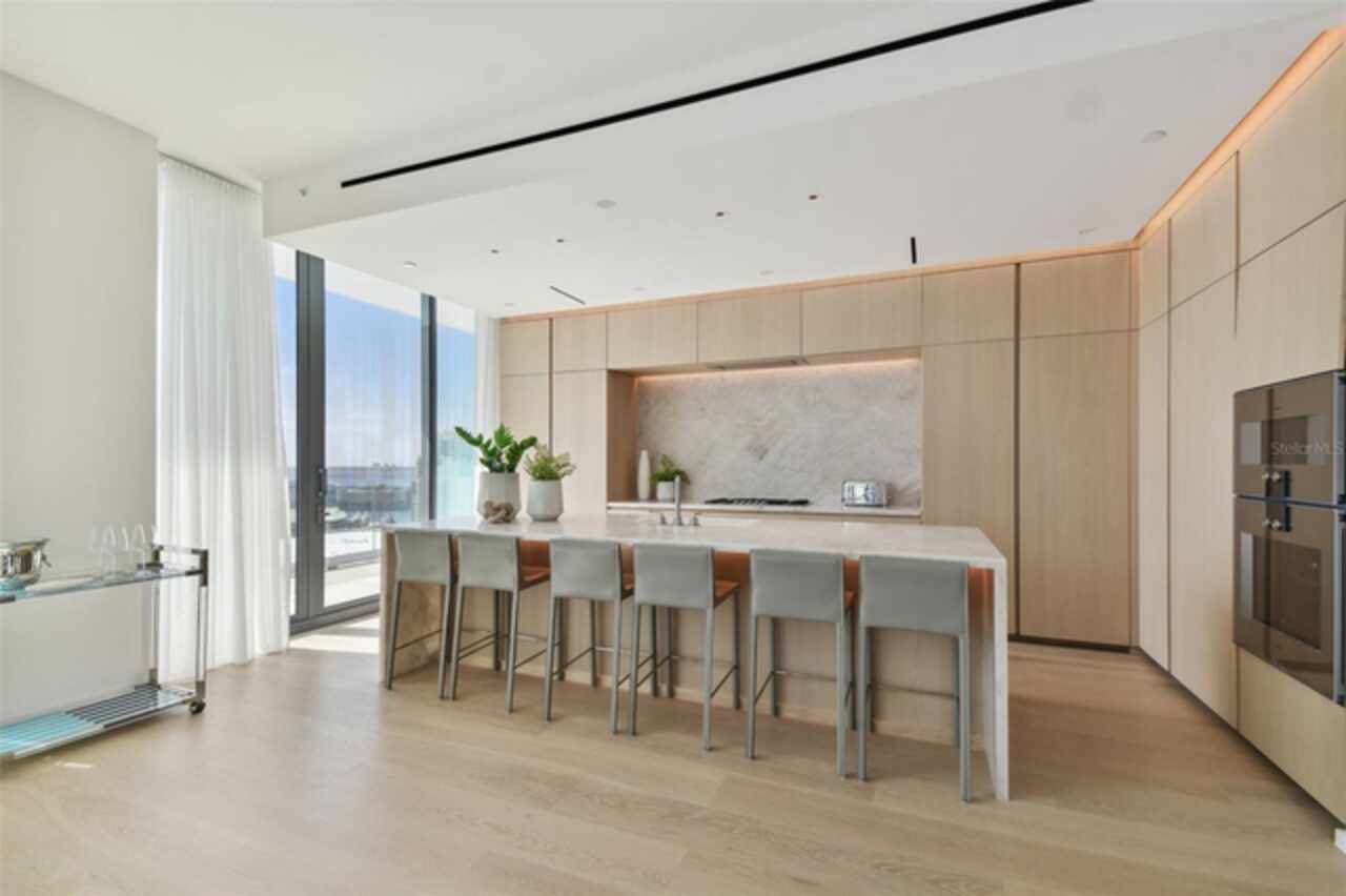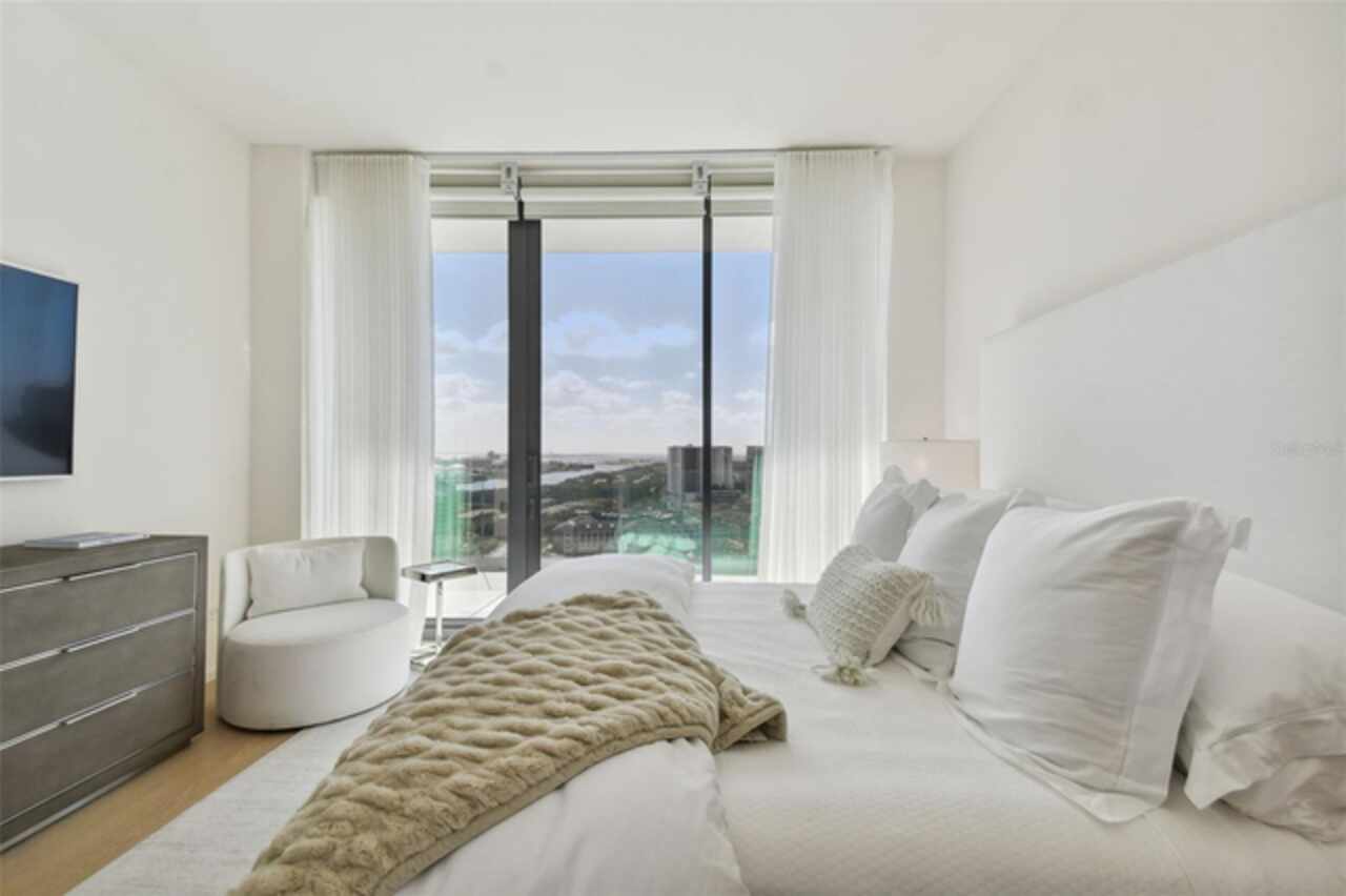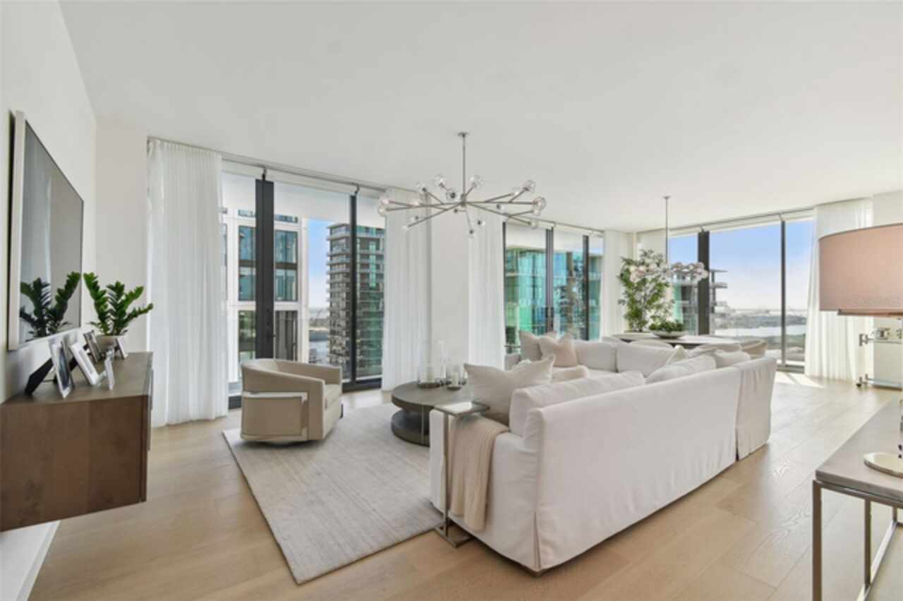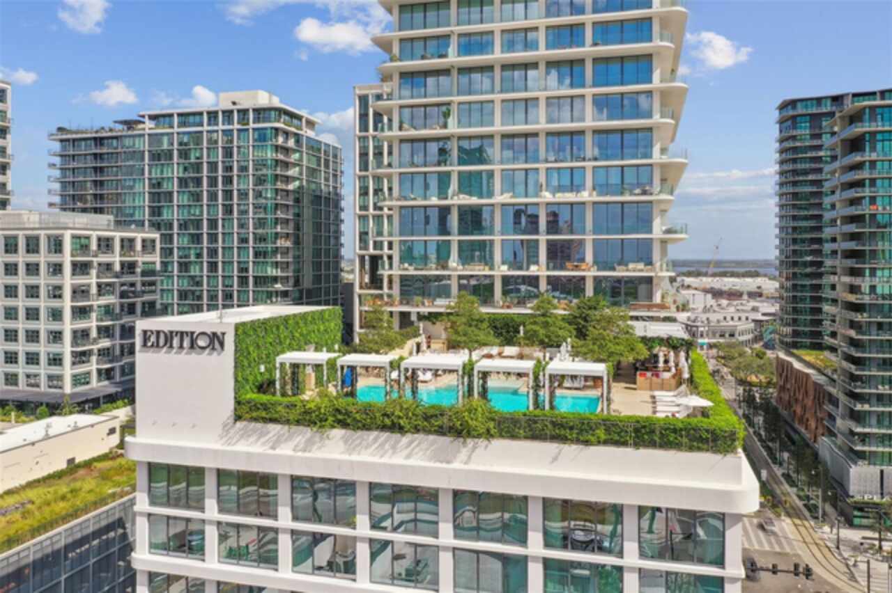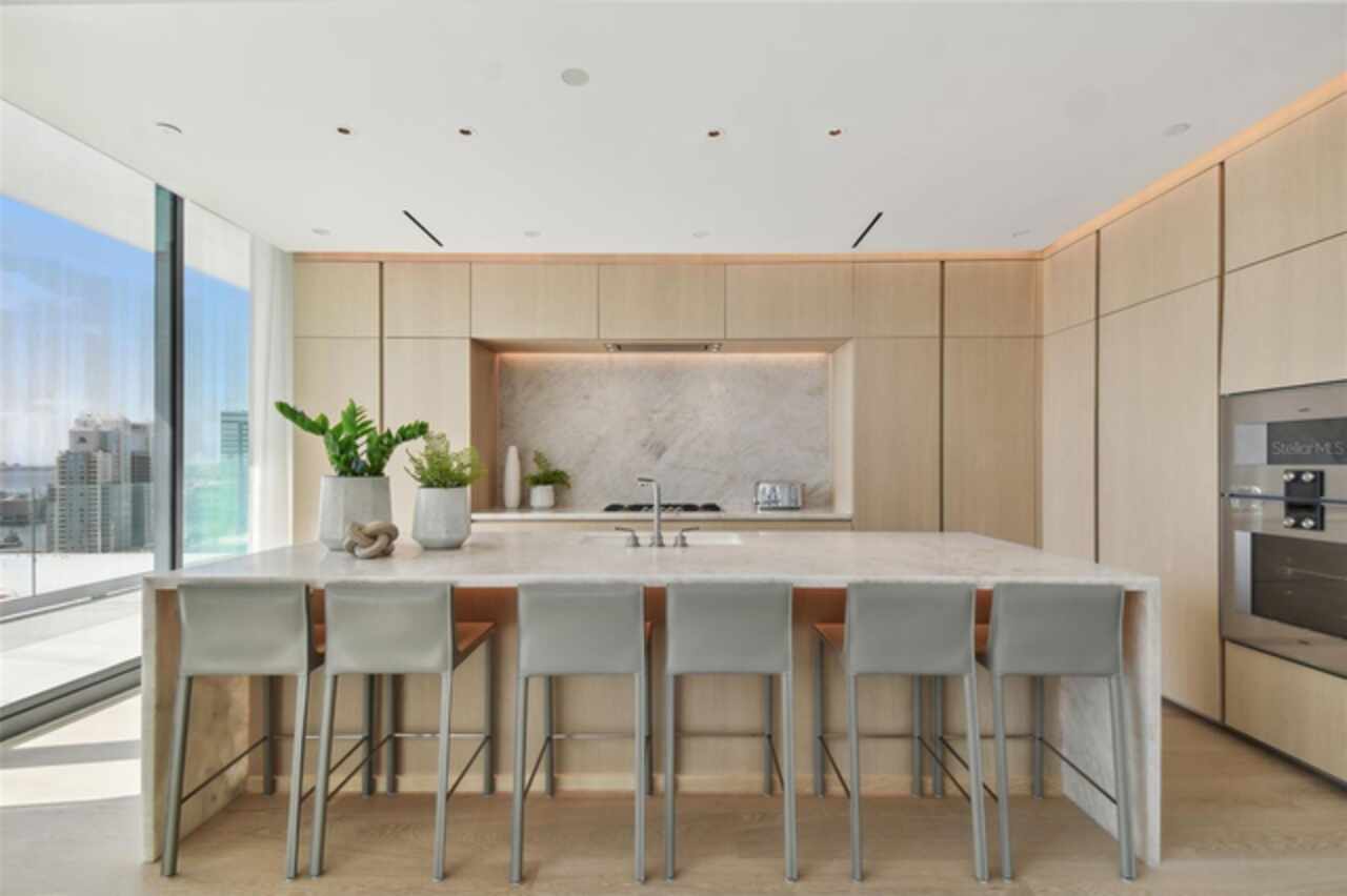 Under contract-accepting backup offers. Discover an unrivaled living experience at The Tampa EDITION Residence 1702, a sophisticated corner unit masterfully designed and framed by sweeping vistas of Tampa Bay, the sprawling downtown skyline, and the visionary Water Street development. This residence epitomizes refined urban luxury. The exquisite open floor plan flows seamlessly between living, dining, and entertaining spaces, designed to offer an unparalleled experience of comfort and elegance. The private primary suite serves as a luxurious retreat, complete with a spa-inspired bath clad in Polaris White marble, a freestanding Kaldewei soaking tub, a custom double vanity, and ambient lighting that enhances its serene atmosphere. This sanctuary also includes two closets and direct access to a wrap-around terrace with breathtaking views. Two additional bedrooms, each with its own well-appointed ensuite bath, provide sophisticated accommodations for family or guests, while a private den offers the ideal space for relaxation or remote work. Every element of this home reflects meticulous craftsmanship and elegant design. Expansive floor-to-ceiling windows flood the 10-foot-ceiling interiors with natural light, seamlessly blending indoor and outdoor spaces. Sliding glass doors open to generous wraparound terraces adorned with post-less glass railings, offering uninterrupted views of the city below. Thoughtfully curated details include 10-inch custom Grato white oak floors, Polaris White marble countertops with a waterfall island and full-height backsplash, ambient cove lighting, and custom Molteni white oak cabinetry. The state-of-the-art Gaggenau kitchen features a wine cooler, five-burner gas cooktop, and a discreetly integrated Miele vented hood. As part of The Tampa EDITION, residents enjoy exclusive access to an array of five-star amenities envisioned by legendary hotelier Ian Schrager. From award-winning dining experiences led by celebrated chefs to the rejuvenating full-service spa, each offering embodies EDITION’s dedication to world-class living. The rooftop pool and terrace provide a tranquil escape with panoramic city views, while residents-only spaces, including a private gym, social kitchen, and lounge, create an ambiance of refined exclusivity. Complete with three dedicated parking spaces and a private storage room, this residence anticipates every need. Nestled within Water Street Tampa, the world’s first WELL-certified community, The Tampa EDITION is the ultimate intersection of wellness, innovation, and sophistication. Residence 1702 invites you to experience an elevated lifestyle unlike any other in Tampa.