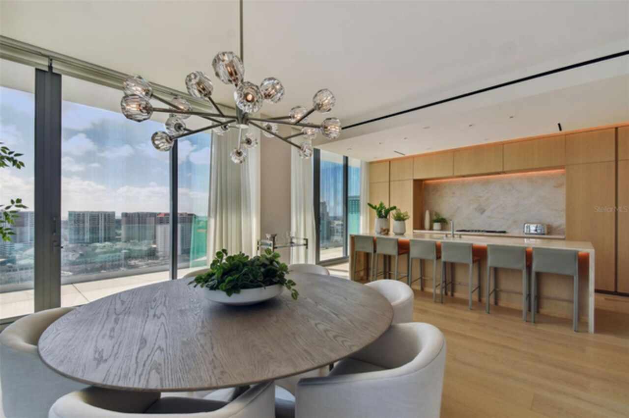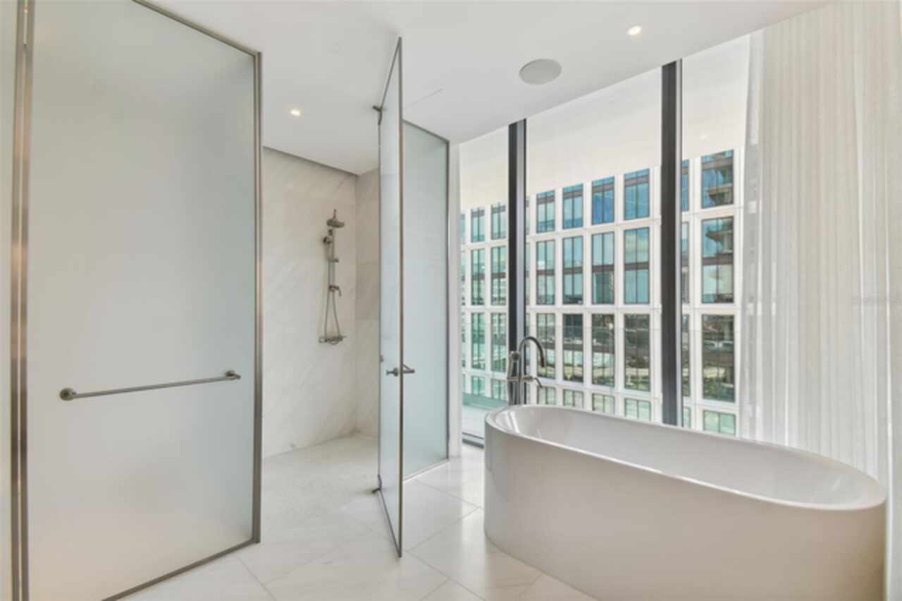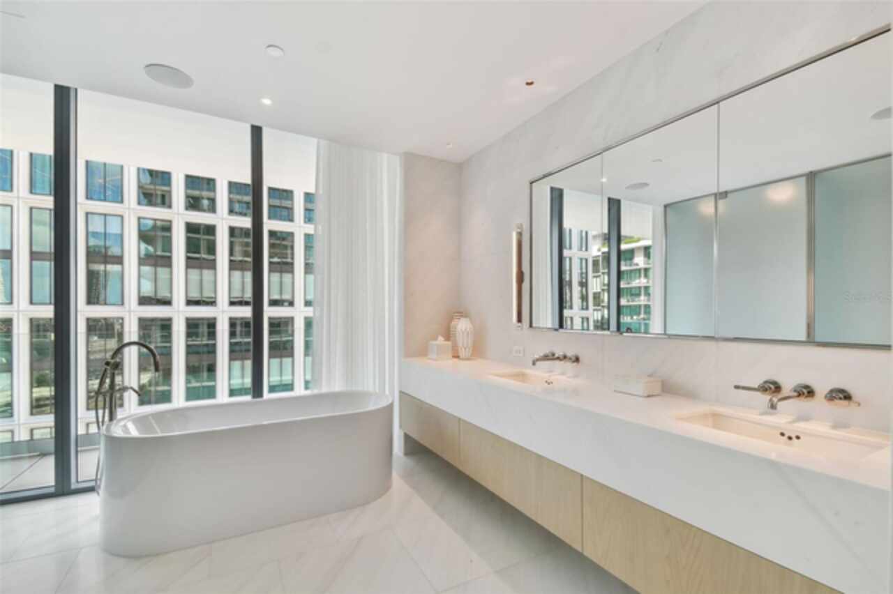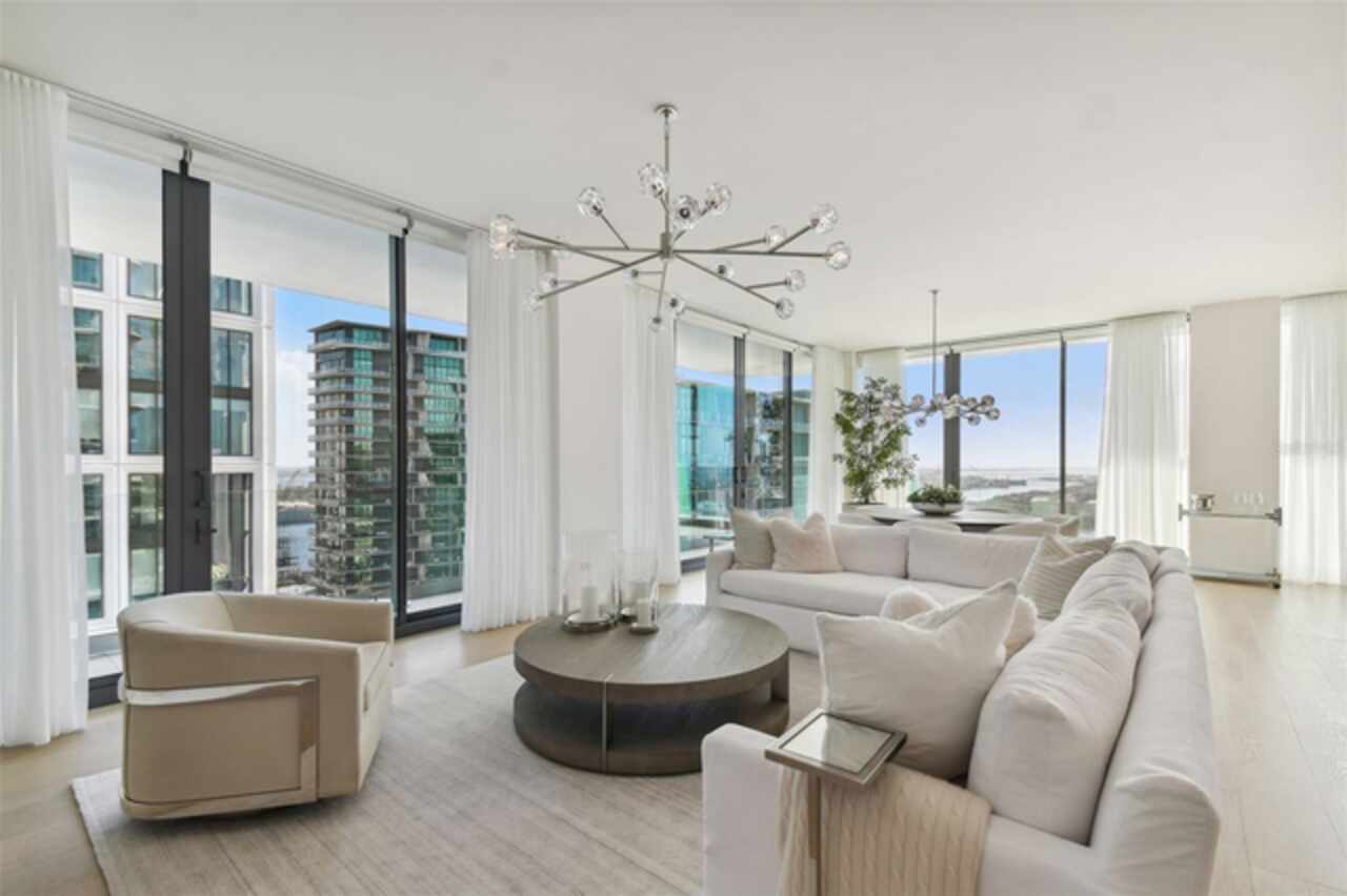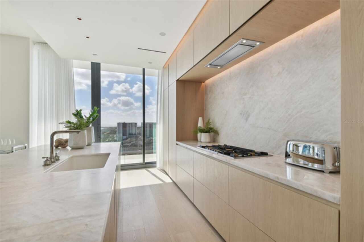 Under contract-accepting backup offers. Discover an unrivaled living experience at The Tampa EDITION Residence 1702, a sophisticated corner unit masterfully designed and framed by sweeping vistas of Tampa Bay, the sprawling downtown skyline, and the visionary Water Street development. This residence epitomizes refined urban luxury. The exquisite open floor plan flows seamlessly between living, dining, and entertaining spaces, designed to offer an unparalleled experience of comfort and elegance. The private primary suite serves as a luxurious retreat, complete with a spa-inspired bath clad in Polaris White marble, a freestanding Kaldewei soaking tub, a custom double vanity, and ambient lighting that enhances its serene atmosphere. This sanctuary also includes two closets and direct access to a wrap-around terrace with breathtaking views. Two additional bedrooms, each with its own well-appointed ensuite bath, provide sophisticated accommodations for family or guests, while a private den offers the ideal space for relaxation or remote work. Every element of this home reflects meticulous craftsmanship and elegant design. Expansive floor-to-ceiling windows flood the 10-foot-ceiling interiors with natural light, seamlessly blending indoor and outdoor spaces. Sliding glass doors open to generous wraparound terraces adorned with post-less glass railings, offering uninterrupted views of the city below. Thoughtfully curated details include 10-inch custom Grato white oak floors, Polaris White marble countertops with a waterfall island and full-height backsplash, ambient cove lighting, and custom Molteni white oak cabinetry. The state-of-the-art Gaggenau kitchen features a wine cooler, five-burner gas cooktop, and a discreetly integrated Miele vented hood. As part of The Tampa EDITION, residents enjoy exclusive access to an array of five-star amenities envisioned by legendary hotelier Ian Schrager. From award-winning dining experiences led by celebrated chefs to the rejuvenating full-service spa, each offering embodies EDITION’s dedication to world-class living. The rooftop pool and terrace provide a tranquil escape with panoramic city views, while residents-only spaces, including a private gym, social kitchen, and lounge, create an ambiance of refined exclusivity. Complete with three dedicated parking spaces and a private storage room, this residence anticipates every need. Nestled within Water Street Tampa, the world’s first WELL-certified community, The Tampa EDITION is the ultimate intersection of wellness, innovation, and sophistication. Residence 1702 invites you to experience an elevated lifestyle unlike any other in Tampa.