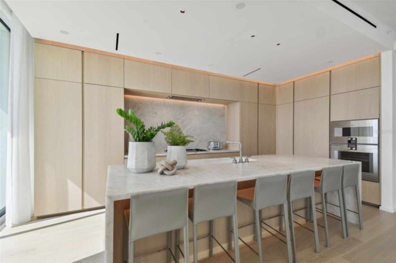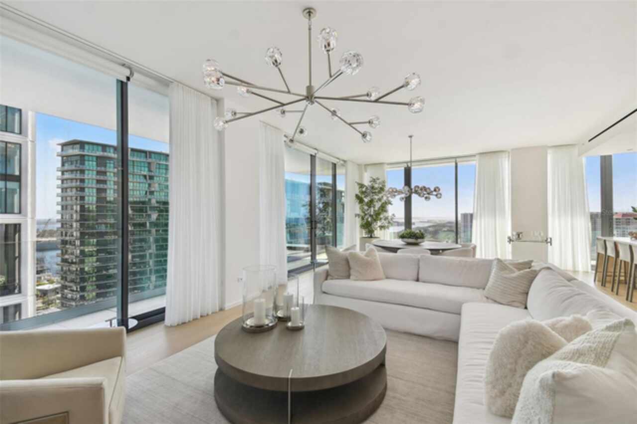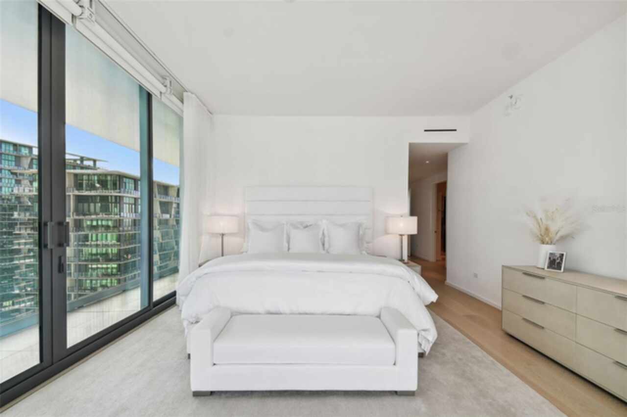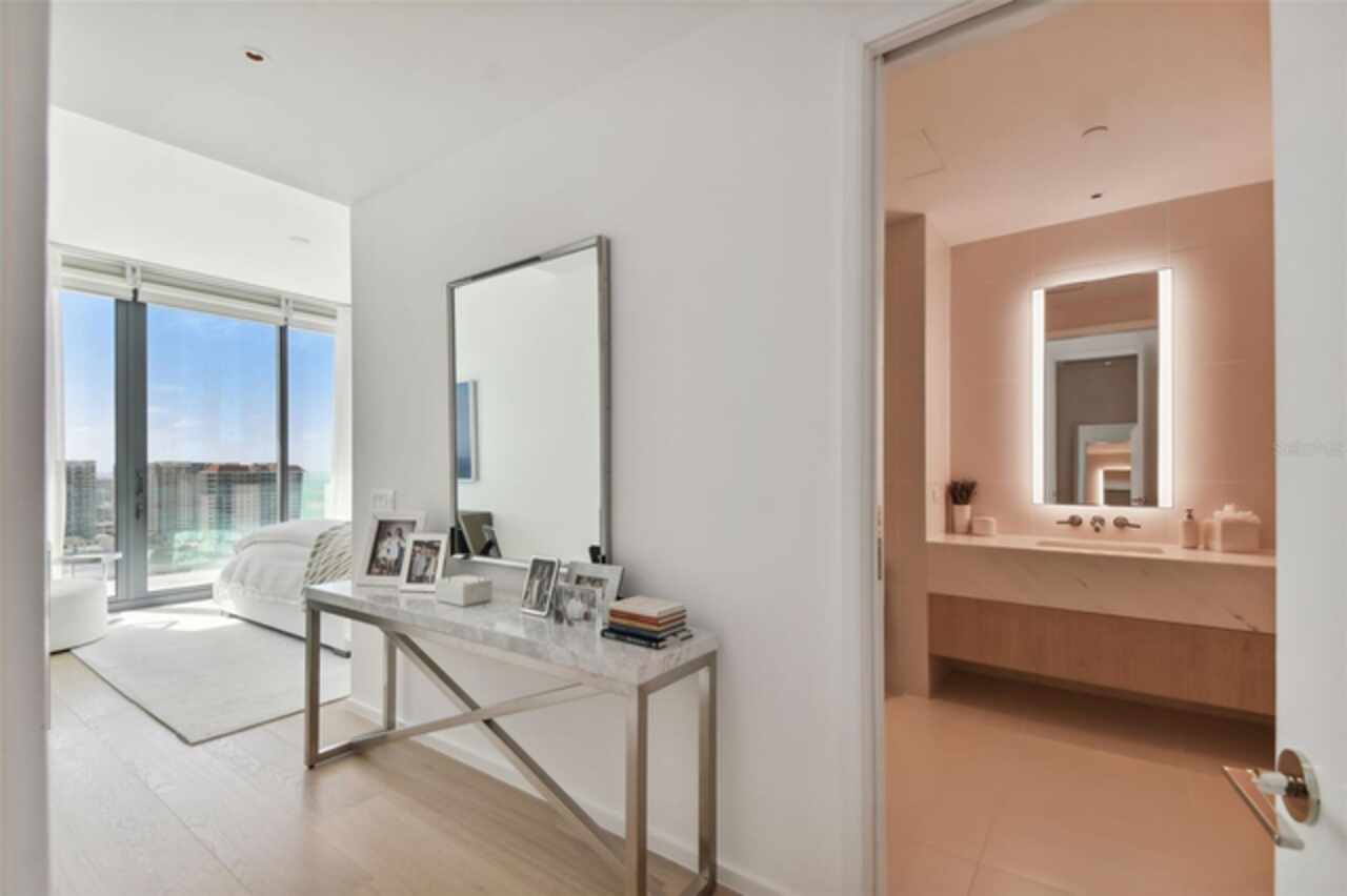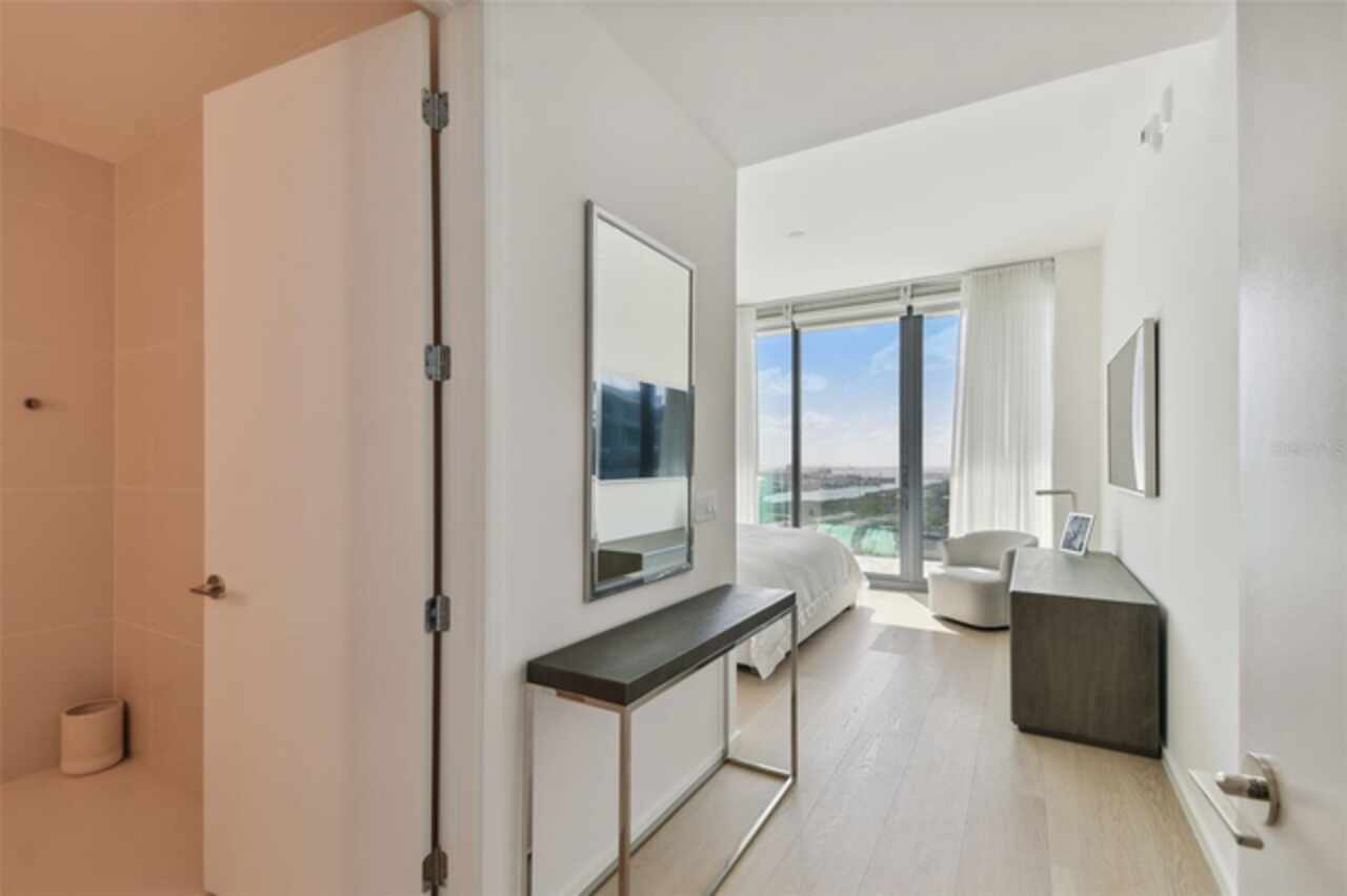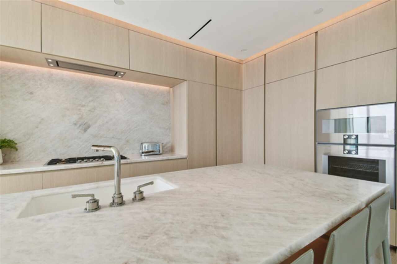 Under contract-accepting backup offers. Discover an unrivaled living experience at The Tampa EDITION Residence 1702, a sophisticated corner unit masterfully designed and framed by sweeping vistas of Tampa Bay, the sprawling downtown skyline, and the visionary Water Street development. This residence epitomizes refined urban luxury. The exquisite open floor plan flows seamlessly between living, dining, and entertaining spaces, designed to offer an unparalleled experience of comfort and elegance. The private primary suite serves as a luxurious retreat, complete with a spa-inspired bath clad in Polaris White marble, a freestanding Kaldewei soaking tub, a custom double vanity, and ambient lighting that enhances its serene atmosphere. This sanctuary also includes two closets and direct access to a wrap-around terrace with breathtaking views. Two additional bedrooms, each with its own well-appointed ensuite bath, provide sophisticated accommodations for family or guests, while a private den offers the ideal space for relaxation or remote work. Every element of this home reflects meticulous craftsmanship and elegant design. Expansive floor-to-ceiling windows flood the 10-foot-ceiling interiors with natural light, seamlessly blending indoor and outdoor spaces. Sliding glass doors open to generous wraparound terraces adorned with post-less glass railings, offering uninterrupted views of the city below. Thoughtfully curated details include 10-inch custom Grato white oak floors, Polaris White marble countertops with a waterfall island and full-height backsplash, ambient cove lighting, and custom Molteni white oak cabinetry. The state-of-the-art Gaggenau kitchen features a wine cooler, five-burner gas cooktop, and a discreetly integrated Miele vented hood. As part of The Tampa EDITION, residents enjoy exclusive access to an array of five-star amenities envisioned by legendary hotelier Ian Schrager. From award-winning dining experiences led by celebrated chefs to the rejuvenating full-service spa, each offering embodies EDITION’s dedication to world-class living. The rooftop pool and terrace provide a tranquil escape with panoramic city views, while residents-only spaces, including a private gym, social kitchen, and lounge, create an ambiance of refined exclusivity. Complete with three dedicated parking spaces and a private storage room, this residence anticipates every need. Nestled within Water Street Tampa, the world’s first WELL-certified community, The Tampa EDITION is the ultimate intersection of wellness, innovation, and sophistication. Residence 1702 invites you to experience an elevated lifestyle unlike any other in Tampa.