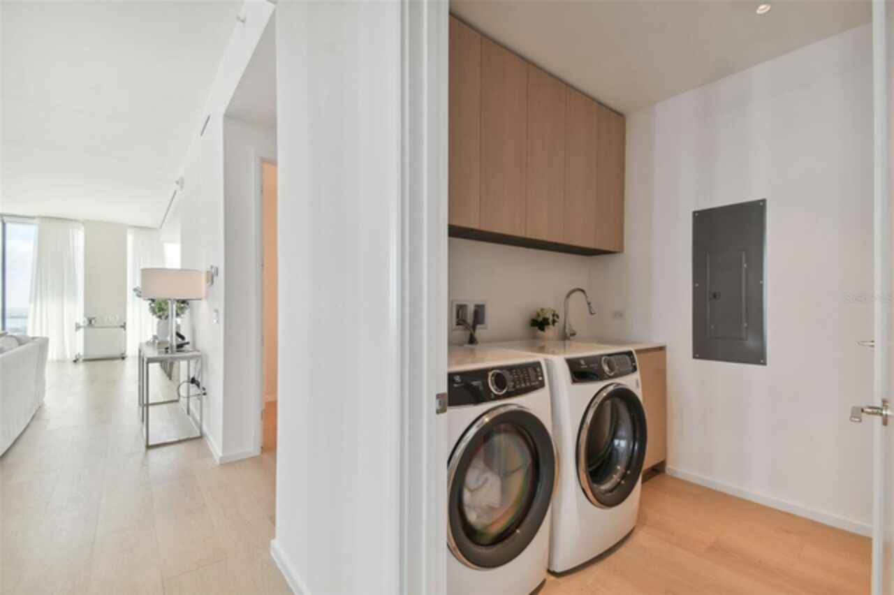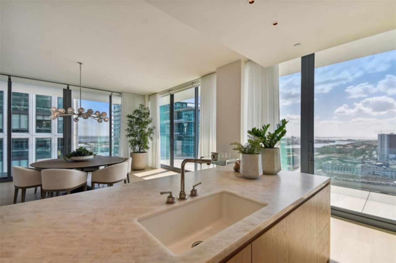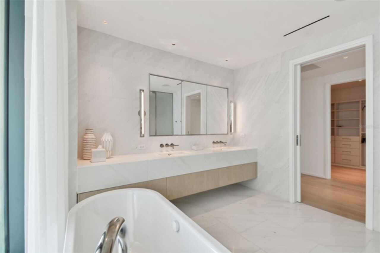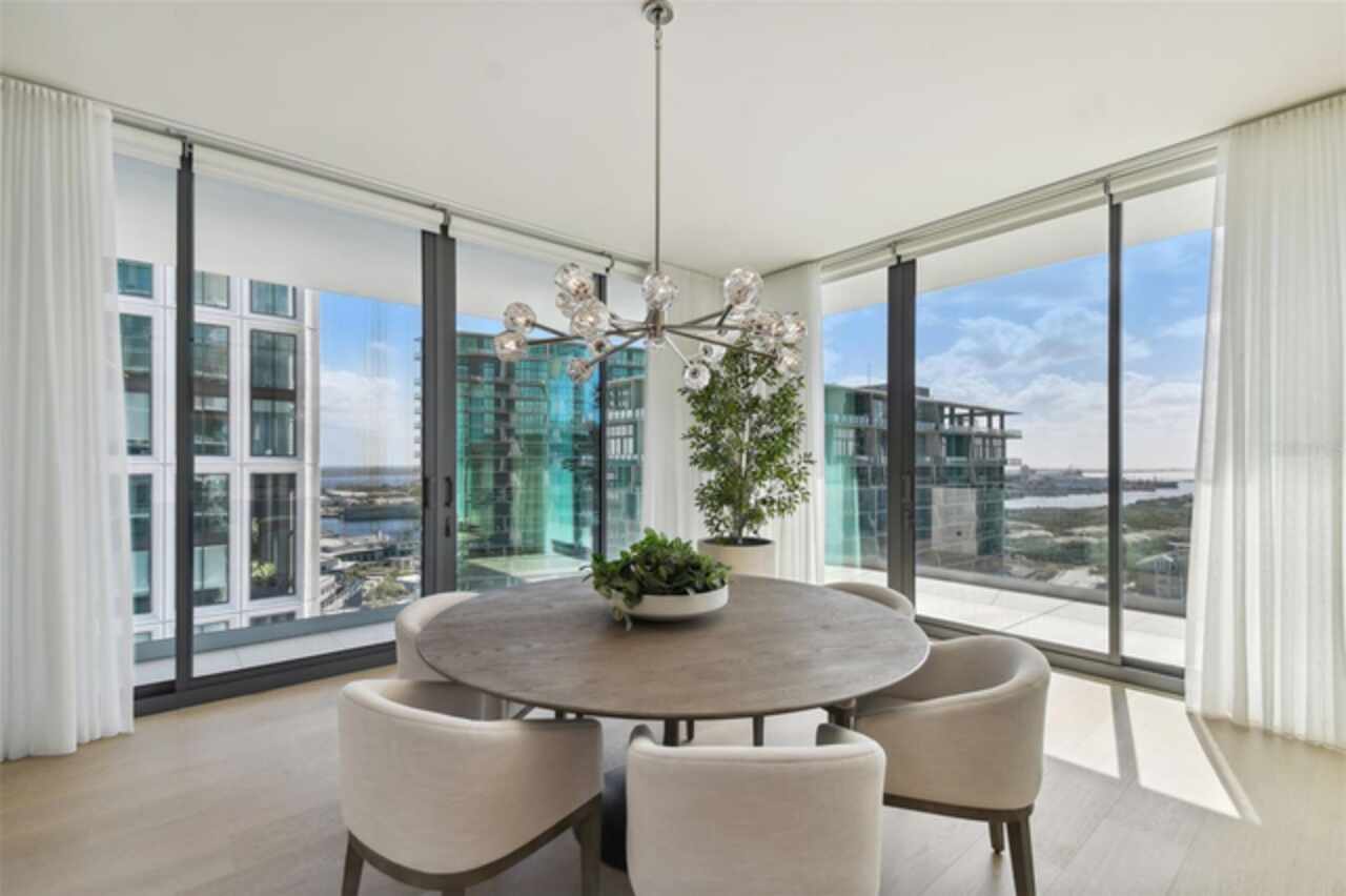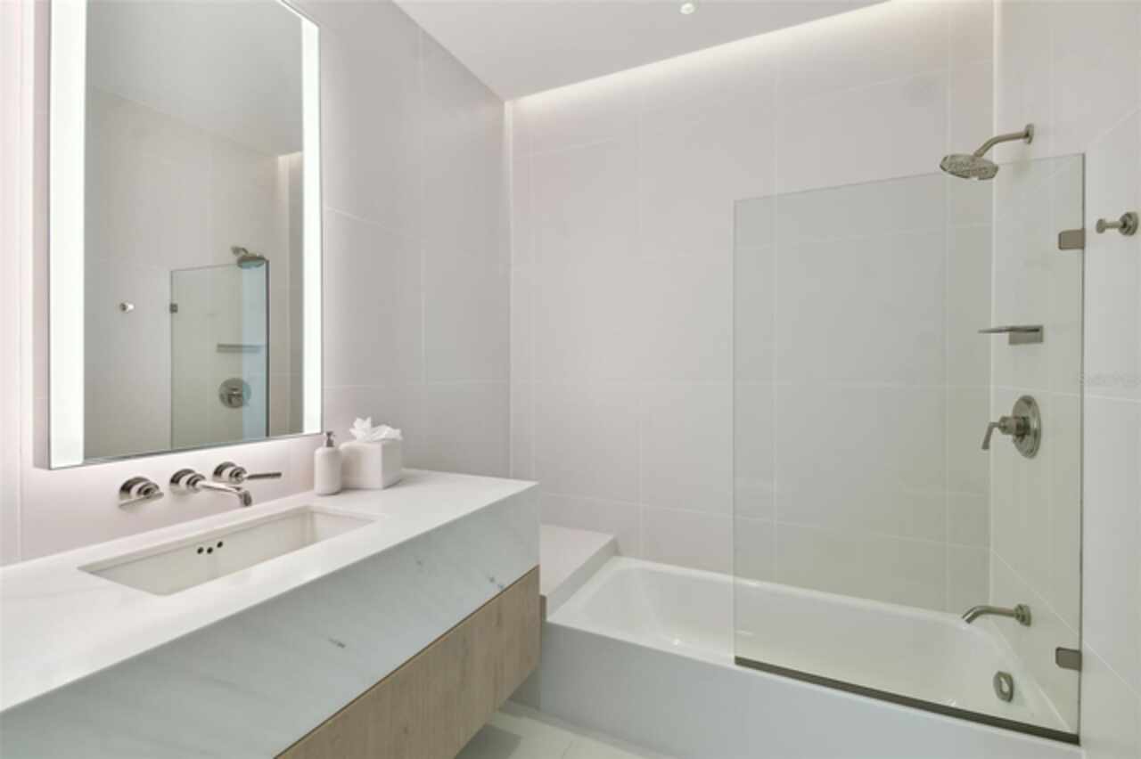 Under contract-accepting backup offers. Discover an unrivaled living experience at The Tampa EDITION Residence 1702, a sophisticated corner unit masterfully designed and framed by sweeping vistas of Tampa Bay, the sprawling downtown skyline, and the visionary Water Street development. This residence epitomizes refined urban luxury. The exquisite open floor plan flows seamlessly between living, dining, and entertaining spaces, designed to offer an unparalleled experience of comfort and elegance. The private primary suite serves as a luxurious retreat, complete with a spa-inspired bath clad in Polaris White marble, a freestanding Kaldewei soaking tub, a custom double vanity, and ambient lighting that enhances its serene atmosphere. This sanctuary also includes two closets and direct access to a wrap-around terrace with breathtaking views. Two additional bedrooms, each with its own well-appointed ensuite bath, provide sophisticated accommodations for family or guests, while a private den offers the ideal space for relaxation or remote work. Every element of this home reflects meticulous craftsmanship and elegant design. Expansive floor-to-ceiling windows flood the 10-foot-ceiling interiors with natural light, seamlessly blending indoor and outdoor spaces. Sliding glass doors open to generous wraparound terraces adorned with post-less glass railings, offering uninterrupted views of the city below. Thoughtfully curated details include 10-inch custom Grato white oak floors, Polaris White marble countertops with a waterfall island and full-height backsplash, ambient cove lighting, and custom Molteni white oak cabinetry. The state-of-the-art Gaggenau kitchen features a wine cooler, five-burner gas cooktop, and a discreetly integrated Miele vented hood. As part of The Tampa EDITION, residents enjoy exclusive access to an array of five-star amenities envisioned by legendary hotelier Ian Schrager. From award-winning dining experiences led by celebrated chefs to the rejuvenating full-service spa, each offering embodies EDITION’s dedication to world-class living. The rooftop pool and terrace provide a tranquil escape with panoramic city views, while residents-only spaces, including a private gym, social kitchen, and lounge, create an ambiance of refined exclusivity. Complete with three dedicated parking spaces and a private storage room, this residence anticipates every need. Nestled within Water Street Tampa, the world’s first WELL-certified community, The Tampa EDITION is the ultimate intersection of wellness, innovation, and sophistication. Residence 1702 invites you to experience an elevated lifestyle unlike any other in Tampa.