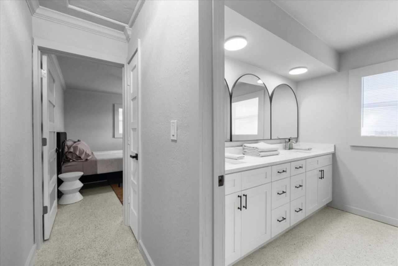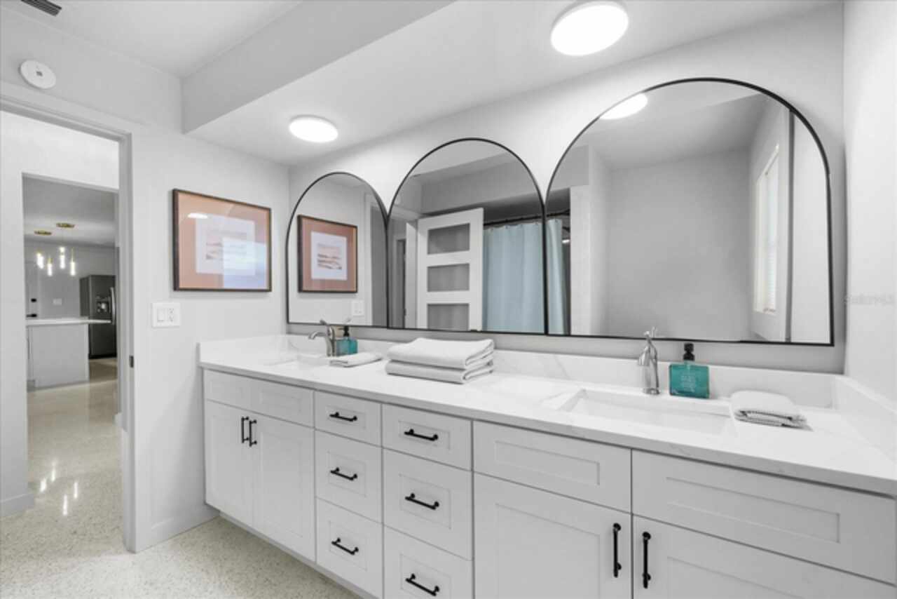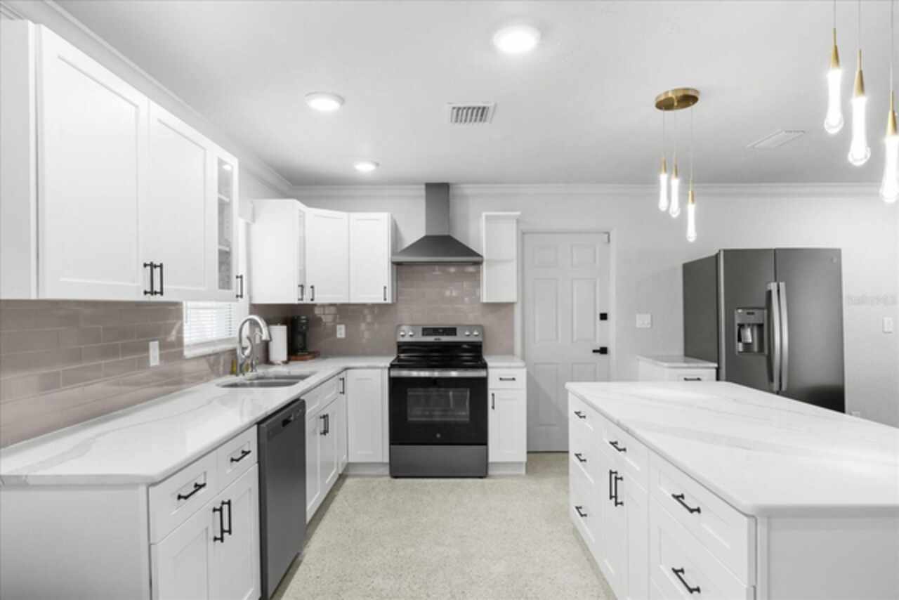 Prepare to be wowed by this stunning designer home. Discover this exceptional home on a coveted corner lot. The spacious outdoor area features a stylish pergola and showcases a beautiful pavered backyard perfect for outdoor gatherings. With an open layout, complemented by terrazzo floors that add a touch of sophistication, inside, you'll find a brand new kitchen with modern appliances, fresh drywall, freshly painted interiors, brand new doors, and upgraded lighting throughout. This stunning designer masterpiece seamlessly combines luxury finishes with functionality, offering everything you need for comfortable and stylish living—plus so much more. Offered fully furnished, if buyers with to purchase with the furniture and decor.