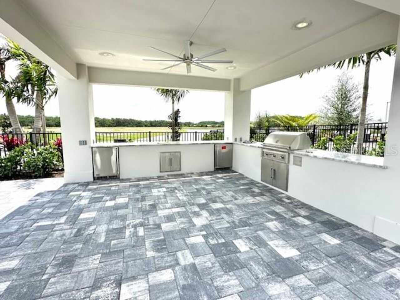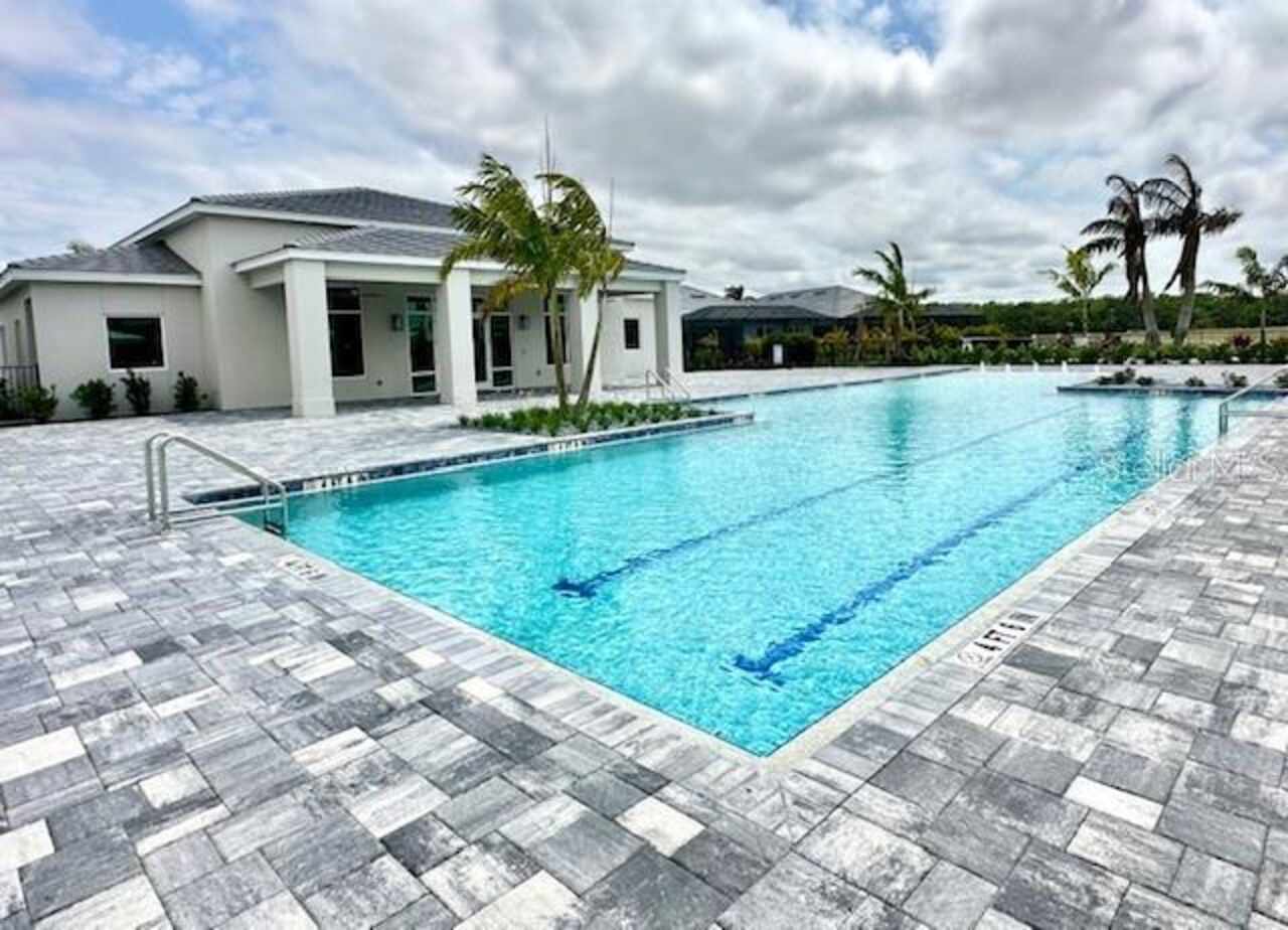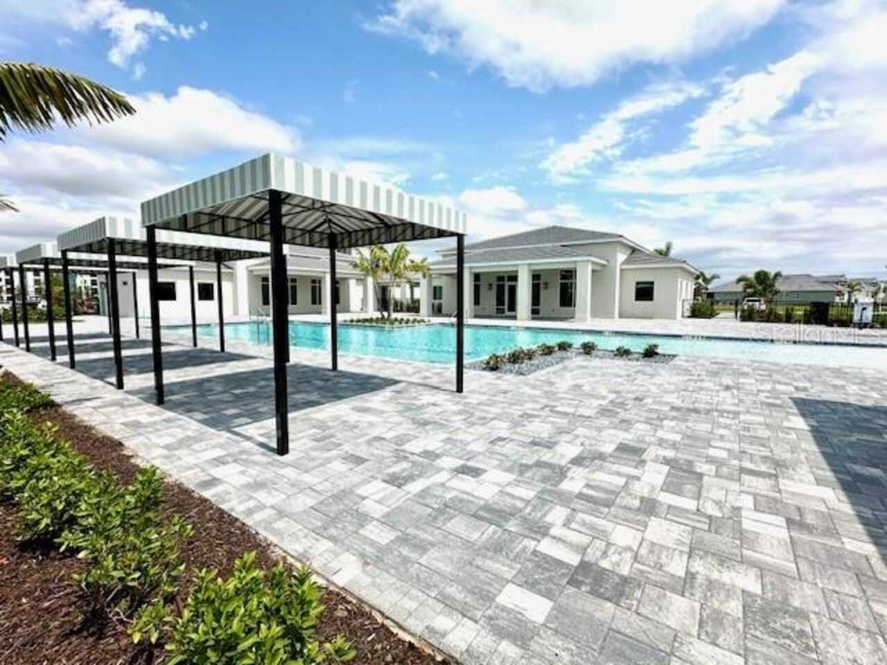 One or more photo(s) has been virtually staged. Welcome to the St Thomas; Medallion’s #1 selling open floor plan in Watercolor Place! This brand new, move in ready home on an oversized corner homesite features a paver driveway and tile roof. PLUS your very own private pool is now under construction and will be completed in time for summer! The St Thomas has won many Parade of Homes awards for it's open design, vaulted ceiling, and the extremely spacious primary bedroom and walk-in closet. There are 2 guest bedrooms with a shared bath, plus an extended den just off the foyer in the front of the home. You are sure to enjoy entertaining your guests in your well-appointed kitchen featuring a slide-in gas range, stainless-steel microwave, French door refrigerator, quartz countertops, and island that overlooks the dining area and great room. The soothing color scheme includes luxury vinyl plank flooring throughout your new home (no carpet), upgraded soft close cabinetry in the kitchen, baths, and laundry room, and faucets/fixtures are made by Moen. Medallion Home builds with high quality PGT impact-resistant windows and sliding glass doors...NO hurricane shutters needed here!! In addition to giving you peace of mind during storms, impact windows will lower your electric bills, cut your homeowners insurance costs, and decrease any outside noise. Enjoy the brand new Amenity Center with resort-style community pool, outdoor kitchen with grill, sink and outdoor refrigerators, indoor kitchen with warming trays, TV and lounge area, card room, plus the gym and yoga room in a separate building. There's also a fire-pit overlooking one of the lakes that provides amazing sunset views! Conveniently located near Lakewood Ranch for easy access to all the shopping and dining opportunities there, plus very close to Costco, Hobby Lobby, and the many new restaurants opening in The Marketplace at Heritage Harbour. Watercolor Place is a gated community; the HOA fee includes Spectrum internet, HD cable TV, lawn irrigation, lawn and landscape maintenance, amenity center, pool and gym use, common area and lake maintenance, and there are NO CDD fees!