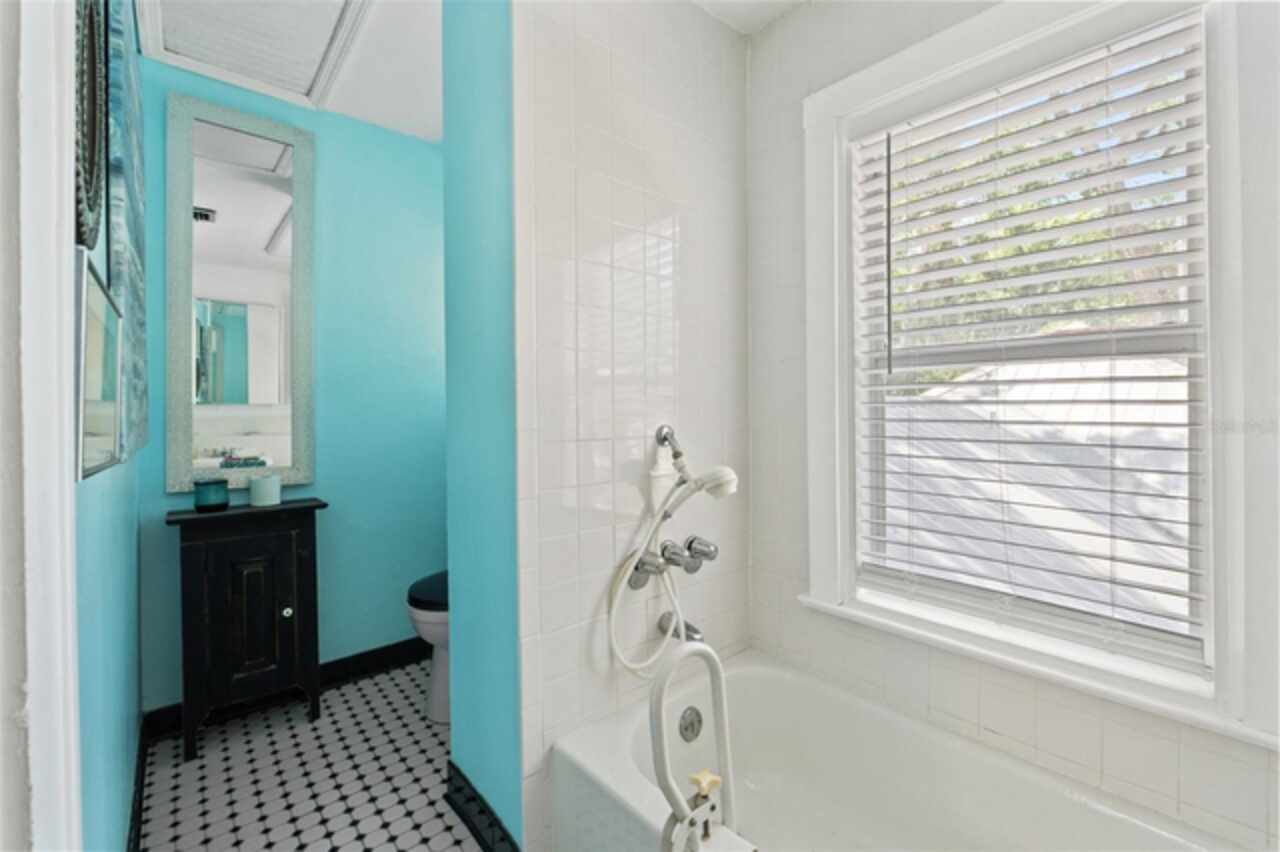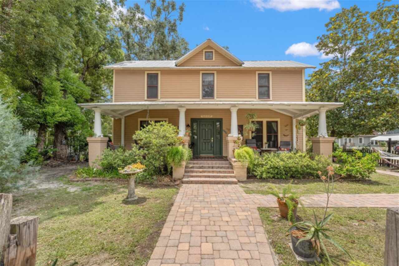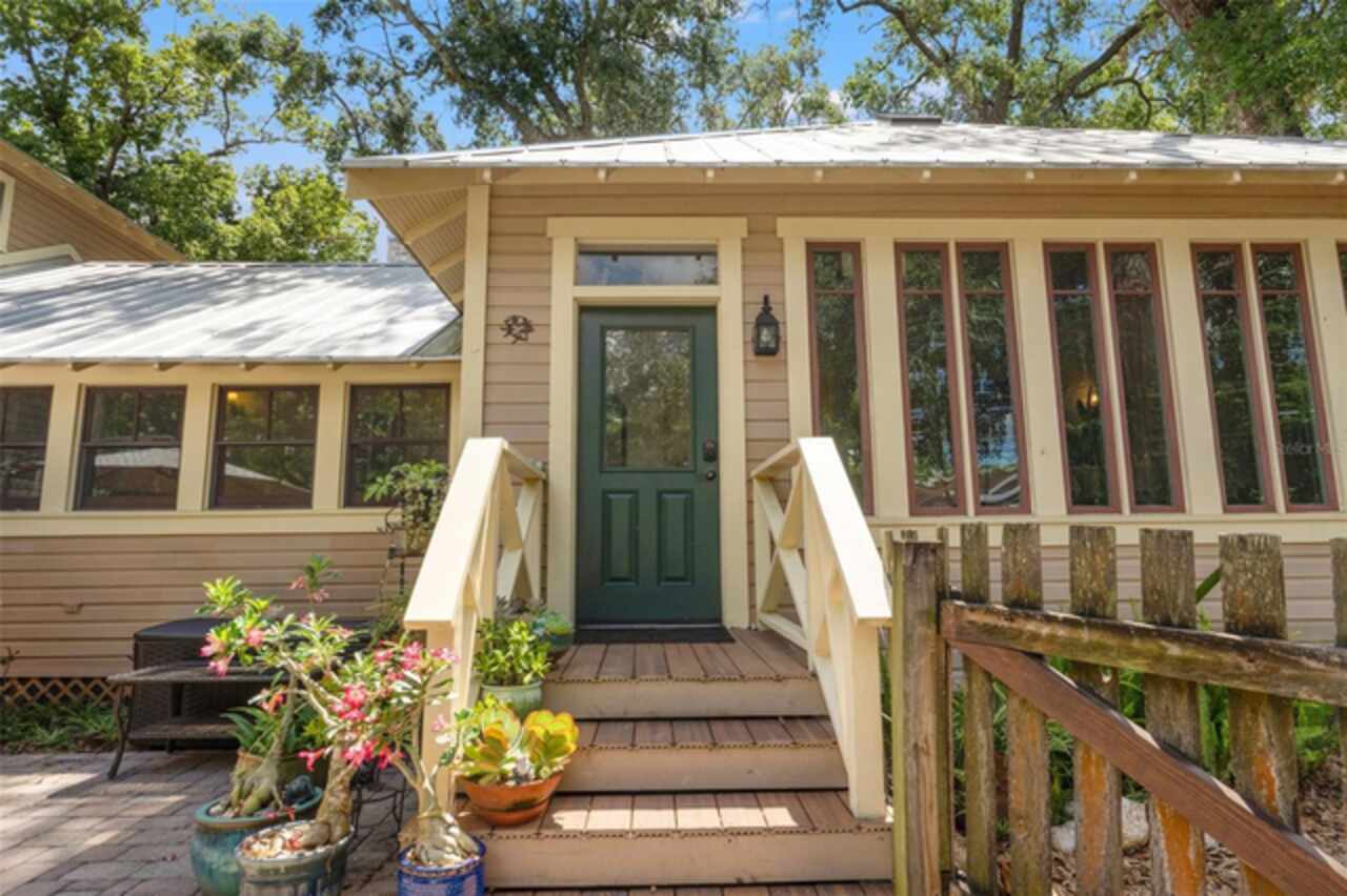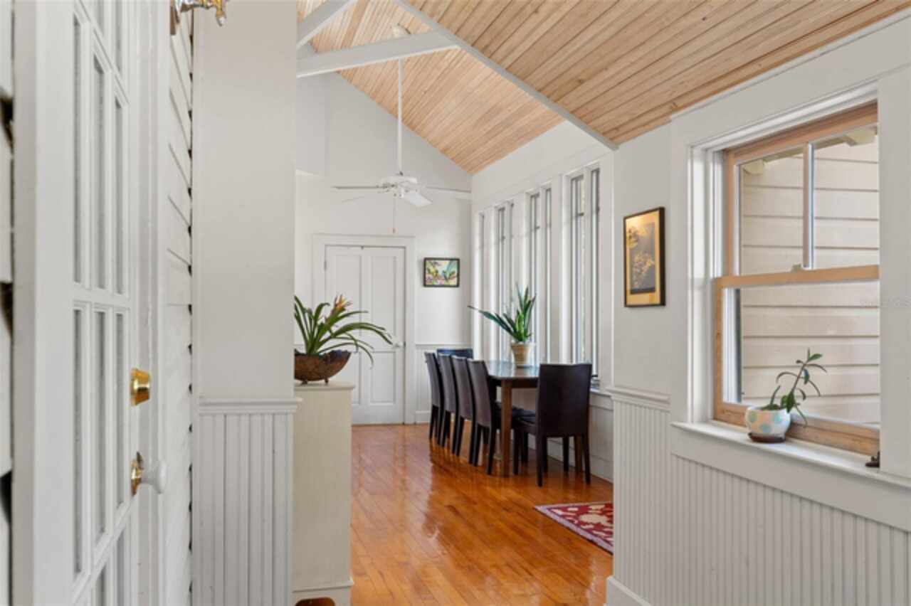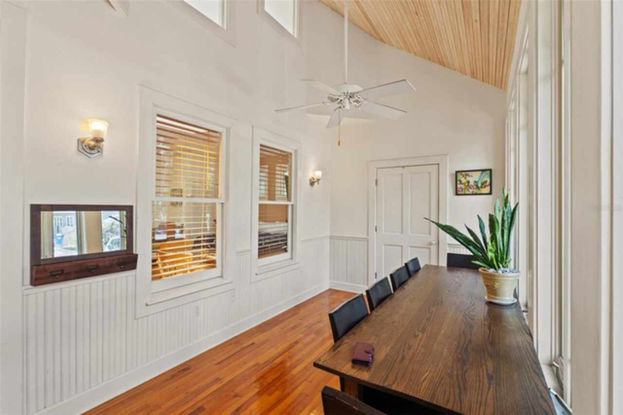 Don’t miss this incredible opportunity to own a charming 1920s bungalow with an income-producing in-law suite! This rare two-story, corner lot home is located in desirable Northeast Seminole Heights—just minutes from downtown Tampa, major highways, and popular dining and coffee spots. The main residence features 3 spacious bedrooms, 2 full bathrooms, beautiful original hardwood floors, and abundant natural light streaming through vintage windows. The kitchen offers custom cabinetry, warm wood accents, and tile countertop that is charming and functional. The attached in-law suite has its own private entrance and boasts vaulted ceilings, skylights, large windows, a kitchenette, and an oversized, handicap accessible shower—perfect for guests, rental income, multi-generational living or a private workspace. This space can also be used as an oversized, private primary bedroom with a private entrance. It also has plenty of room to be used as a studio, work or play space. This would then create a split floor plan, boasting a 4 bedroom/3-bathroom main home. Enjoy outdoor living on the welcoming covered front porch, ideal for morning coffee or evening relaxation. The fully fenced courtyard garden features mature landscaping, paved seating, and a BBQ area. Inside, additional highlights include a sunlit dining room with soaring ceilings and walls of windows, a cozy wood-burning fireplace, and generous storage throughout. Situated 30 feet above sea level—no flood insurance required—this home also offers a durable metal roof (2016) with decades of life ahead. Nestled in a vibrant neighborhood near the Hillsborough River, this lovingly maintained property offers timeless charm, modern versatility, and unbeatable location.