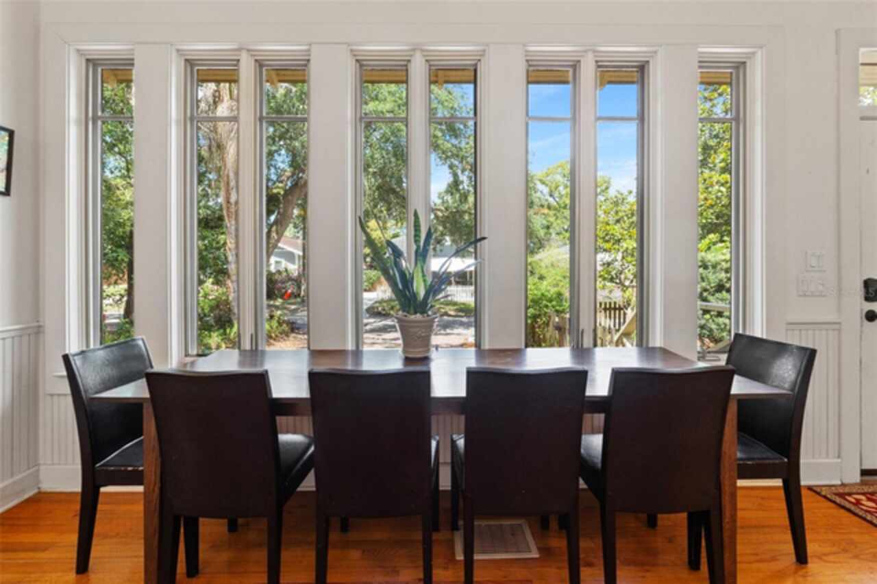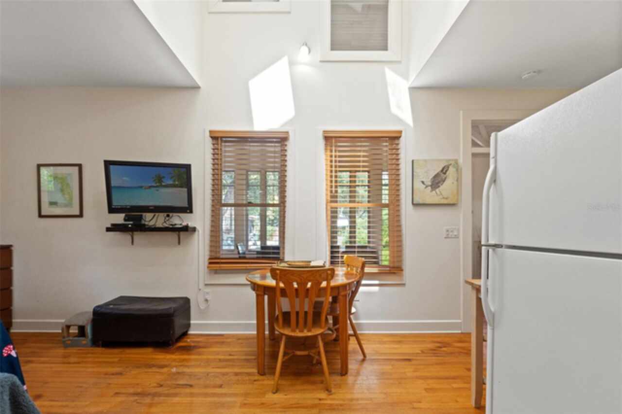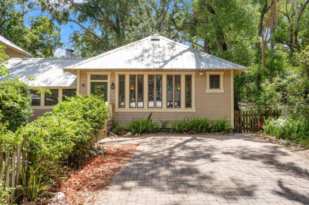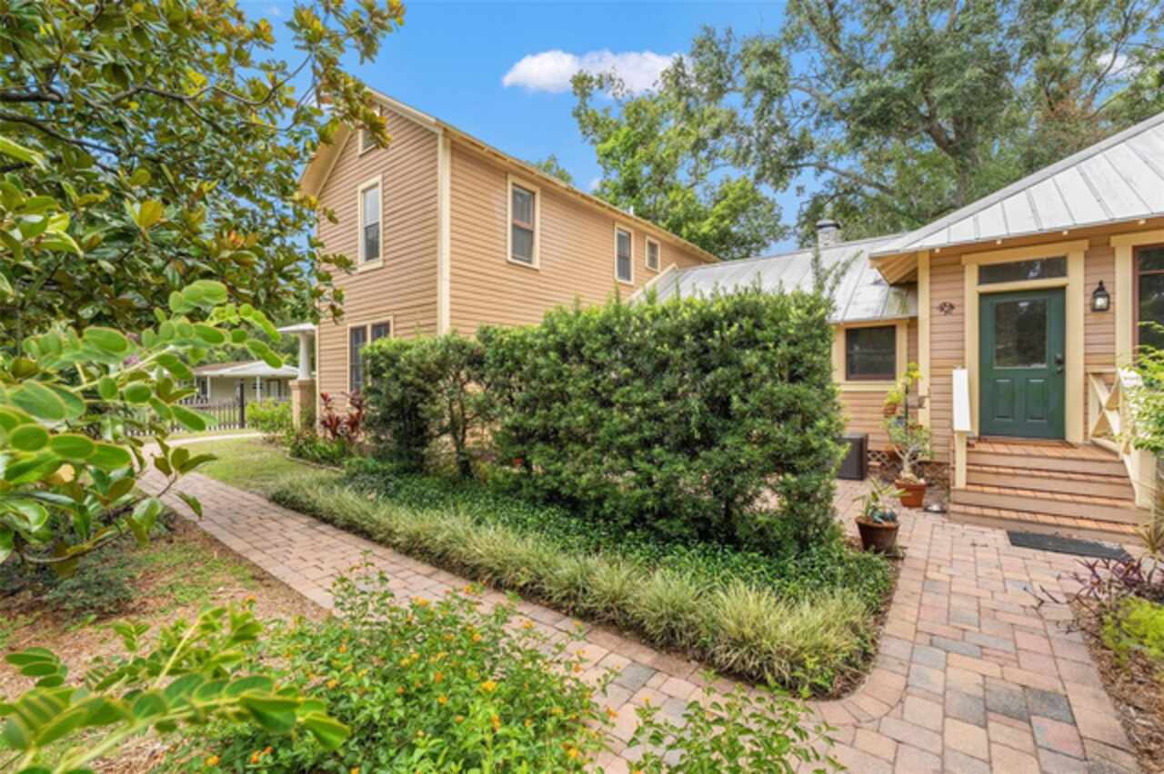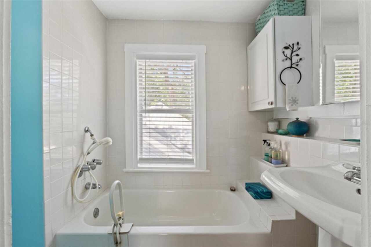 Don’t miss this incredible opportunity to own a charming 1920s bungalow with an income-producing in-law suite! This rare two-story, corner lot home is located in desirable Northeast Seminole Heights—just minutes from downtown Tampa, major highways, and popular dining and coffee spots. The main residence features 3 spacious bedrooms, 2 full bathrooms, beautiful original hardwood floors, and abundant natural light streaming through vintage windows. The kitchen offers custom cabinetry, warm wood accents, and tile countertop that is charming and functional. The attached in-law suite has its own private entrance and boasts vaulted ceilings, skylights, large windows, a kitchenette, and an oversized, handicap accessible shower—perfect for guests, rental income, multi-generational living or a private workspace. This space can also be used as an oversized, private primary bedroom with a private entrance. It also has plenty of room to be used as a studio, work or play space. This would then create a split floor plan, boasting a 4 bedroom/3-bathroom main home. Enjoy outdoor living on the welcoming covered front porch, ideal for morning coffee or evening relaxation. The fully fenced courtyard garden features mature landscaping, paved seating, and a BBQ area. Inside, additional highlights include a sunlit dining room with soaring ceilings and walls of windows, a cozy wood-burning fireplace, and generous storage throughout. Situated 30 feet above sea level—no flood insurance required—this home also offers a durable metal roof (2016) with decades of life ahead. Nestled in a vibrant neighborhood near the Hillsborough River, this lovingly maintained property offers timeless charm, modern versatility, and unbeatable location.
