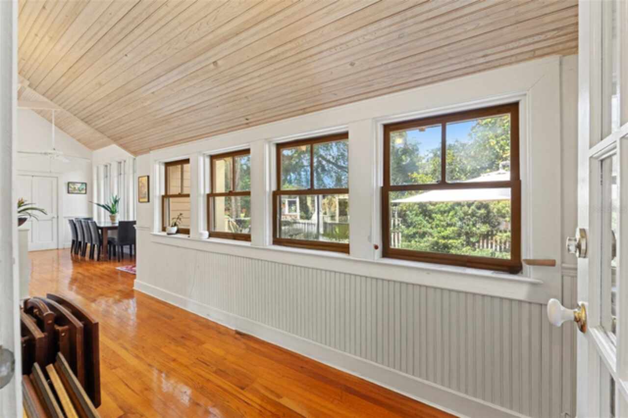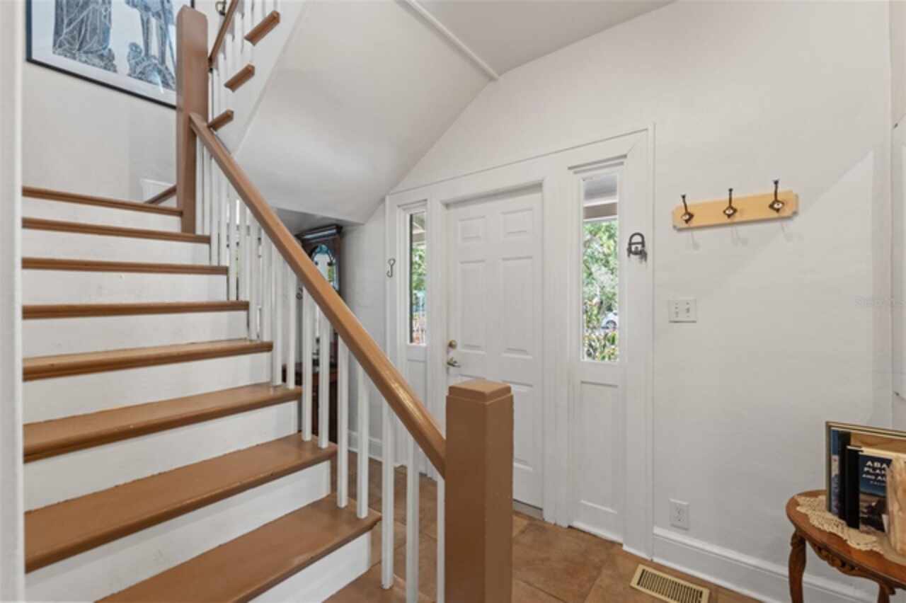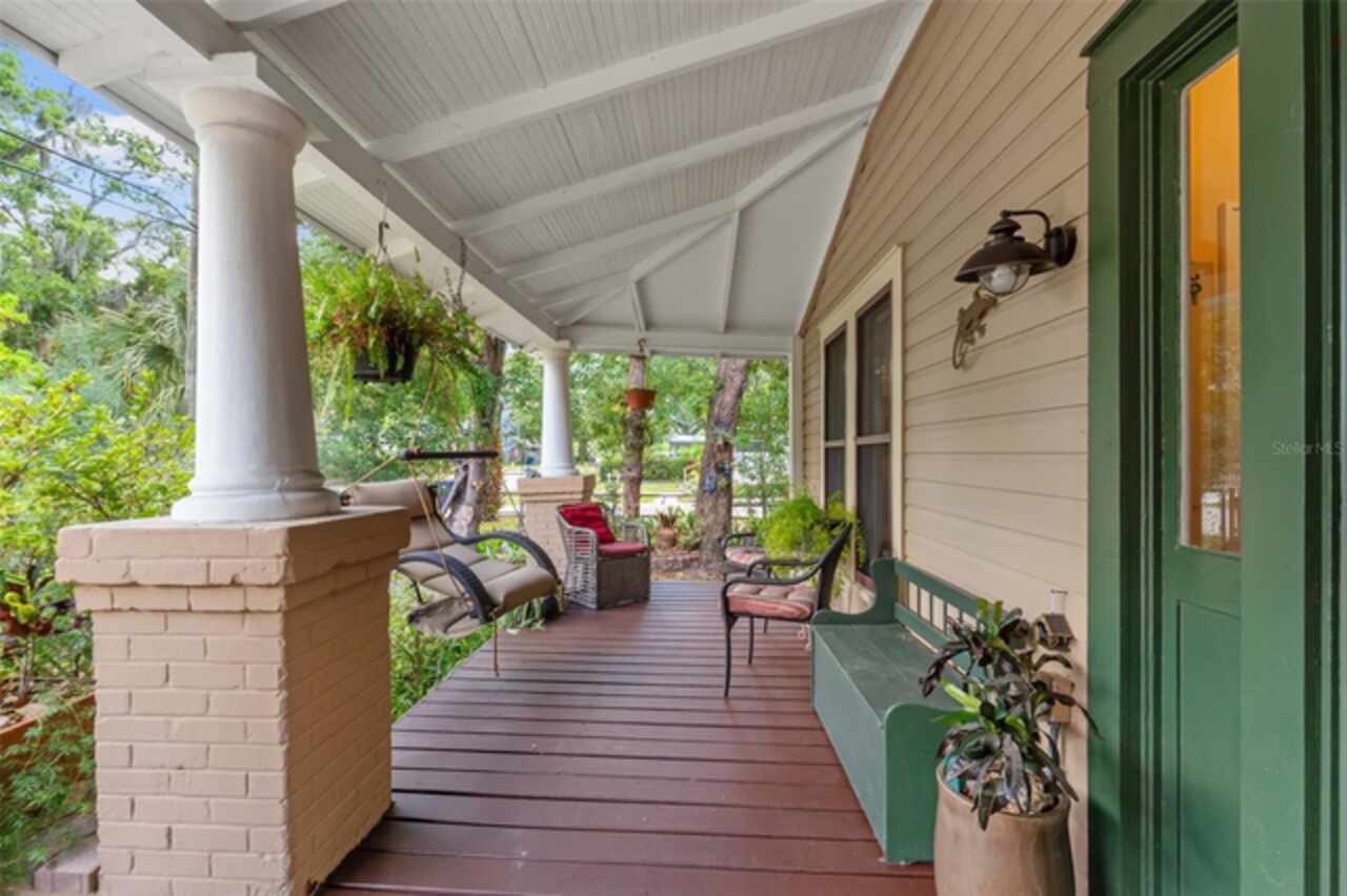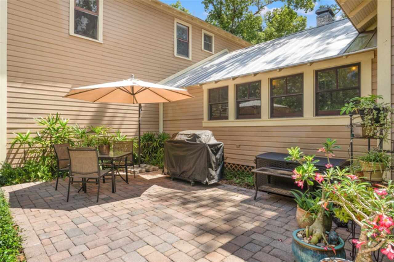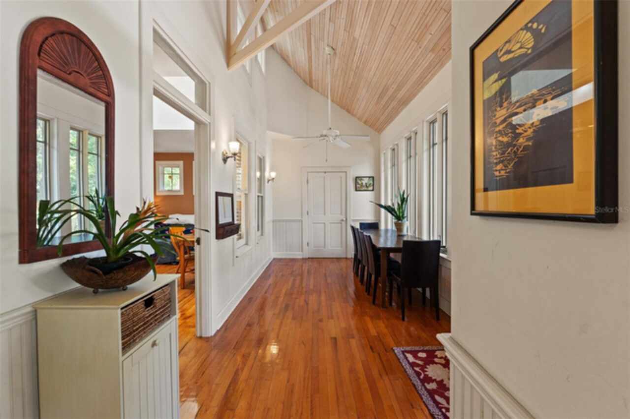 Don’t miss this incredible opportunity to own a charming 1920s bungalow with an income-producing in-law suite! This rare two-story, corner lot home is located in desirable Northeast Seminole Heights—just minutes from downtown Tampa, major highways, and popular dining and coffee spots. The main residence features 3 spacious bedrooms, 2 full bathrooms, beautiful original hardwood floors, and abundant natural light streaming through vintage windows. The kitchen offers custom cabinetry, warm wood accents, and tile countertop that is charming and functional. The attached in-law suite has its own private entrance and boasts vaulted ceilings, skylights, large windows, a kitchenette, and an oversized, handicap accessible shower—perfect for guests, rental income, multi-generational living or a private workspace. This space can also be used as an oversized, private primary bedroom with a private entrance. It also has plenty of room to be used as a studio, work or play space. This would then create a split floor plan, boasting a 4 bedroom/3-bathroom main home. Enjoy outdoor living on the welcoming covered front porch, ideal for morning coffee or evening relaxation. The fully fenced courtyard garden features mature landscaping, paved seating, and a BBQ area. Inside, additional highlights include a sunlit dining room with soaring ceilings and walls of windows, a cozy wood-burning fireplace, and generous storage throughout. Situated 30 feet above sea level—no flood insurance required—this home also offers a durable metal roof (2016) with decades of life ahead. Nestled in a vibrant neighborhood near the Hillsborough River, this lovingly maintained property offers timeless charm, modern versatility, and unbeatable location.