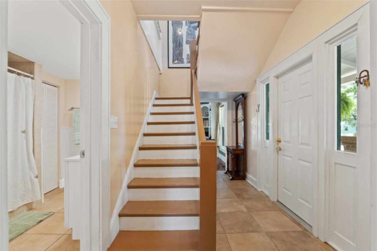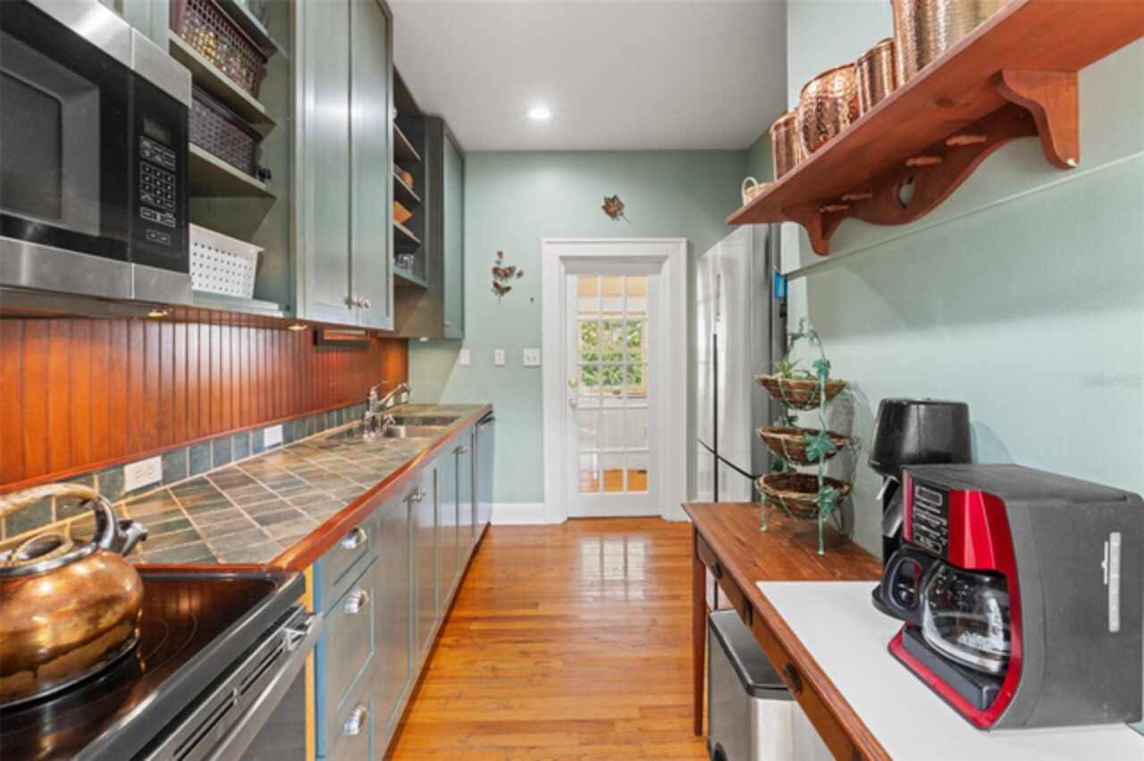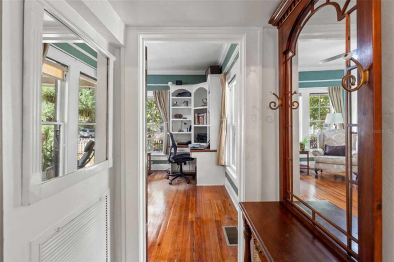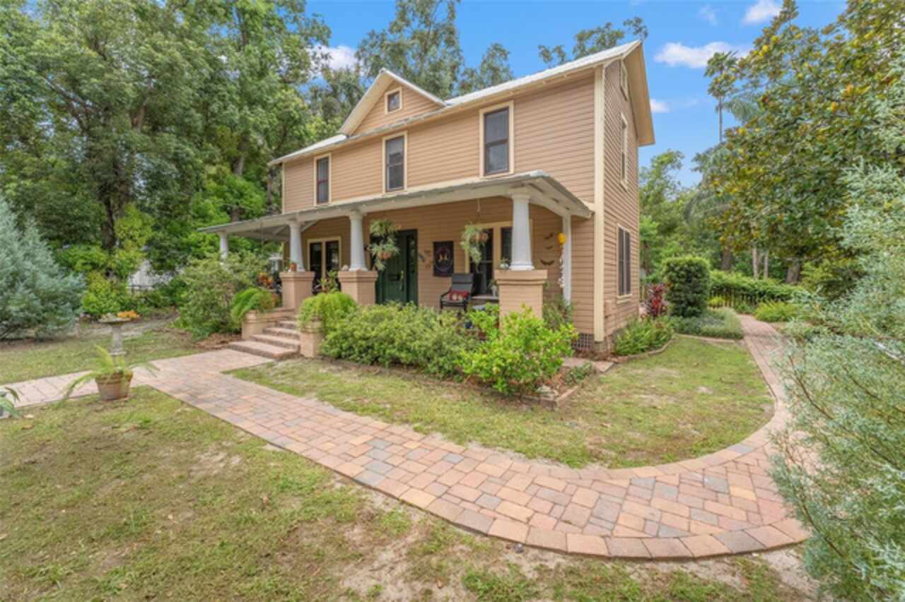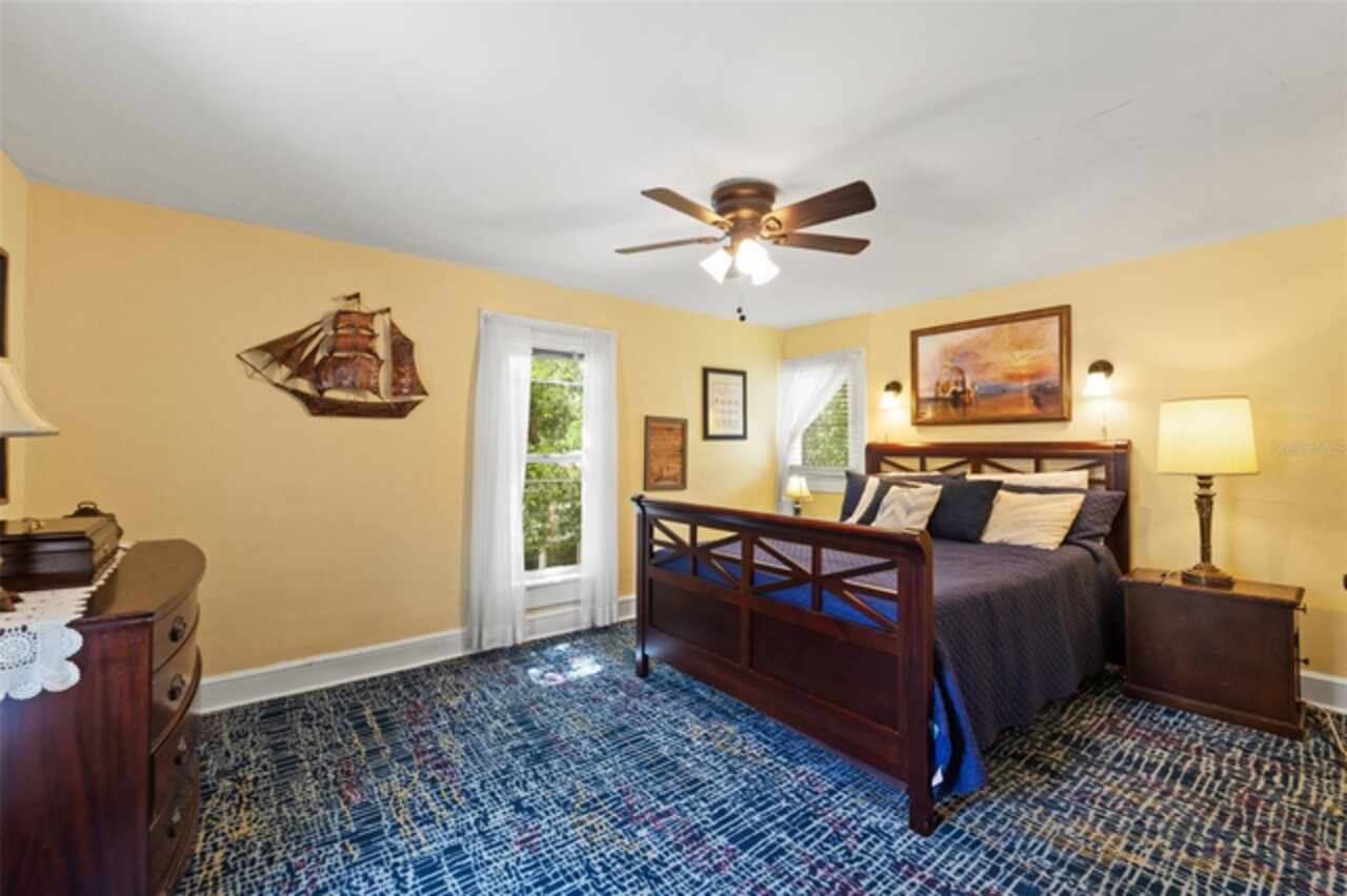 Don’t miss this incredible opportunity to own a charming 1920s bungalow with an income-producing in-law suite! This rare two-story, corner lot home is located in desirable Northeast Seminole Heights—just minutes from downtown Tampa, major highways, and popular dining and coffee spots. The main residence features 3 spacious bedrooms, 2 full bathrooms, beautiful original hardwood floors, and abundant natural light streaming through vintage windows. The kitchen offers custom cabinetry, warm wood accents, and tile countertop that is charming and functional. The attached in-law suite has its own private entrance and boasts vaulted ceilings, skylights, large windows, a kitchenette, and an oversized, handicap accessible shower—perfect for guests, rental income, multi-generational living or a private workspace. This space can also be used as an oversized, private primary bedroom with a private entrance. It also has plenty of room to be used as a studio, work or play space. This would then create a split floor plan, boasting a 4 bedroom/3-bathroom main home. Enjoy outdoor living on the welcoming covered front porch, ideal for morning coffee or evening relaxation. The fully fenced courtyard garden features mature landscaping, paved seating, and a BBQ area. Inside, additional highlights include a sunlit dining room with soaring ceilings and walls of windows, a cozy wood-burning fireplace, and generous storage throughout. Situated 30 feet above sea level—no flood insurance required—this home also offers a durable metal roof (2016) with decades of life ahead. Nestled in a vibrant neighborhood near the Hillsborough River, this lovingly maintained property offers timeless charm, modern versatility, and unbeatable location.
