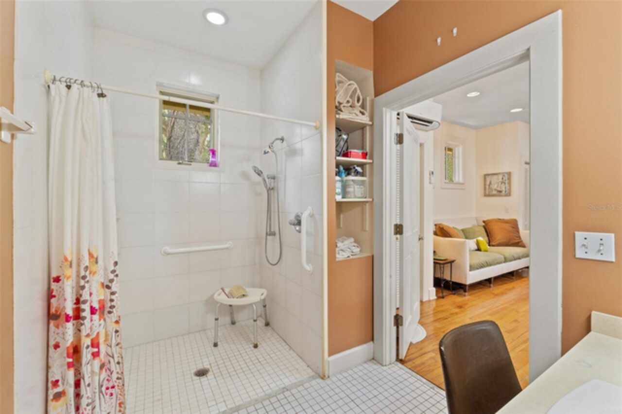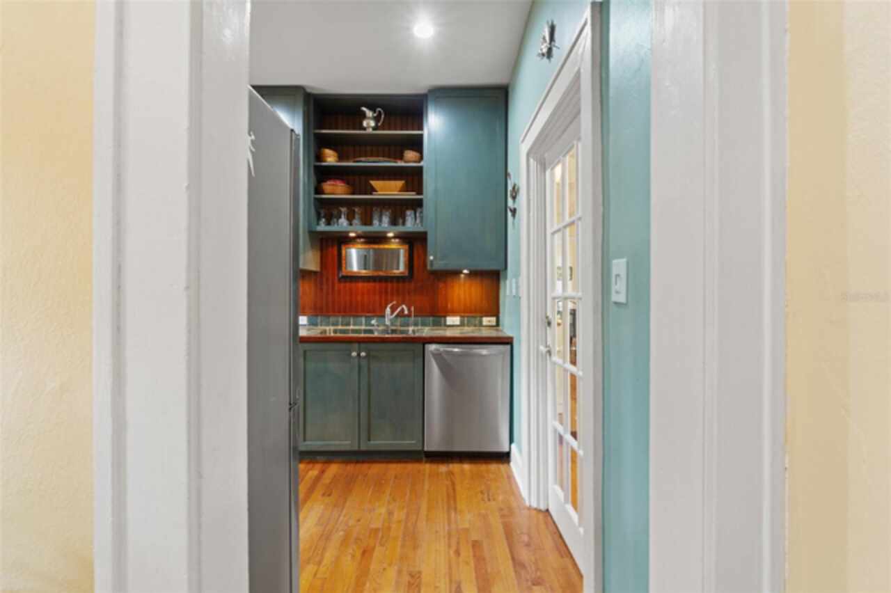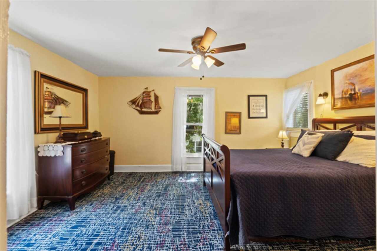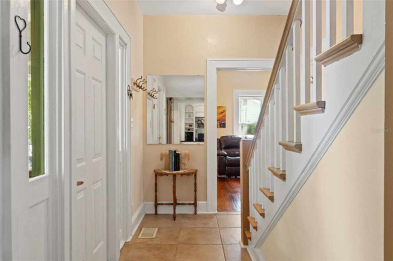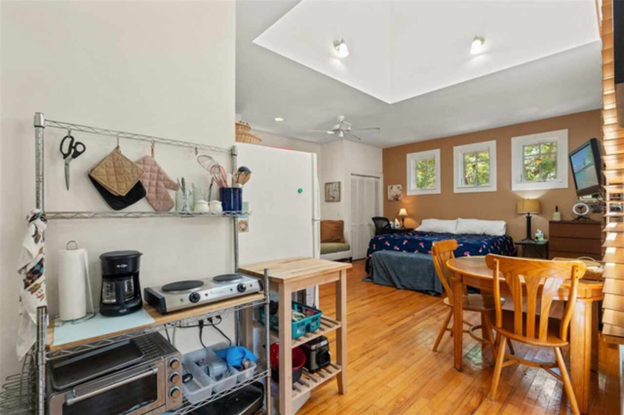 Don’t miss this incredible opportunity to own a charming 1920s bungalow with an income-producing in-law suite! This rare two-story, corner lot home is located in desirable Northeast Seminole Heights—just minutes from downtown Tampa, major highways, and popular dining and coffee spots. The main residence features 3 spacious bedrooms, 2 full bathrooms, beautiful original hardwood floors, and abundant natural light streaming through vintage windows. The kitchen offers custom cabinetry, warm wood accents, and tile countertop that is charming and functional. The attached in-law suite has its own private entrance and boasts vaulted ceilings, skylights, large windows, a kitchenette, and an oversized, handicap accessible shower—perfect for guests, rental income, multi-generational living or a private workspace. This space can also be used as an oversized, private primary bedroom with a private entrance. It also has plenty of room to be used as a studio, work or play space. This would then create a split floor plan, boasting a 4 bedroom/3-bathroom main home. Enjoy outdoor living on the welcoming covered front porch, ideal for morning coffee or evening relaxation. The fully fenced courtyard garden features mature landscaping, paved seating, and a BBQ area. Inside, additional highlights include a sunlit dining room with soaring ceilings and walls of windows, a cozy wood-burning fireplace, and generous storage throughout. Situated 30 feet above sea level—no flood insurance required—this home also offers a durable metal roof (2016) with decades of life ahead. Nestled in a vibrant neighborhood near the Hillsborough River, this lovingly maintained property offers timeless charm, modern versatility, and unbeatable location.