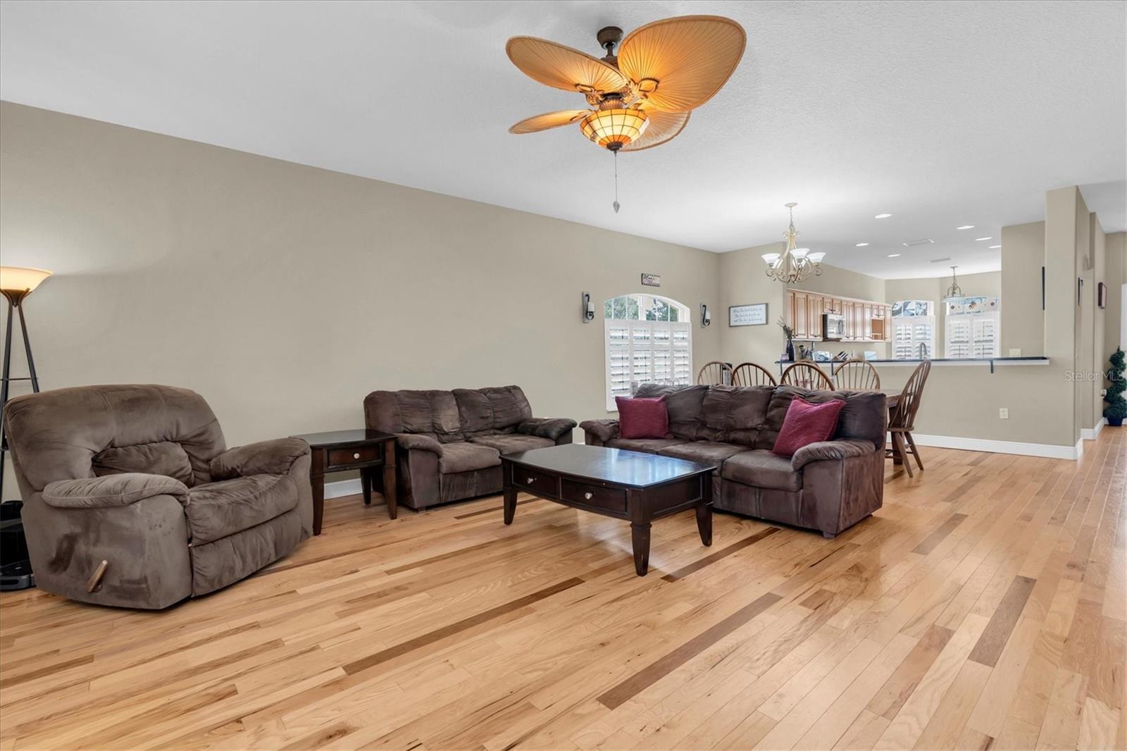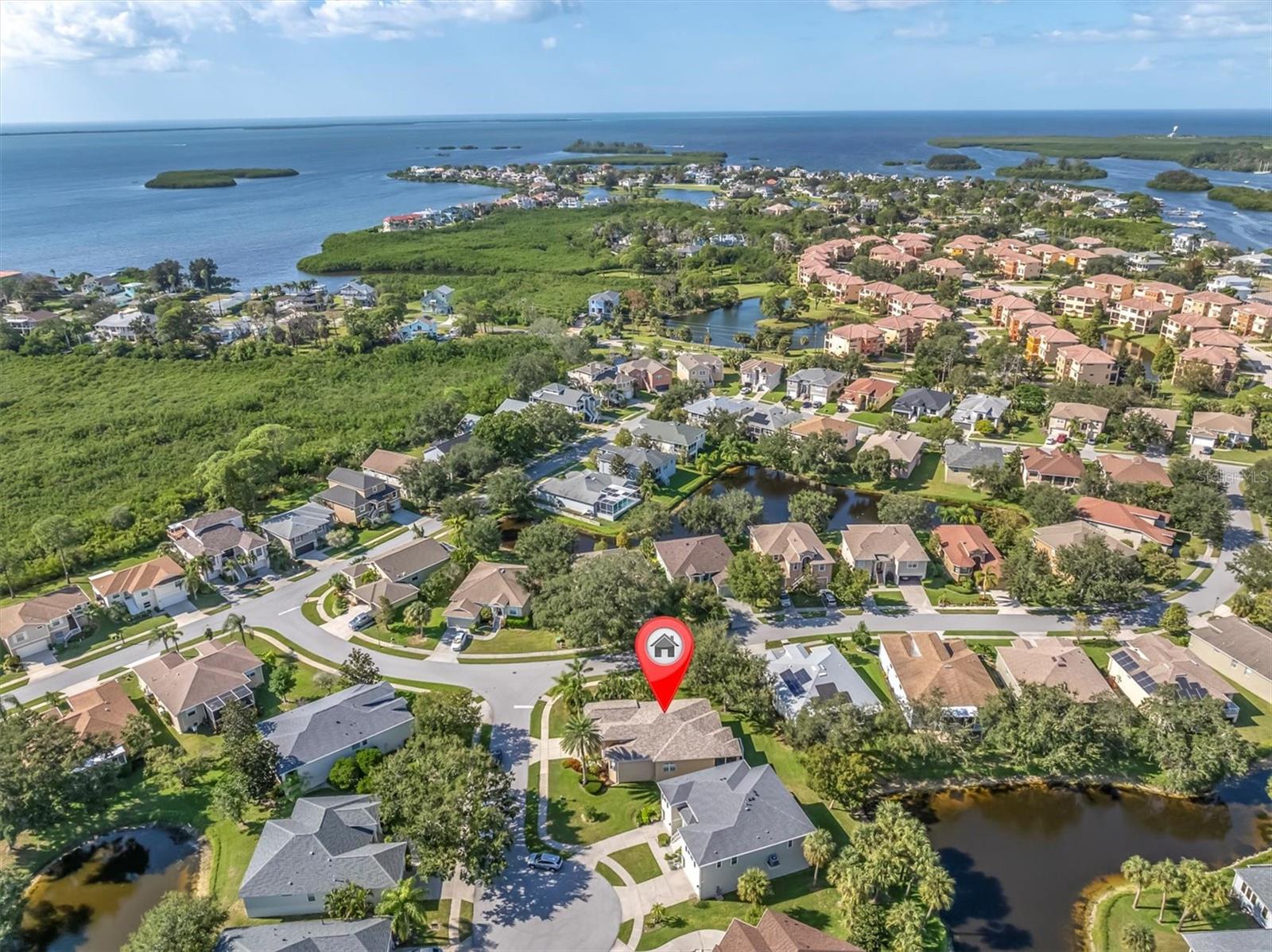 Welcome to your dream coastal home in the highly desirable Pointe Alexis South community of Tarpon Springs, Florida. This elevated 3-bedroom, 2-bathroom residence with an oversized 2-car garage sits on a beautifully landscaped corner lot with peaceful pond views and tropical surroundings. Step through the elegant double front doors into a light-filled open floor plan featuring hardwood floors, neutral paint tones, and plantation shutters throughout. An arched doorway leads into the gourmet kitchen, which offers granite countertops, stainless steel appliances, wood cabinetry, a breakfast bar, and a cozy eat-in dining nook—perfect for both everyday living and entertaining. The spacious living and dining areas flow seamlessly and offer a comfortable, coastal-inspired layout. The primary suite is a private retreat with a luxurious en-suite bathroom including a jacuzzi tub and a professionally designed California walk-in closet. Two additional bedrooms provide ample space for guests or a home office. A screened-in patio at the rear of the home overlooks a tranquil pond, offering the ideal spot to relax and enjoy Florida's natural beauty. Additional features include a newer roof (2023), updated A/C (2019), and a transferable flood insurance policy at only $900 per year. Pointe Alexis South is a resort-style, maintenance-free community with HOA fee that covers water, sewer, trash, cable, internet, full lawn maintenace including tree trimming and sprinkler maintenance. Residents enjoy access to a newly renovated clubhouse featuring an Olympic-sized heated pool and spa, fitness center, billiards, library, large event space with kitchen, tennis, pickleball, and shuffleboard courts. Located just minutes from Fred Howard Park, Sunset Beach, the Pinellas Trail, Downtown Tarpon Springs, and the historic Sponge Docks. Don’t miss this rare opportunity to own a move-in-ready coastal oasis in one of Tarpon Springs’ most sought-after communities. Must see to appreciate! Schedule your showing today!