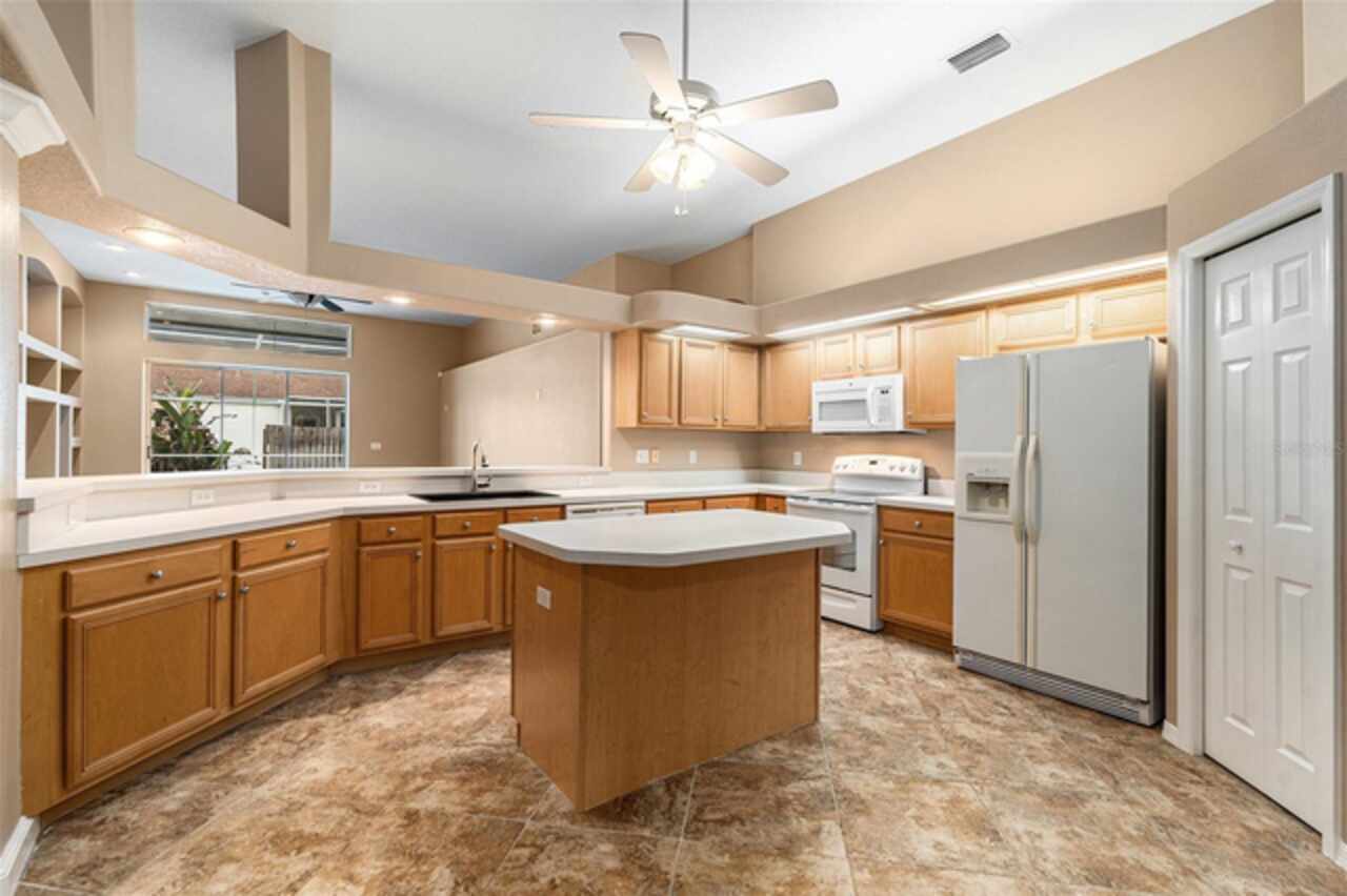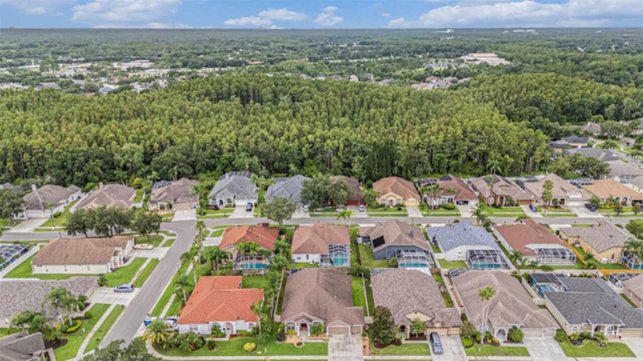 One or more photo(s) has been virtually staged. Welcome to the highly sought-after gated community of Kingshyre in New Tampa, where you can enjoy no CDD fees and low HOA dues. This spacious and well-maintained 4-bedroom, 3-bathroom, 3-car garage pool home offers over 2, 900 square feet of living space and a layout designed for both comfort and function. The beautifully designed Siesta II floor plan welcomes you through double doors into formal living and dining areas with high ceilings and large windows that create a bright, open atmosphere. The kitchen features a center island, large pantry, cabinet pullouts, a breakfast bar, and a casual dining nook overlooking the lanai and pool. The family room includes custom built-ins, a fireplace, and direct access to the screened outdoor living area. The spacious primary suite offers dual walk-in closets and an en-suite bath with a soaking tub, walk-in shower, and separate vanities. Three additional bedrooms also feature walk-in closets, including one with an en-suite bath and pool access—ideal for guests or multigenerational living. Outside, enjoy a covered lanai, private pool, and fully fenced backyard. Fresh interior paint and brand new carpet were completed in July 2025. Conveniently located near top-rated schools, shopping, dining, parks, hospitals, and with easy access to I-75 and I-275.