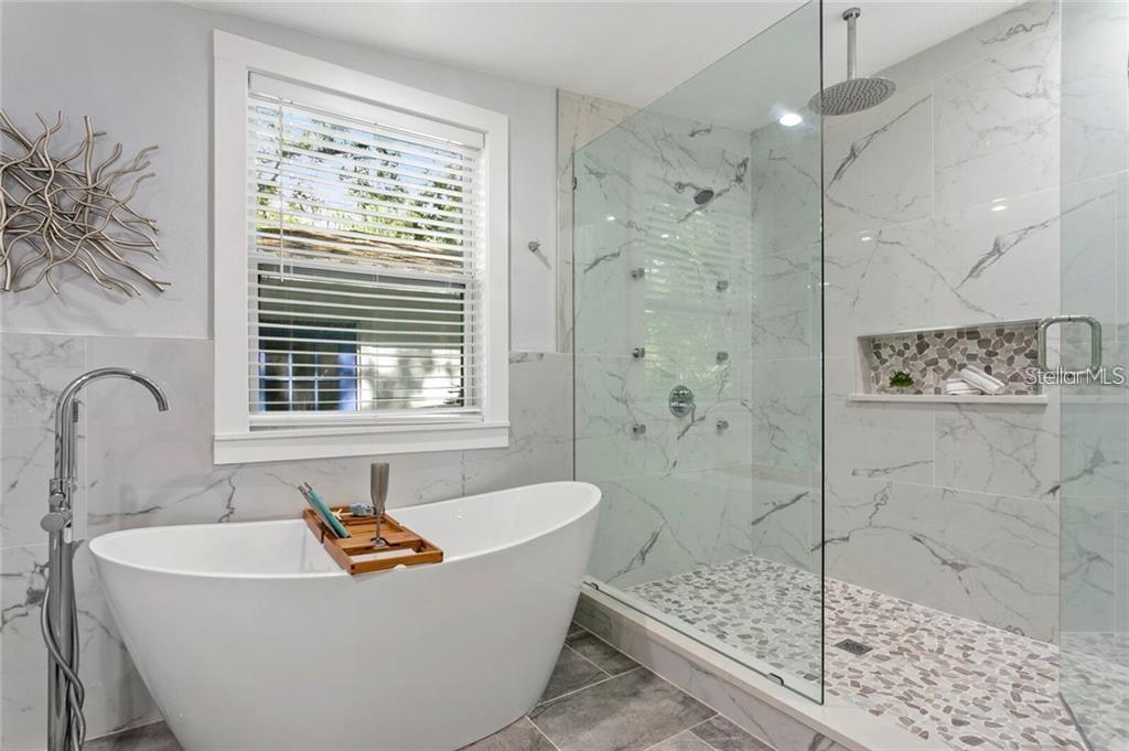 Under contract-accepting backup offers. Welcome to this charming, fully updated original cottage with old world charm featuring three bedrooms two baths, one car garage and an oversized lush landscaped fenced in back yard. Kitchen has updated finishes, stainless steel appliances, eat in counter space and dual entrances. Barn doors lead to the master bedroom with scenic views and spacious bathroom with a freestanding soaker bathtub, frameless shower with rainfall shower head and large vanity with dual sinks. Split bedroom plan with two addition bedrooms located on the other side of the home. Renovation includes newer plumbing, newer electrical panel and newer wiring. The beautiful, oversized lot offers privacy, a relaxing “neighbor patio”, extra-long driveway for guest parking and a spacious fenced in back yard with firepit. Conveniently located close to shopping, entertainment, restaurants, sports venues and just a short walk from all that Seminole Heights features and more.