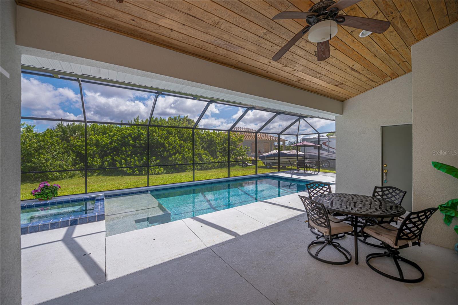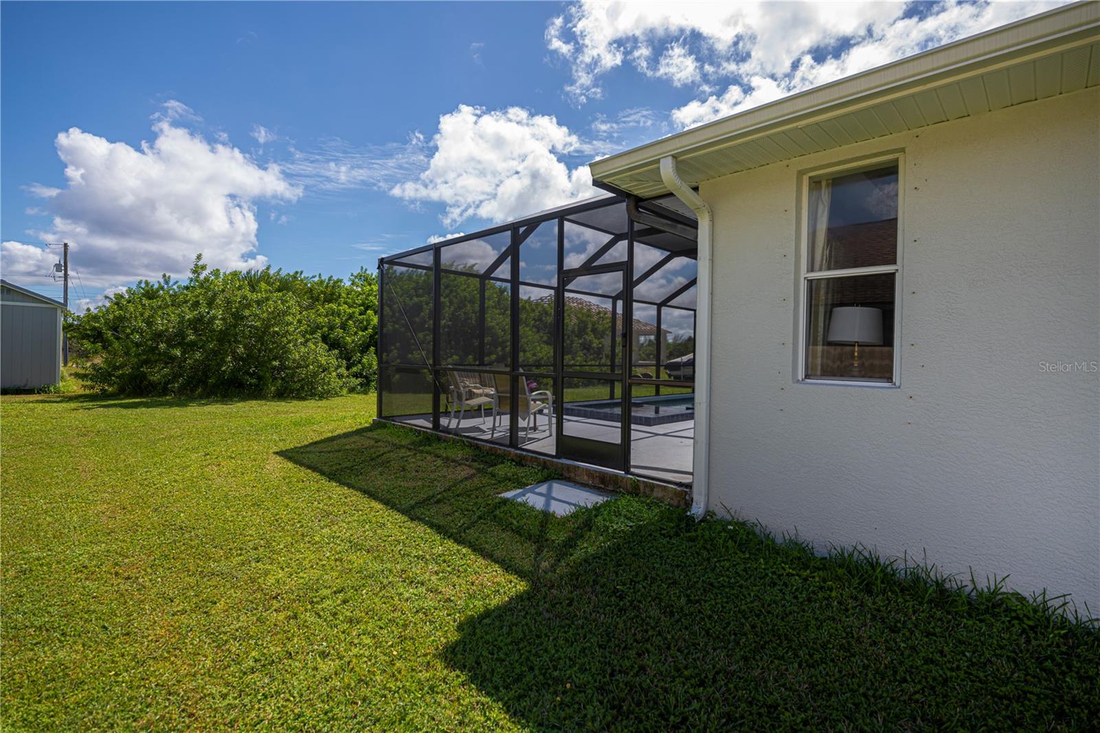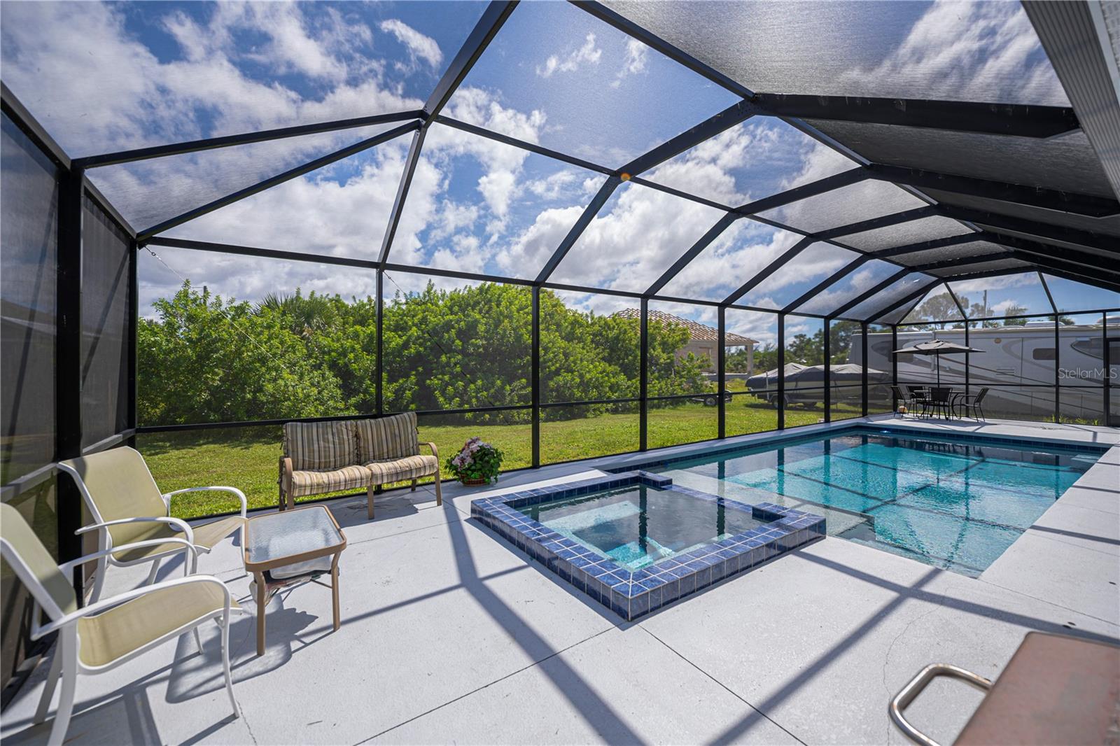 DOUBLE CORNER LOT estate! Here is your opportunity to experience extra privacy with this extra special 3/2/2 POOL Home in the charming waterfront community of South Gulf Cove.With eye catching curb appeal, enjoy the soaring entryway, rich columns, and complimentary accent bands, these added features are most inviting.This split floor plan offers custom stained mill-worked window and doorway casings, high ceilings, abundant natural light, all overlooking a spectacular HEATED SALTWATER POOL with modern automated features including a spa. Spacious living room has a built in entertainment center and tall vaulted ceiling, just perfect for all your socializing or winding down needs. This kitchen is chef worthy kitchen boasting granite countertops, wood cabinetry, stainless steel appliances, breakfast bar and separate dinette with exceptional wainscoting accents perfect for morning thru night to relax leisurely overlooking your backyard oasis. The master bedroom has a beautiful coffered ceiling, private patio/pool access, dual walk in closets and lovely en-suite bath featuring two sinks plus both a shower and large jacuzzi tub. Guests will enjoy two choice bedrooms with nice walk in closets, and breezy fans sharing a nicely appointed pool bath with the rest of the home. Inside laundry room is conveniently located by the 20x24 garage and kitchen with extra upper cabinetry, storage/utility closet/pantry plus has a utility sink. NEW 2023 ROOF, GUTTERS, NO-SEE-UM Pool screens, and freshly painted exterior add extra value and peace mind. SWIM YEAR ROUND, your Saltwater pool is also HEATED! Lounge leisurely on the pool sun ledge or relax in the jacuzzi and enjoy all the automated lighting features with so many options to dazzle whatever you or your guests desire. Imagine all the special times ahead to be made with friends and family within this idyllic retreat and the added fun features you can dream of in your expansive side and backyards.The second lot has already been cleared for your enjoyment and ready for all your personal ideas. South Gulf Cove is a premier deed restricted community featuring a voluntary HOA with remarkably low annual dues of only $120.As an HOA member, you'll enjoy access to the air-conditioned clubhouse, complimentary Wi-Fi, ping pong, darts, cornhole, horseshoes, tiki huts, and discounted clubhouse reservations. Several community parks are nearby, offering walking paths, boat launch, fishing docks, picnic shelters, BBQ grills, and playgrounds.SGC is only minutes away from WORLD CLASS FISHING, GOLF COURSES, shopping, dining, SW FL beaches in Boca Grande and Manasota Key plus access to over 55 miles of SGC waterways leading to Charlotte Harbor, Myakka River & the Gulf.Here is the Florida lifestyle you've dreamed of...make it a reality & schedule your showing TODAY!