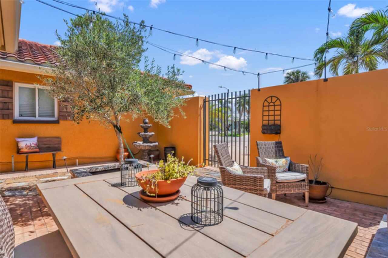 Under contract-accepting backup offers. Grandfathered flood insurance (transferrable) that is only $2600 and Pre-storm FEMA Appraisal in-hand for $1.2m! Nestled within the exclusive Carlouel neighborhood, sits a very well appointed 3 Bedroom / 2 Bathroom home, that is just a short walk to the tranquil and soft-sandy shores of the North Beach via private gated access! This beautiful home underwent extensive renovations from 2021-2022. Some of the key features, that set it apart from most other homes in the neighborhood: block construction, open-concept floorpan w/vaulted ceilings, secluded courtyard in the front, quaint backyard that can accommodate a spa (pre-wired) or a small plunge pool (see renderings), clay tile roof, additional pet/beach shower in Laundry Rm, epoxied two car garage with large driveway, fully operational HVAC (located on roof/attic), electric and plumbing (including natural gas for WH and stove), along with saltless water treatment service. Home suffered damage in Helene, was professionally remediated, and is now awaiting your finishing touches! Walk to Carlouel Yacht Club!
