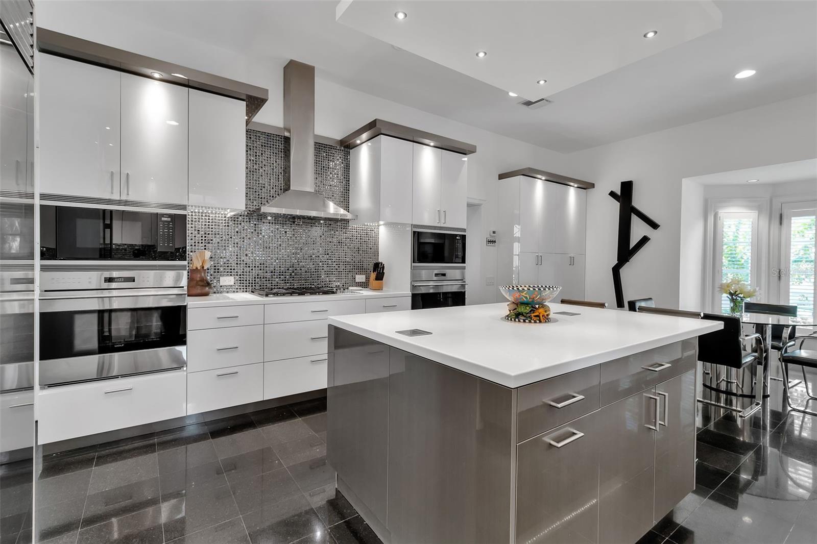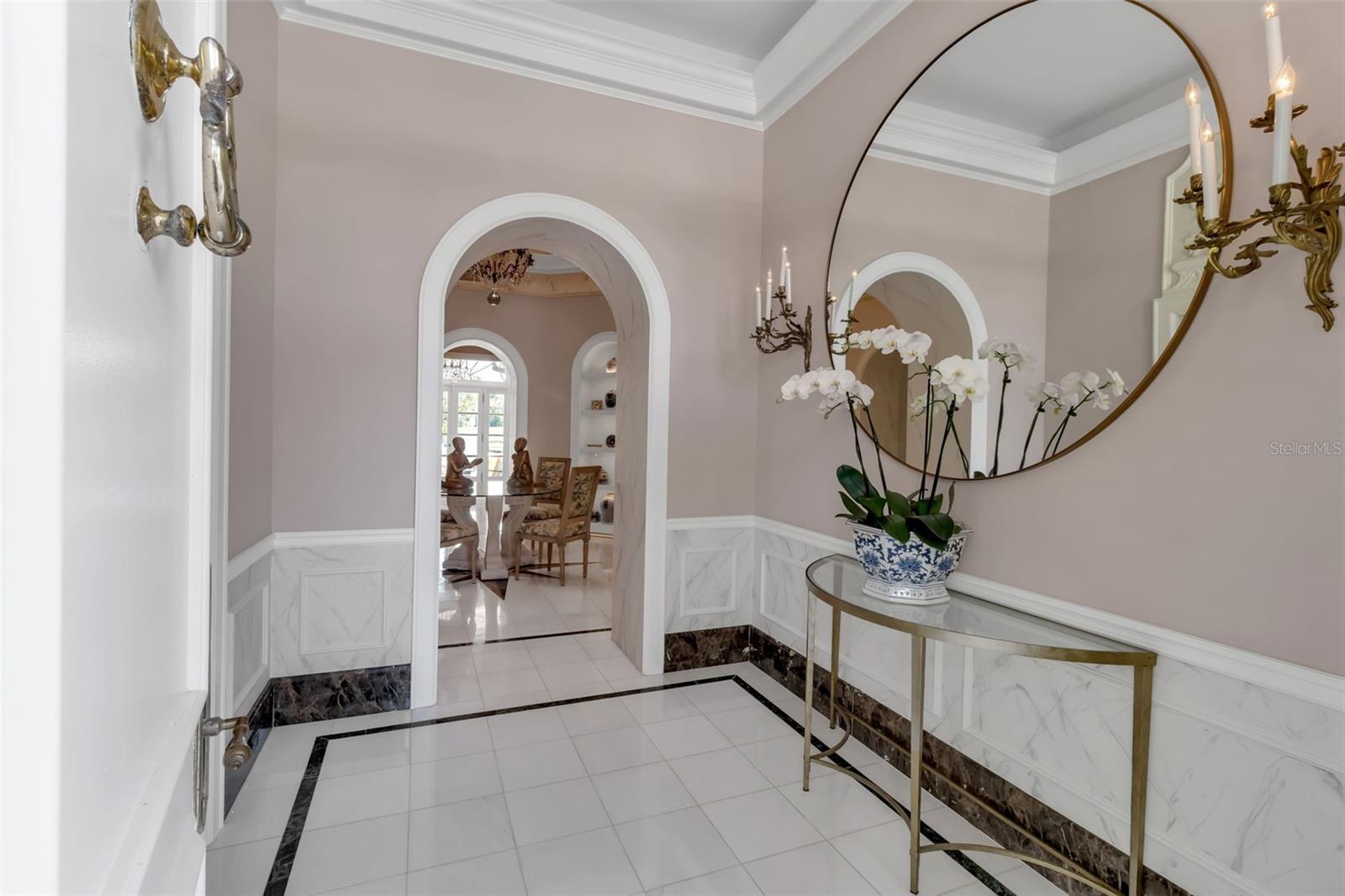 A grand estate where timeless design meets lakefront tranquility, 101 Osprey Point Drive offers refined living within the private gates of The Oaks Bayside. Designed by architect Bo MacEwen, this one-of-a-kind home spans more than 5, 000 square feet, all cleverly positioned on nearly an acre with 150 feet of lakefront. Situated on two of the community’s most desirable lots, the residence balances architectural distinction with thoughtful updates that ensure comfort and livability. An oversized circular drive paved in granite tile leads to a stately double-door entrance. Inside, the foyer sets the tone with soaring ceilings, hand-crafted moldings, chandeliers, and a white onyx floor with marble inserts. Spaces include an oversized living room with dual fireplaces, a crystal chandelier, and multiple sets of French doors opening to the lakefront patio. The dining room, anchored by another fireplace and framed by custom casings and built-in shelving, is ideal for grand entertaining. A domed ceiling sitting room with French doors to the patio adds an intimate space for cocktails or conversation, while the custom bar and wine room, with etched glass cabinetry, stone counters, and display shelving, enhances the home’s appeal for gatherings. The kitchen, completely remodeled in 2019, is a showcase of craftsmanship with UltraKraft® cabinetry, custom soffit lighting, Corian countertops, and a center island with breakfast bar. Luxury appliances include a Sub-Zero refrigerator, Wolf gas cooktop, wall oven, microwave, warming drawer, two KitchenAid dishwashers, and a Frigidaire wine fridge. A butler’s pantry provides additional storage, while the sunny breakfast nook overlooks lush gardens. Family and gathering rooms carry the same sense of scale, with dramatic fireplaces, intricate moldings, and detailed ceiling treatments that flow seamlessly for everyday living or large-scale entertaining. The primary suite is a true retreat with a spacious sitting area, custom closets, and a well-appointed bathroom that was newly remodeled in 2025 with spa-inspired finishes. Three guest suites, each with updated full baths (2021 and 2025), provide privacy and comfort. One is a suite with a bathroom near the laundry room, which offers flexibility for live-in staff or extra accommodation. Outdoors, the home embraces its setting with an open pool, expansive deck, and cabana surrounded by manicured hedges and mature landscaping. The views are equally compelling, with mature gardens and community reflecting pond in the front and sweeping lake vistas in the back. Additional highlights include a three-car garage, refinished hardwood floors (2020), and a new Daikin 5-ton AC system installed in 2022. Ownership at The Oaks Club brings an unmatched lifestyle, with two championship golf courses, tennis and pickleball courts, croquet, a fitness center and spa, three on-site restaurants, and a community dock on Little Sarasota Bay. Elegant yet inviting, 101 Osprey Point Drive stands as a rare opportunity to enjoy lakefront living with resort-style amenities in one of Sarasota’s most established private enclaves.