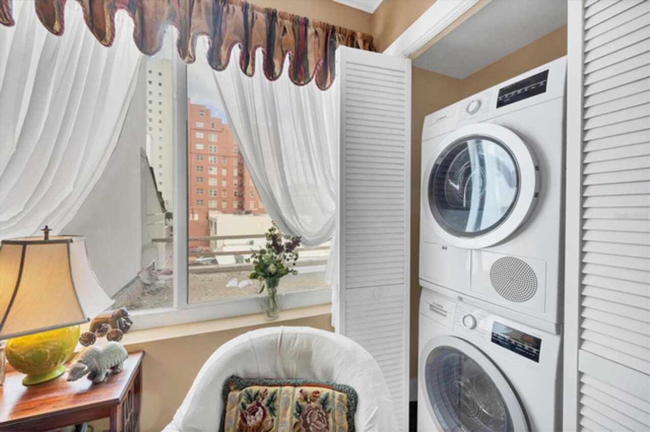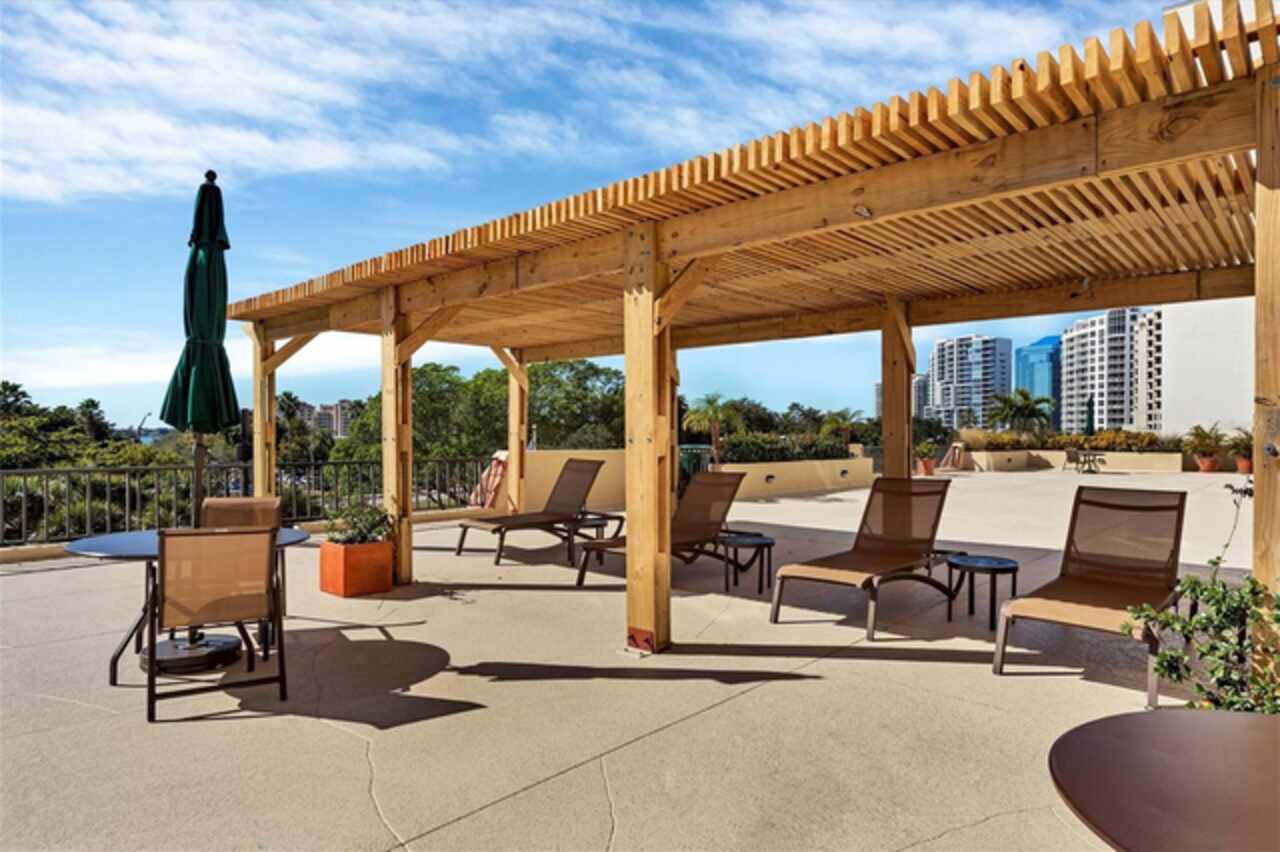 Live the Luxury Lifestyle Without the Million-Dollar Price Tag! Step into this beautifully updated downtown Sarasota residence, where comfort meets value. Enjoy all the perks of nearby high-end condos at a fraction of the cost! This stunning unit features hurricane-impact windows and sliders, upgraded electrical and plumbing, an updated kitchen, and an open-concept layout. The tile flooring throughout and in-unit washer/dryer add both style and convenience. What truly sets this home apart? A rare, oversized private terrace (7.5’ x 32’)! Whether you're craving an urban garden retreat, an alfresco dining haven, or a stylish space for entertaining, this outdoor oasis delivers. Prime Downtown Sarasota Location: Nestled in the coveted Palm Ave/Gulfstream district, this home places you in the center of everything. Stroll to Sarasota Bay, Bayfront Park, a marina with a tiki bar, Marina Jack’s restaurants, theaters, art galleries, fine dining, the farmers market, and Whole Foods—all just steps away. Unparalleled Amenities & Views: Positioned on the exclusive amenities level, this city-view residence allows you to indulge in breathtaking Sarasota Bay sunsets from your doorstep. Enjoy direct access to the heated pool, club room, BBQ area, and state-of-the-art fitness/yoga rooms. A Secure Investment in a Premier Building: The 101 Condominium (formerly Dolphin Towers) has undergone extensive structural upgrades and major exterior renovation, ensuring it remains one of Sarasota’s finest residences from its era. Plus, the building has successfully passed its Milestone inspections, providing peace of mind for years to come. Don’t miss this exceptional opportunity to own a slice of Sarasota’s vibrant downtown lifestyle. Schedule your private showing today!