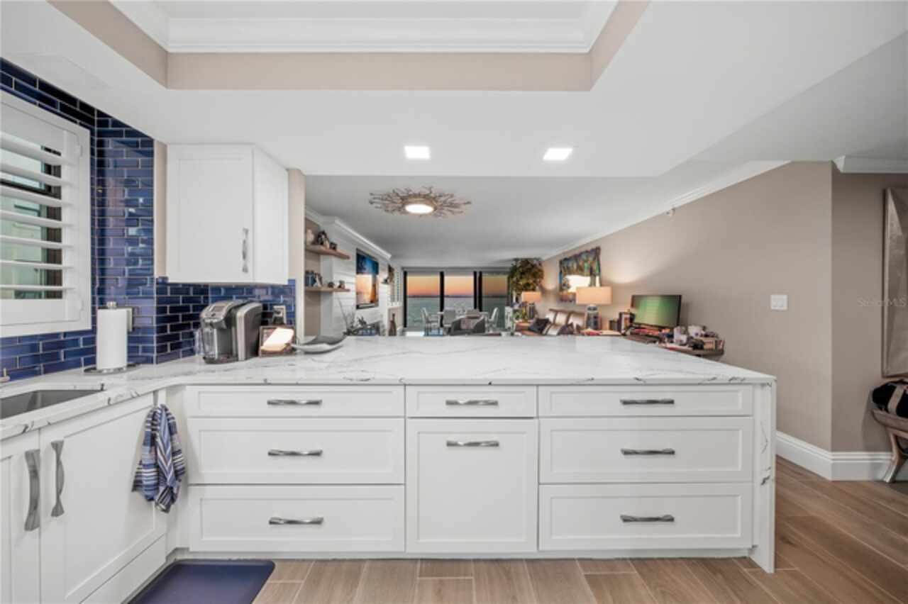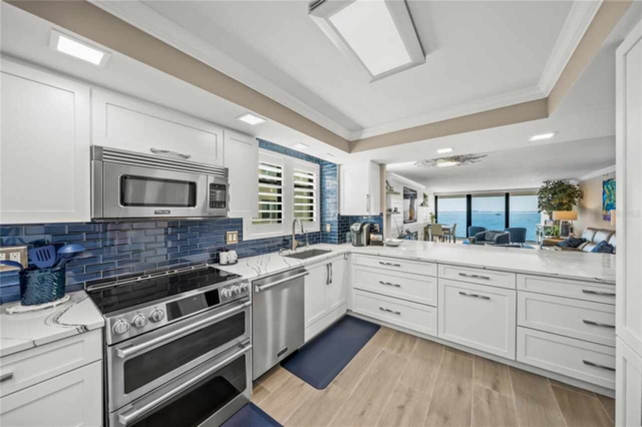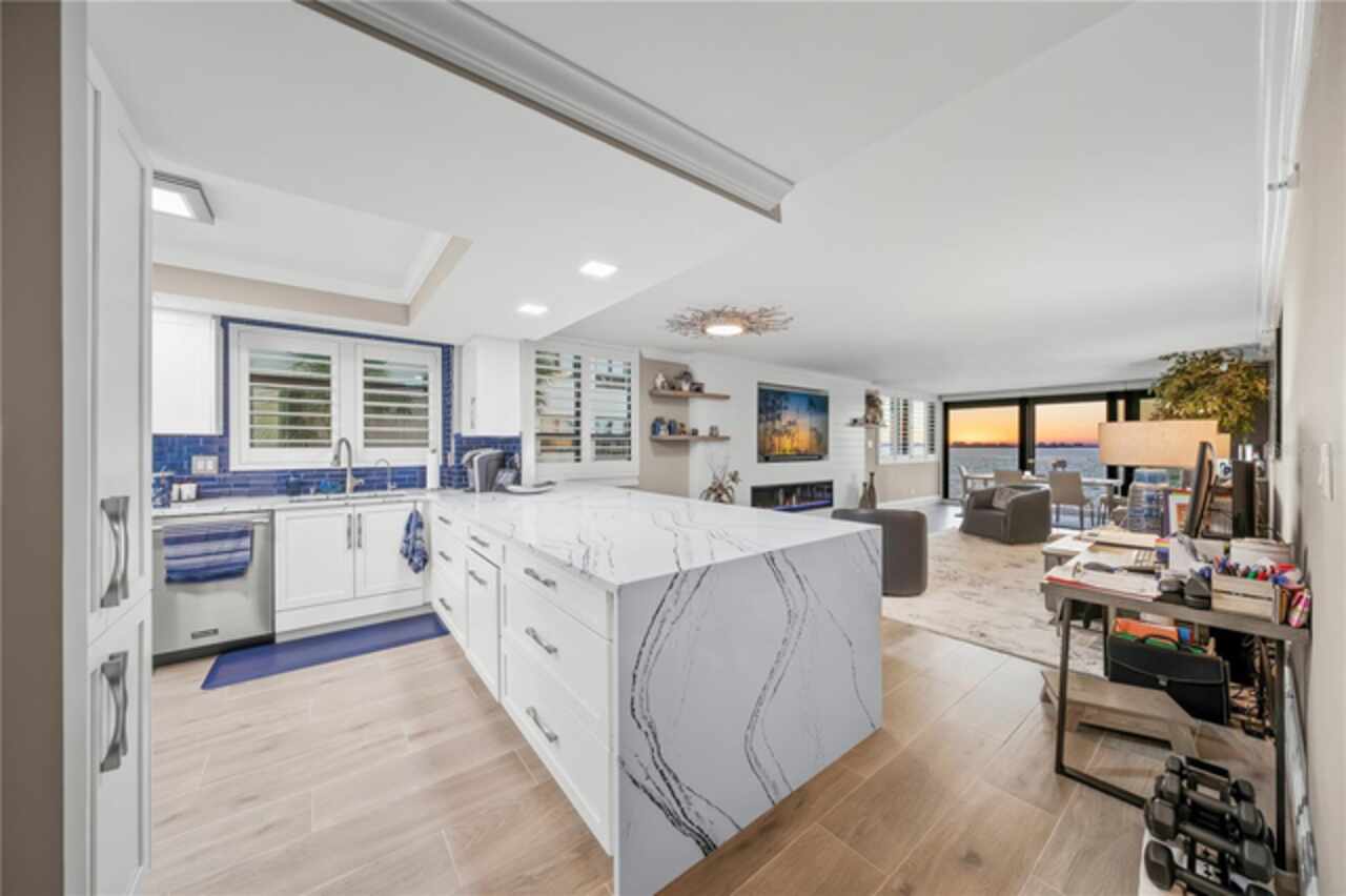 Welcome to Lawrence Pointe, a coveted boutique community of just three low-rise buildings, offering only 42 exclusive residences, perfectly situated near downtown Sarasota and nestled along the pristine Sarasota Bay. This unit has been completely reimagined with luxurious updates that elevate both comfort and style, creating an exceptional retreat for daily living. A few noteworthy enhancements include brand-new Viking appliances—refrigerator, dishwasher, microwave as well as a stunning Café range. The kitchen now boasts a newly enlarged island with a striking Cambria quartz waterfall edge, complemented by Cambria quartz countertops in both the family room and bathrooms. Every detail was meticulously designed for sophistication and ease with no item being overlooked. Relish in the mesmerizing evening sunsets from your private vantage point or take a leisurely stroll to downtown Sarasota, where world-class dining, shopping, and entertainment are all at your fingertips. Additionally, there is a private gate providing access to the grounds of the Ritz-Carlton creating nearly effortless access to Jack-Dusty. Not to be overlooked is the proximity to St. Armands circle and Lido beach. This is truly a rare opportunity to combine the experience of waterfront views while enjoying the benefits of city life.
