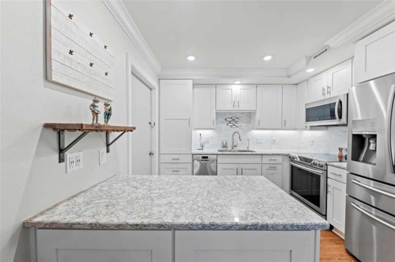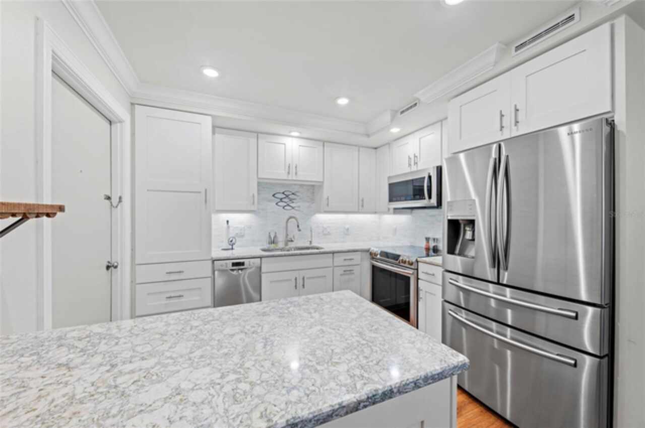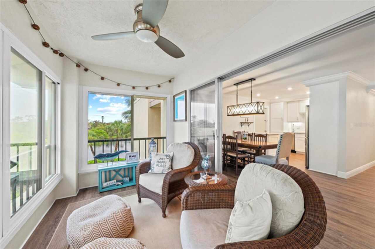 Experience the pinnacle of coastal luxury in this completely updated, FULLY FURNISHED end-unit condo located in the relaxing community of Whispering Sands on Siesta Key. Overlooking a tranquil lagoon and offering private beachfront access, this 2-bedroom, 2-bath residence seamlessly blends modern comfort with serene island living. This rare end-unit offers extra privacy and natural light, along with two fully enclosed balconies that expand your living space and showcase beautiful views of the lagoon and the gulf. Updates include recessed lighting, updated light fixtures, luxury vinyl flooring throughout, fully redesigned kitchen with granite counter tops and stainless steel appliances, and both bathrooms have been thoughtfully redesigned with sleek, modern finishes that elevate the overall feel of the home. Every detail has been considered, from the open-concept layout to the quality craftsmanship found in every corner of this completely renovated unit. Set in one of Siesta Key’s most desirable communities, residents enjoy exclusive amenities including 800 feet of private beach on the Gulf, two heated pools, fitness rooms, clubhouses, and scenic walking paths around the lagoon. Just a short stroll away, Siesta Key Village offers dining, shopping, and vibrant island culture. Whether you're seeking a year-round residence or the perfect vacation getaway, this home offers the ultimate combination of luxury, location, and laid-back Gulf Coast lifestyle.