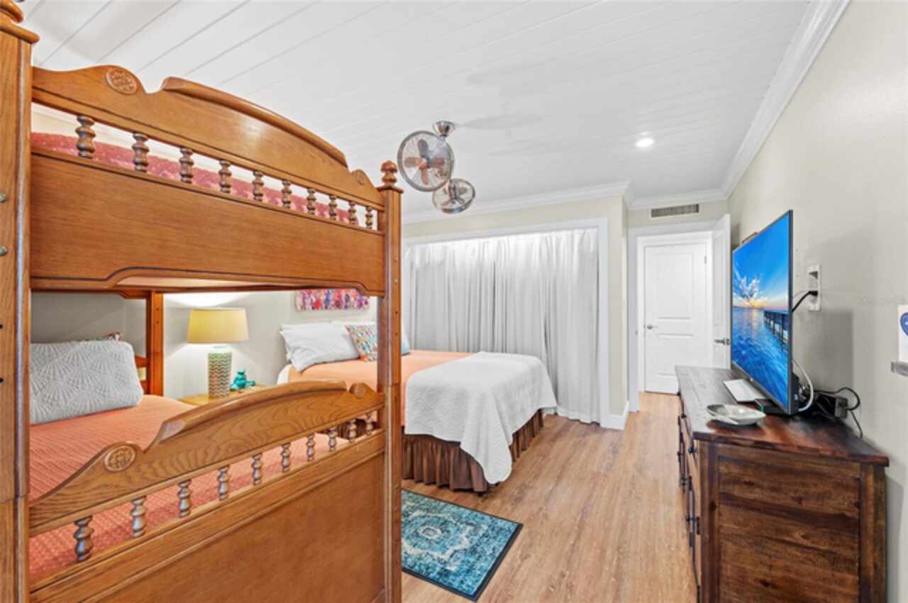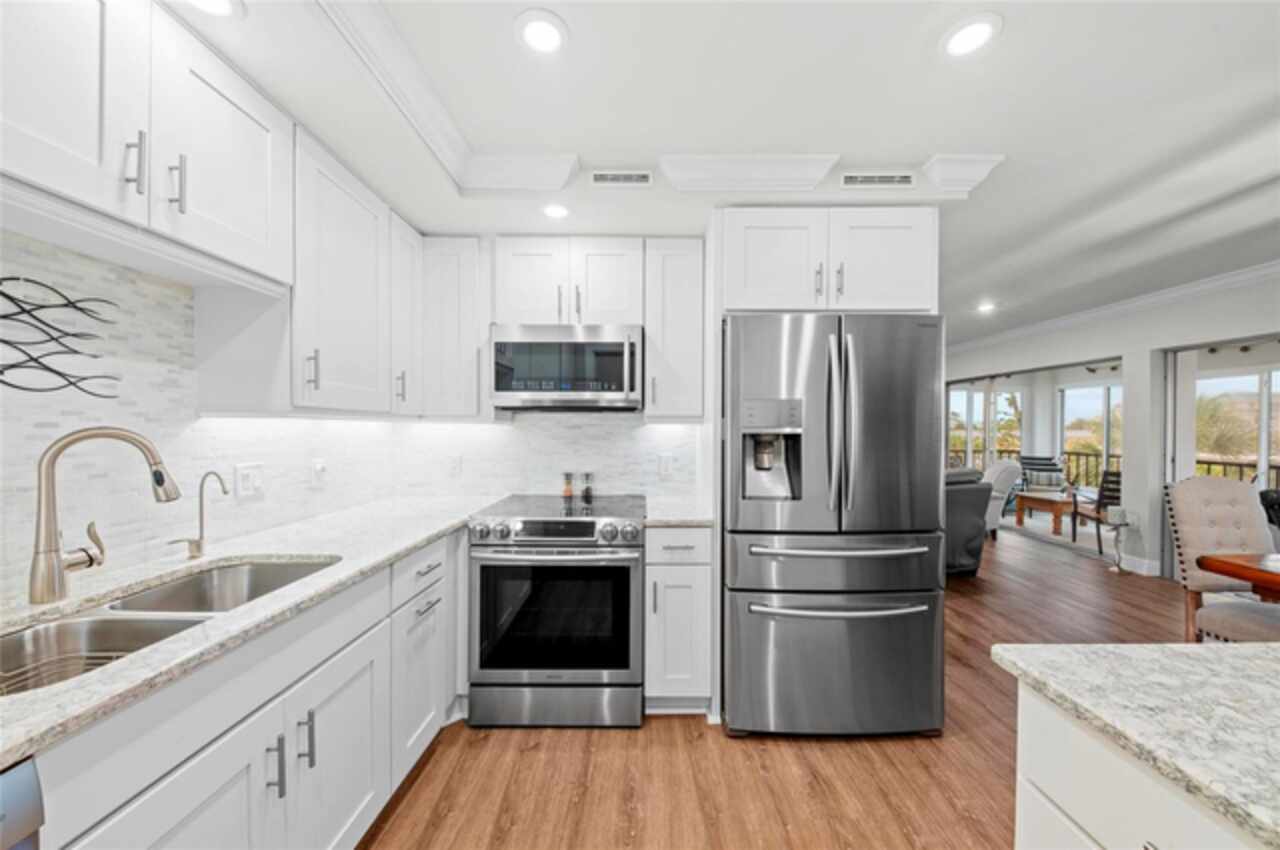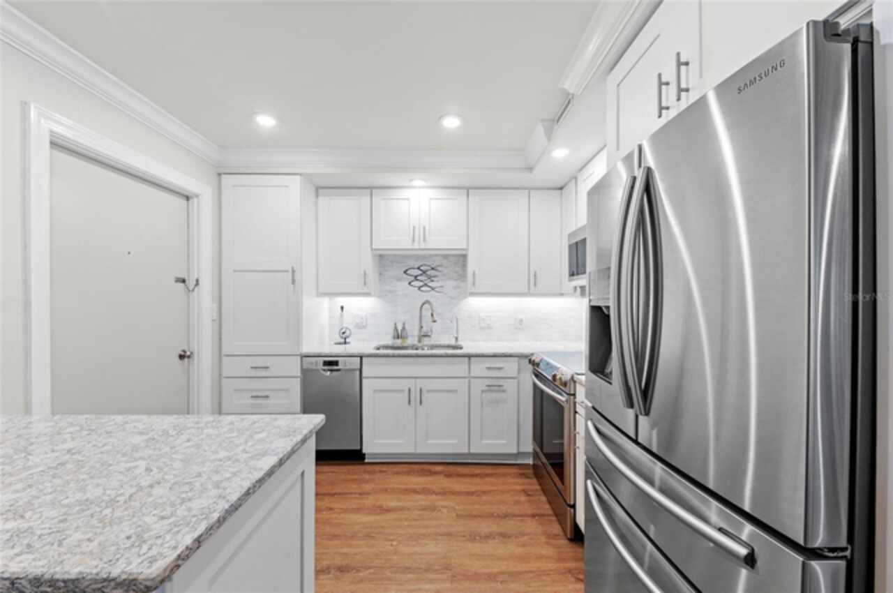 Experience the pinnacle of coastal luxury in this completely updated, FULLY FURNISHED end-unit condo located in the relaxing community of Whispering Sands on Siesta Key. Overlooking a tranquil lagoon and offering private beachfront access, this 2-bedroom, 2-bath residence seamlessly blends modern comfort with serene island living. This rare end-unit offers extra privacy and natural light, along with two fully enclosed balconies that expand your living space and showcase beautiful views of the lagoon and the gulf. Updates include recessed lighting, updated light fixtures, luxury vinyl flooring throughout, fully redesigned kitchen with granite counter tops and stainless steel appliances, and both bathrooms have been thoughtfully redesigned with sleek, modern finishes that elevate the overall feel of the home. Every detail has been considered, from the open-concept layout to the quality craftsmanship found in every corner of this completely renovated unit. Set in one of Siesta Key’s most desirable communities, residents enjoy exclusive amenities including 800 feet of private beach on the Gulf, two heated pools, fitness rooms, clubhouses, and scenic walking paths around the lagoon. Just a short stroll away, Siesta Key Village offers dining, shopping, and vibrant island culture. Whether you're seeking a year-round residence or the perfect vacation getaway, this home offers the ultimate combination of luxury, location, and laid-back Gulf Coast lifestyle.