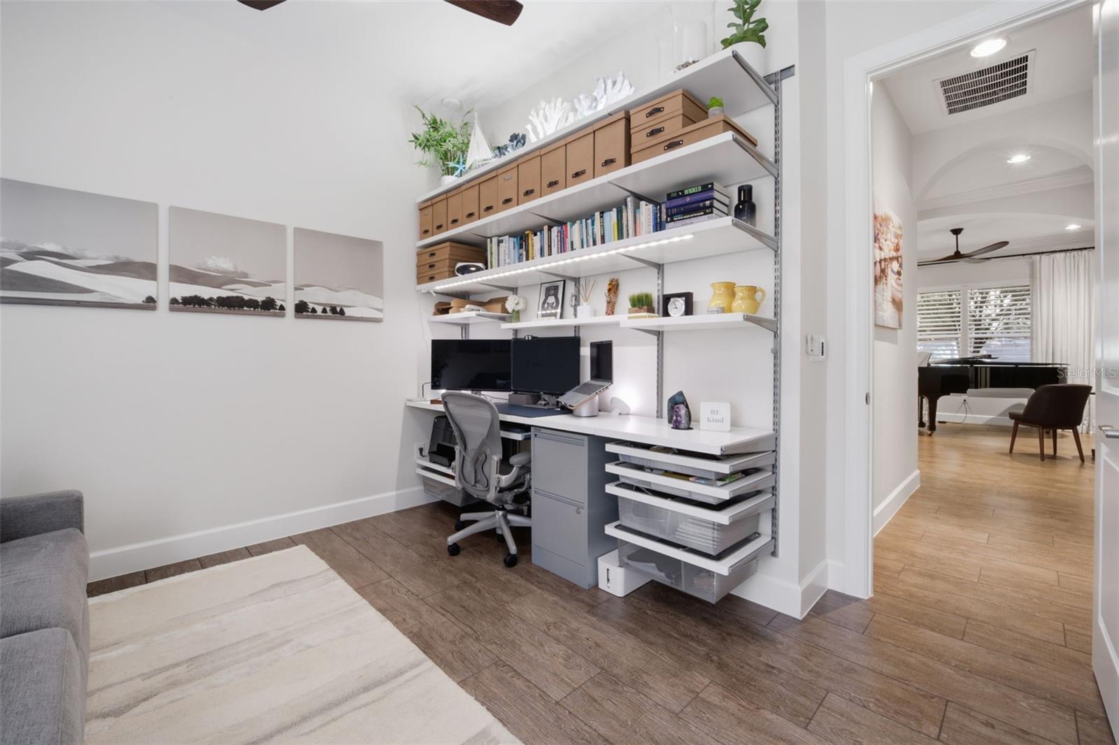 Built-in Features, Ceiling Fans(s), Crown Molding, High Ceilings, Living Room/Dining Room Combo, Open Floorplan, Solid Surface Counters, Solid Wood Cabinets, Split Bedroom, Thermostat, Tray Ceiling(s), Walk-In Closet(s), Window Treatments