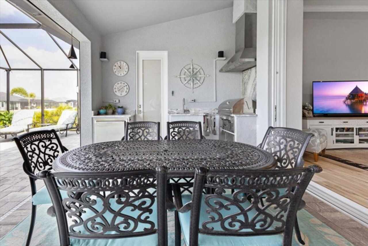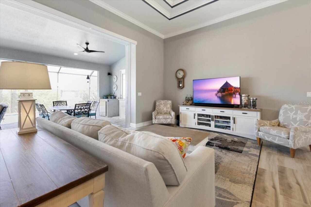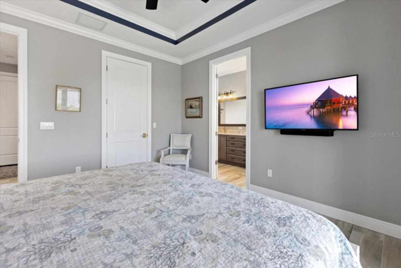 Waterfront Dream Home – Custom-Built “M Merlot” Welcome to the M Merlot, a one-of-a-kind, custom-built Florida waterfront dream home. Perfectly positioned with rear western exposure, this stunning residence offers breathtaking sunsets over the Gulf-accessible Long Branch Waterway. Every detail has been carefully curated to exceed even the highest expectations. Exterior Features Elegant paver driveway, oversized 3-car garage (25 ft deep) with epoxy flooring, Irrigation system sourced directly from the canal, Full gutter system for optimal drainage, Screened-in, heated PebbleTec® saltwater pool with outdoor shower, Concrete 10ft high seawall for long-term waterfront protection Fenced-in rear yard, brand new dock and boat lift currently being installed. Expansive lanai featuring: Brand-new summer kitchen with built-in grill, sink, refrigerator, and hood vent Mounted flat-screen TV for outdoor entertaining, Electric hurricane screens for both storm protection and shade, Screened-in front porch for additional outdoor living, Interior Highlights: Walking through the grand entry you will immediately notice the 10-ft high x 15-ft wide hurricane-rated glass door sliders (with Remote-controlled electric shades both in the living room and primary suite) with Unobstructed panoramic views of the pool and waterway, all windows with wooden blinds, a Chef’s Kitchen with Double ovens GE Profile stainless steel appliances (5 burner induction cooktop) Two-tone custom cabinetry Exotic waterfall granite countertops Spacious & Elegant Living Durable porcelain tile flooring throughout 12-ft ceilings in main living areas with double step-ups to 13-ft tray ceilings in the great room, 9.4-ft ceilings in all bedrooms for added comfort and space Spa-Inspired Bathrooms Master bathroom includes: Dual shower systems with rain heads (all bath room have elegant rain head showers) and Upscale finishes for a spa-like experience Thoughtful Storage & Utility Custom wood shelving in all closets Spacious laundry room with matching custom wood shelving LG washer and dryer, Handpicked luxury light fixtures and paddle fans throughout. Spray foam insulation in the attic to improve energy efficiency This home is more than just a place to live — it's a lifestyle. Whether you're relaxing in your saltwater pool, entertaining on the lanai, or heading out on the boat from your private dock, the M Merlot is the perfect coastal retreat.