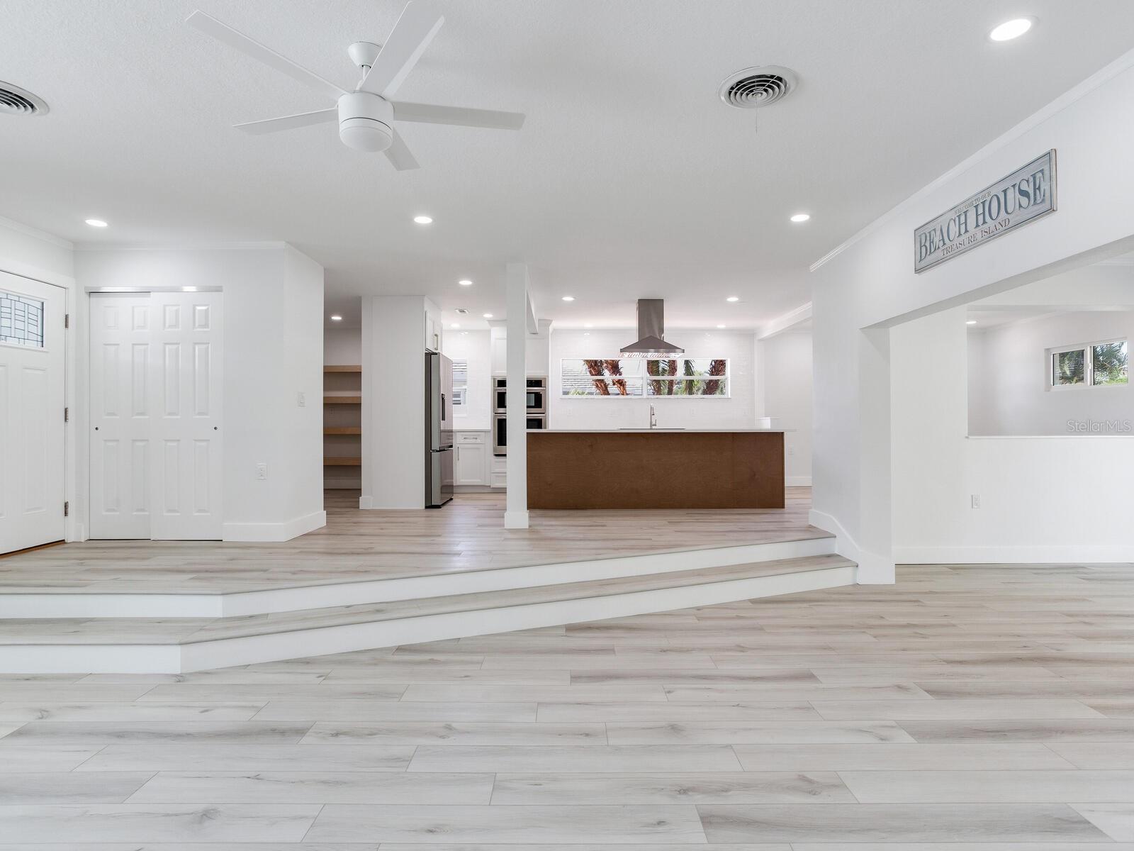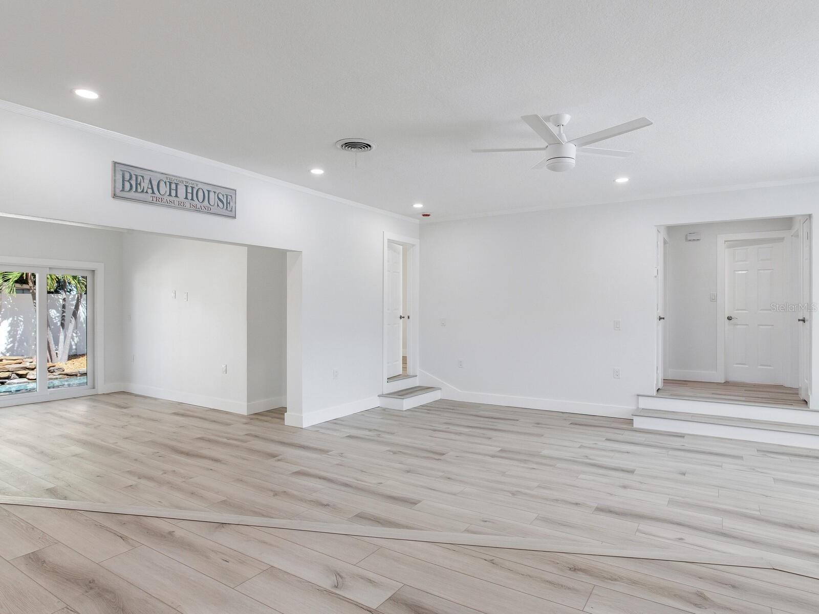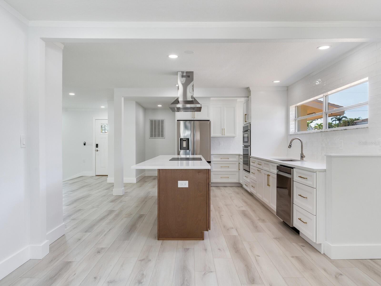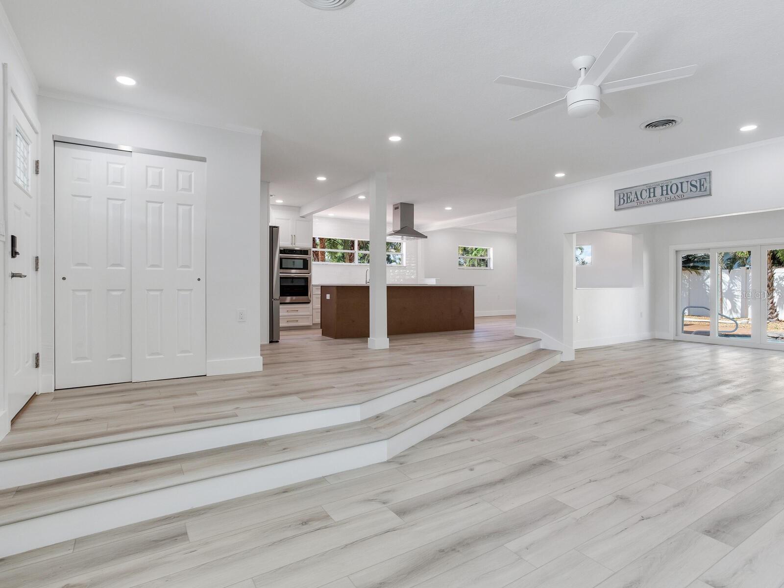 Beautifully remodeled Coastal meets Mid Century Modern - 3 bedroom, 2 bath, 1800+ sqft. Pool home. This amazing Treasure Island beach home is turnkey and waiting for you. Located in the Paradise Island neighborhood. Completely mold remediated, and all permitted remodel is done. From the time you walk in, you will be in awe of this unique, amazing floor plan. The kitchen features a 10 ft center island with an induction cooktop and a professional hood overhead, a walk-in pantry, and quartz countertops. All new Samsung appliances are under factory warranties. The large Master suite has patio doors that view and provide access to the pool and hot tub, as well as a spacious en-suite. 2 other bedrooms are located perfectly for privacy, with the 2nd bathroom in between. The living room and bonus room make for a large open floor plan with a perfect view of the pool and low-maintenance backyard. Out front has a large front yard with an oversized driveway and a 2-car garage. Within walking or bikeride to the beautiful beach, shopping, coffee shops, and bonus...this is a Golfcart community, so bring your street-legal cart with you! Don't miss out on this wonderful home.