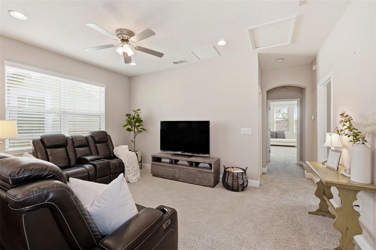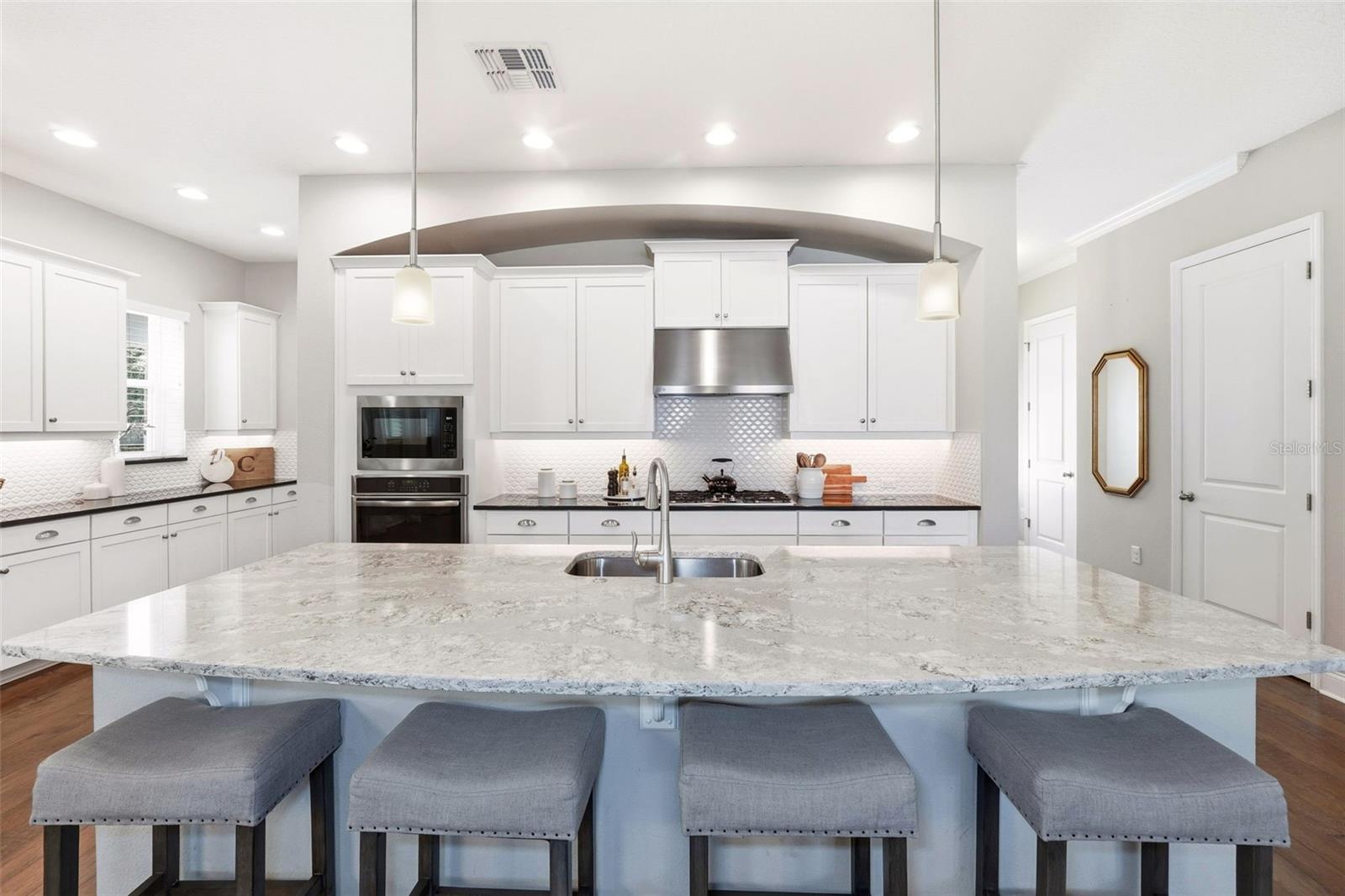 Stunning upgraded model home with an oversized kitchen in highly desirable Oakland Park. The Sunset Model—a neighborhood favorite known for its award-winning design—is no longer available to build, making this a rare opportunity to own a customized, seldom-available gem! This home features 3 bedrooms + an additional flex room with French doors, 2.5 baths, a fenced yard, oversized quartz island with granite kitchen counters, custom lighting, wood flooring, gas stove, tile backsplash, a loft, inviting front porch, and a fully finished backyard complete with a fire pit, pavers, and bistro lights—perfect for entertaining. The yard also has room for a pool should a future owner wish to remove the pavers. Upon entering, you'll find a storage closet to the left, a beautifully designed half bath, and to the right, a versatile room with French doors ideal for an office, guest suite, or hobby space. The kitchen, living, and dining areas are open, bright, and seamlessly connected. This kitchen is one of the largest production-built kitchens in the community, offering extended counters, abundant cabinetry, and a walk-in pantry. Additional storage can be found under the stairs—ideal for seasonal décor and toys. Upstairs features 3 bedrooms, 2 full baths, a loft, and the laundry room. The primary suite is generously sized, easily accommodating a king bed, nightstands, dressers, and a cozy sitting area. The ensuite bath includes dual sinks, an oversized shower with rain-shower head, and a spacious walk-in closet. The oversized 2.5 car garage provides ample space for 2 cars plus a golf cart, and the extended driveway allows for extra parking. Take your golf cart into historic Downtown Winter Garden to enjoy the Crooked Can Brewery, theater, rooftop and outdoor dining, boutique shopping, splash pad, Farmer’s Market, and more. For outdoor enthusiasts, the 22-mile West Orange Trail connects directly to the community. Oakland Park is known for its vibrant lifestyle, offering golf cart parades, 5Ks, book club gatherings, poker nights, and neighborhood events throughout the year. This waterfront, golf-cart-approved community features parks, playgrounds, lakes, two pools (including a resort-style option), clubhouse, dog park, walking trails, and breathtaking sunset views. Conveniently located near major highways, restaurants, shops, golf courses, and theme parks. Don’t miss this rare opportunity to own the Sunset Model—available once again, but only for a moment.