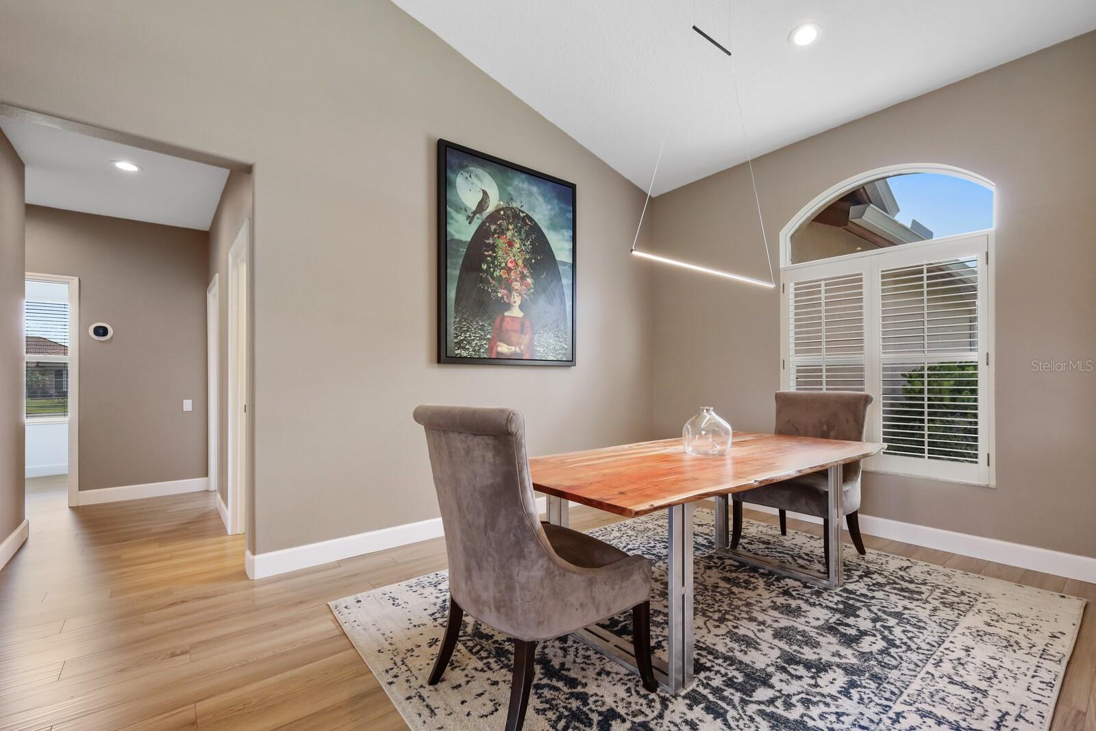 Eat-in Kitchen, High Ceilings, Living Room/Dining Room Combo, Primary Bedroom Main Floor, Solid Surface Counters, Vaulted Ceiling(s), Walk-In Closet(s)