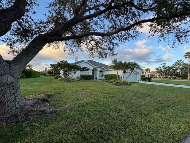 Welcome to this lovingly maintained, move-in ready 3 bedroom, 3 bath single-level home with den and double garage, perfectly situated on a spacious corner lot overlooking a serene pond in highly sought-after River Club. This home offers peace of mind with a brand-new roof, freshly painted exterior, new lanai screening (all Sept. 2025), and numerous interior upgrades including new flooring, paint, countertops, sinks, and faucets throughout. The kitchen is equipped with newer appliances, all replaced since 2020, and the hot water heater was upgraded to a tankless system in 2021, adding efficiency and convenience. The open-concept layout is filled with natural light, featuring cathedral ceilings, a bright breakfast nook, and a split floor plan for privacy. The primary suite boasts tall ceilings, two closets, and sliders to the backyard. Its spa-style bathroom includes a walk-in shower, soaking tub, dual sinks, and private water closet. Two additional bedrooms provide comfort for family or guests, with one offering its own en-suite bath. This property does not currently have a pool, perfect for buyers seeking low-maintenance living or those who want to design their own custom pool rather than manage an older one. Enjoy Florida living with plenty of wildlife nearby—deer, herons, and even the occasional alligator can be spotted in the neighborhood’s natural greenbelt. Located in the highly sought-after River Club community with low HOA fees and no CDDs, this home is within close proximity to Lakewood Ranch Main Street and LWR Medical Center, and just a short drive to UTC Mall, Waterside, golf courses, Sarasota Polo Club, and I-75. World-class beaches are only 20–25 minutes away. Don’t miss your chance to call this beautiful River Club home your own!