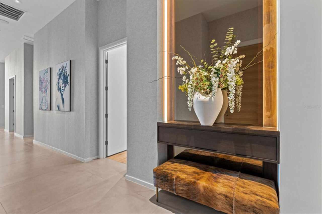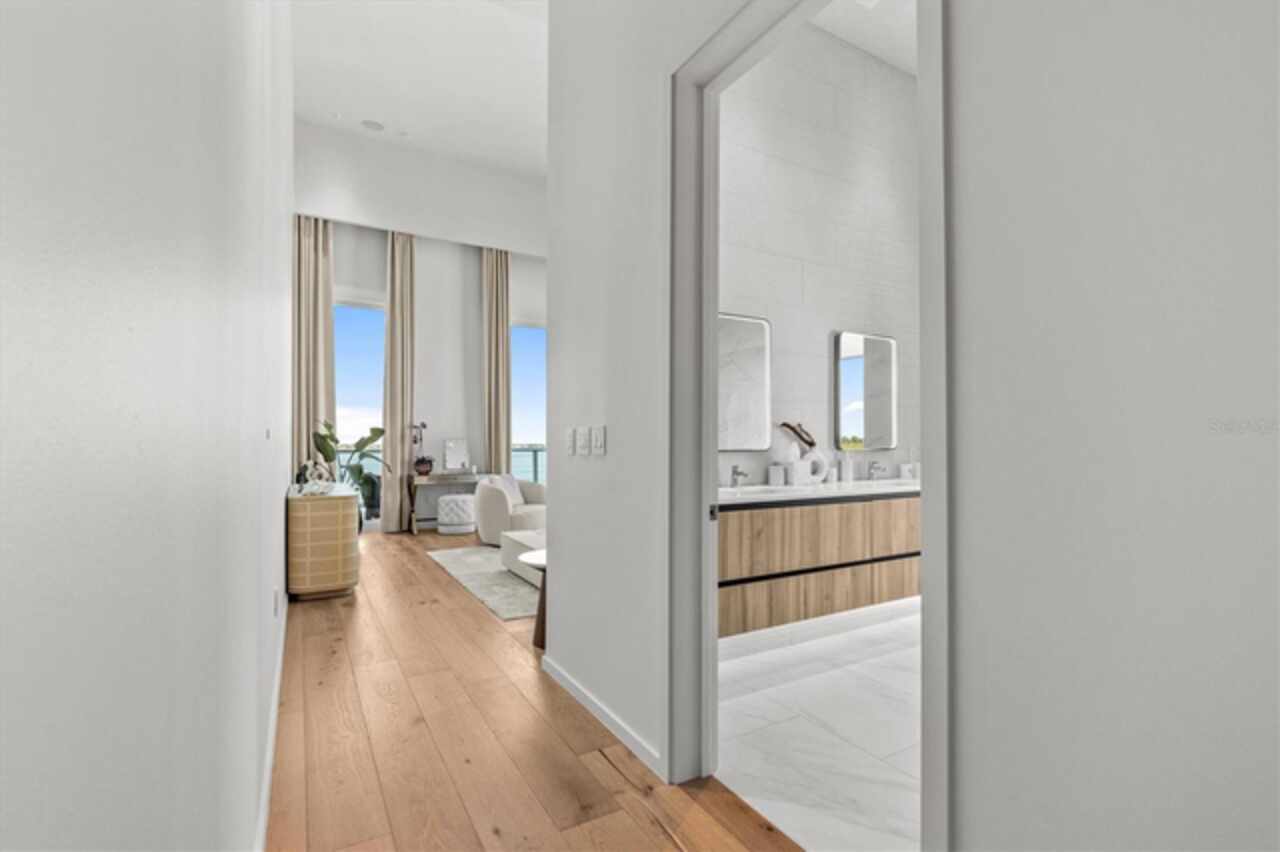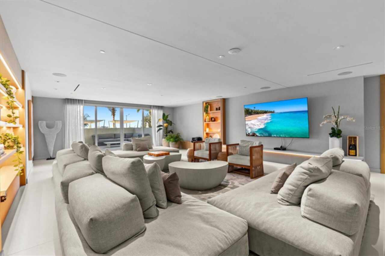 One or more photo(s) has been virtually staged. Recent independent appraisal (Aug 2025) supports $4.8M value. Sky Penthouse 703 at Serena by the Sea delivers rare 16’+ ceilings, floor-to-ceiling glass, and unobstructed Gulf-to-Intracoastal panoramas. Retractable sliders open to colossal west facing terrace with no adjacent balconies for true privacy. 3 ensuite bedrooms + office + theater room. Italian kitchen with waterfall stone and full Gaggenau suite appliances. Whole-home automation wiring, integrated audio, and electric blackout shades. Spa-style primary bath with soaking tub; large laundry; climate-controlled storage; three parking spaces next to the private elevator lobby. 23, 000± SQFT resident-only amenities: zero-edge heated saltwater pool with cabanas, outdoor kitchen & sunset fire pit; modern fitness center; European-style spa with sauna, cold-plunge bucket, massage suites, jacuzzi & relaxation lounge. Exclusive access to concierge wellness services via a preferred provider. Marina in progress with priority slip rights for PH703. Furniture and electronics do not convey.