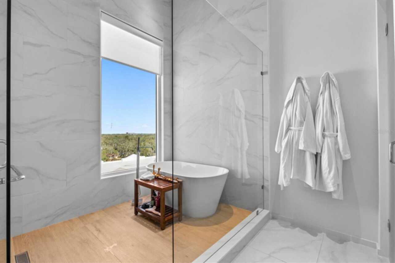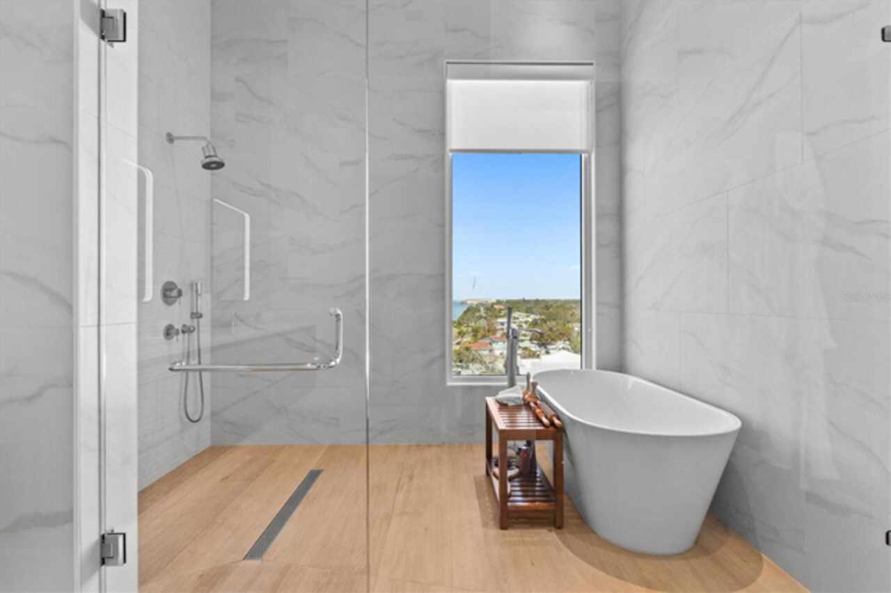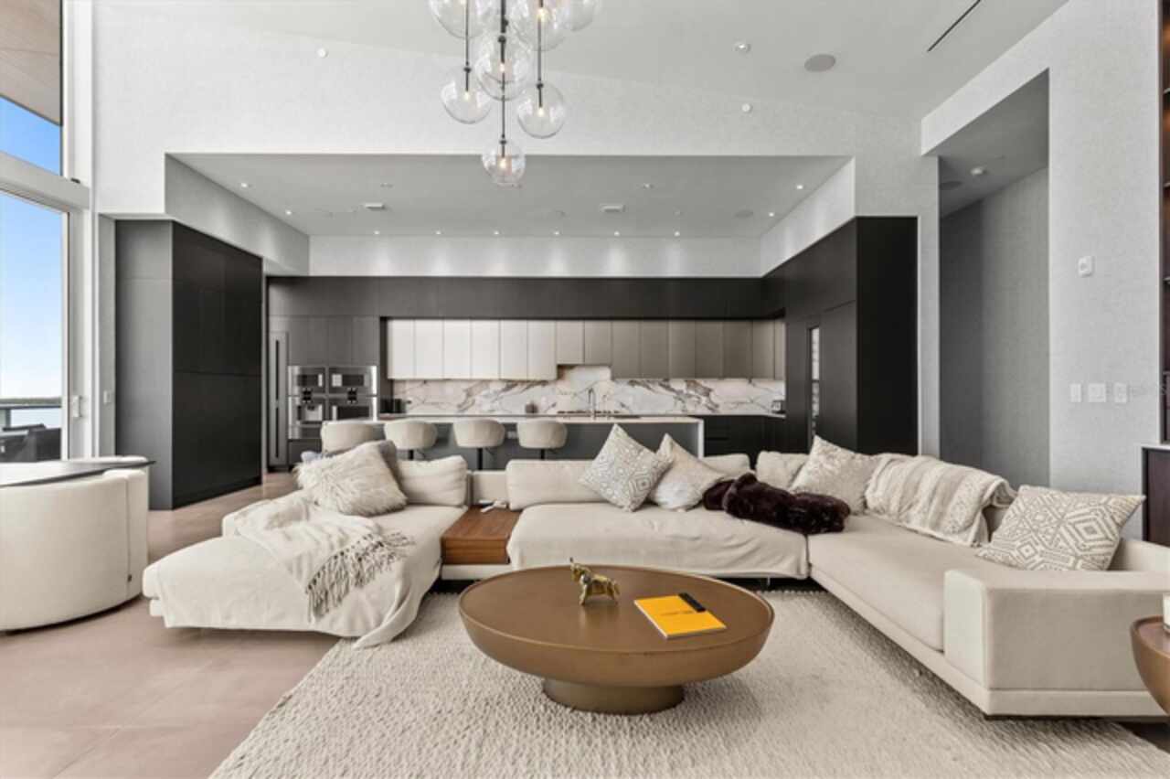 One or more photo(s) has been virtually staged. Recent independent appraisal (Aug 2025) supports $4.8M value. Sky Penthouse 703 at Serena by the Sea delivers rare 16’+ ceilings, floor-to-ceiling glass, and unobstructed Gulf-to-Intracoastal panoramas. Retractable sliders open to colossal west facing terrace with no adjacent balconies for true privacy. 3 ensuite bedrooms + office + theater room. Italian kitchen with waterfall stone and full Gaggenau suite appliances. Whole-home automation wiring, integrated audio, and electric blackout shades. Spa-style primary bath with soaking tub; large laundry; climate-controlled storage; three parking spaces next to the private elevator lobby. 23, 000± SQFT resident-only amenities: zero-edge heated saltwater pool with cabanas, outdoor kitchen & sunset fire pit; modern fitness center; European-style spa with sauna, cold-plunge bucket, massage suites, jacuzzi & relaxation lounge. Exclusive access to concierge wellness services via a preferred provider. Marina in progress with priority slip rights for PH703. Furniture and electronics do not convey.