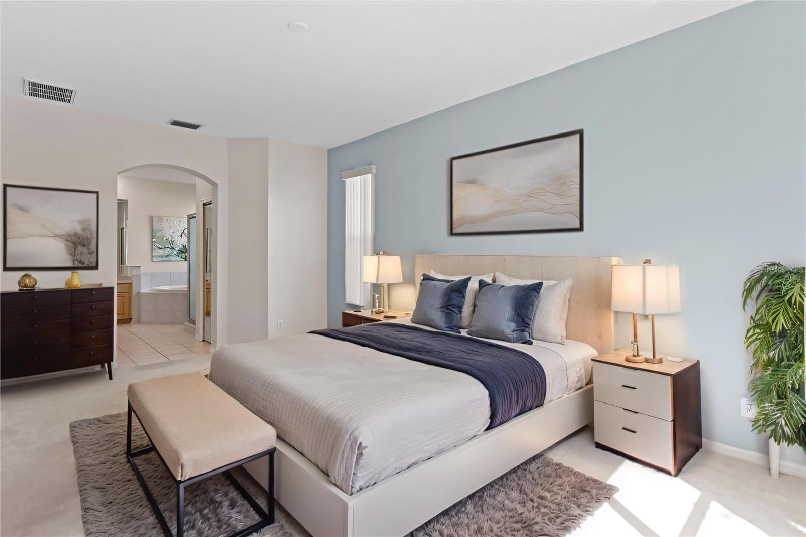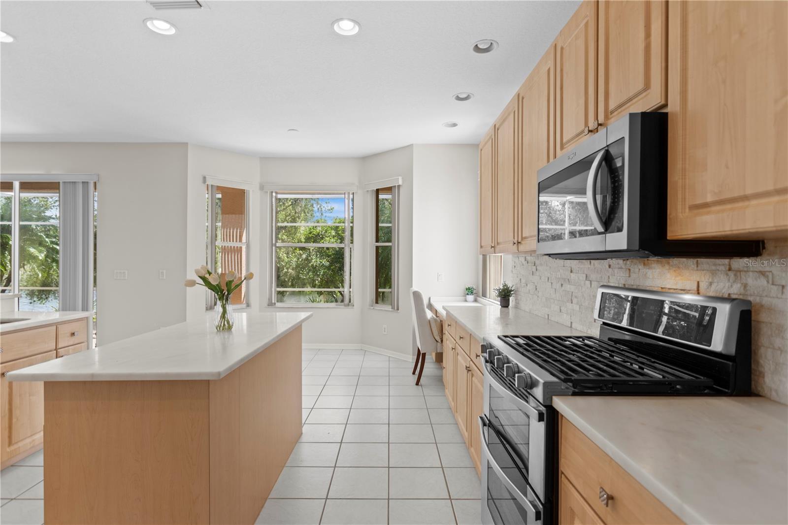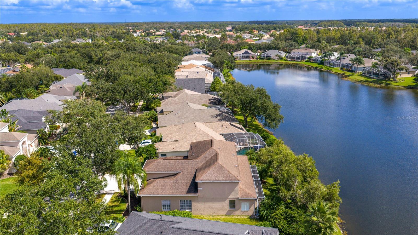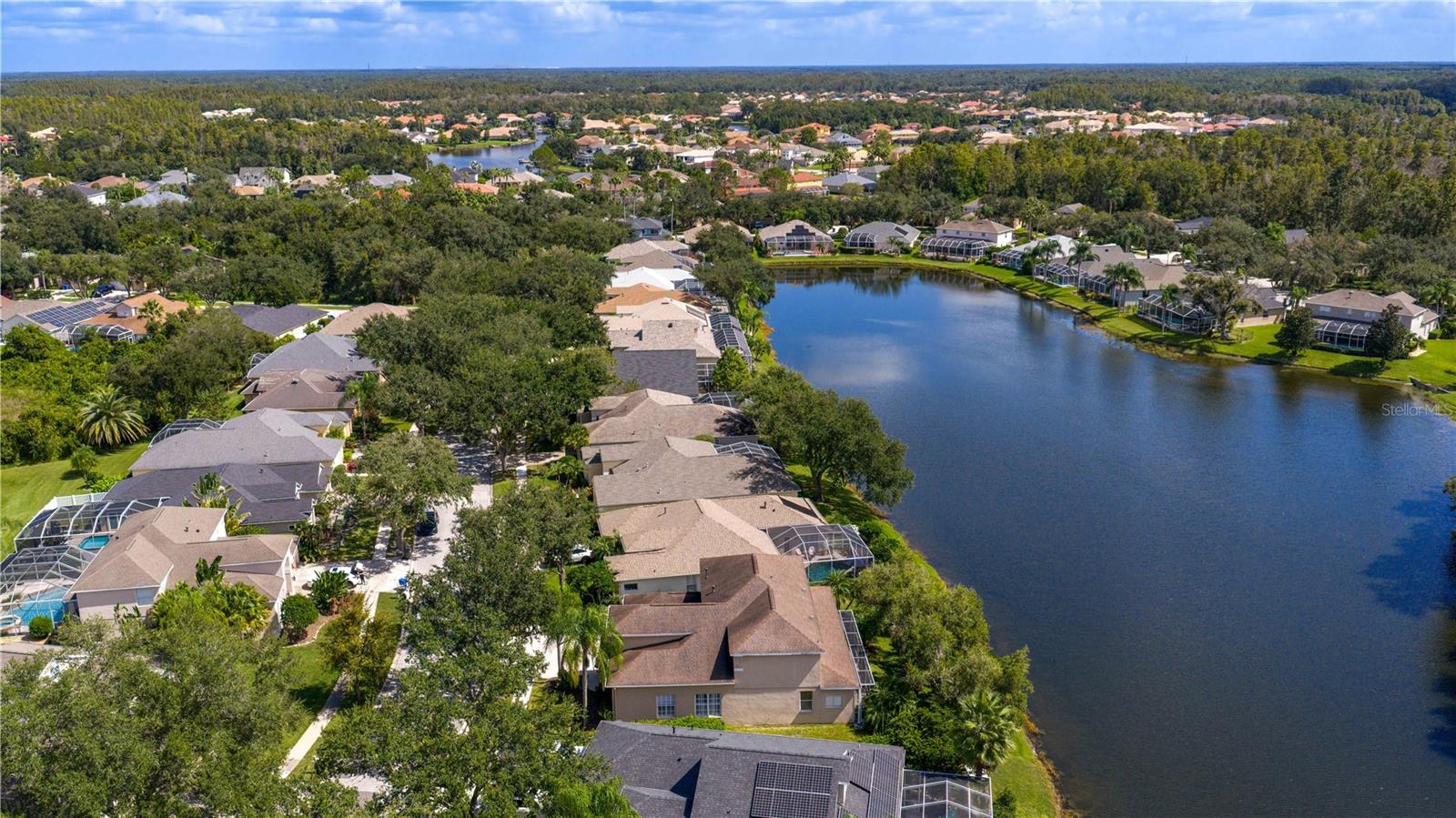 Executive home in Quail’s Landing of Arbor Greene, perfectly positioned on a waterfront lot and offering one of the best values in the community. At over 3, 300 sq. ft., this is the best-priced large home in Arbor Greene. A rare find with dual master suites—one upstairs and one downstairs—this layout is ideal for multi-generational living or flexible use. The home features 4 bedrooms, 4 bathrooms, A downstairs flex room/office, an upstairs office, and a 3-car garage. Spacious living areas filled with natural light and water views. The dramatic two-story foyer opens to a formal living room with plantation shutters and custom millwork, leading into the open-concept main living space with 12-foot sliding doors to the screened lanai. Outside, enjoy an outdoor kitchen, spa, and pavered patio overlooking the water. The kitchen is finished with solid marble countertops, a center island, double ovens, 5-burner gas range, and stainless-steel appliances. Off the kitchen, you will find a large flex room that can be used as a downstairs office, play room, or private reading room. The first-floor primary suite has floor-to-ceiling windows with water views, a soaking tub, walk-in shower, dual vanities, and large closet. Upstairs includes a second master suite with vaulted ceiling and a spacious ensuite, plus two additional bedrooms and a home office with built-in desk and cabinetry. Roof replaced in 2016. Arbor Greene offers 24/7 manned gates, clubhouse with event space, fitness center, Olympic-sized and resort-style pools, tennis courts, pickleball courts, playgrounds, and miles of walking paths and nature trails. Conveniently located minutes from I-75 with quick access to shopping, restaurants, hospitals, USF, and downtown Tampa. This home offers both space and value in one of New Tampa’s most established communities.