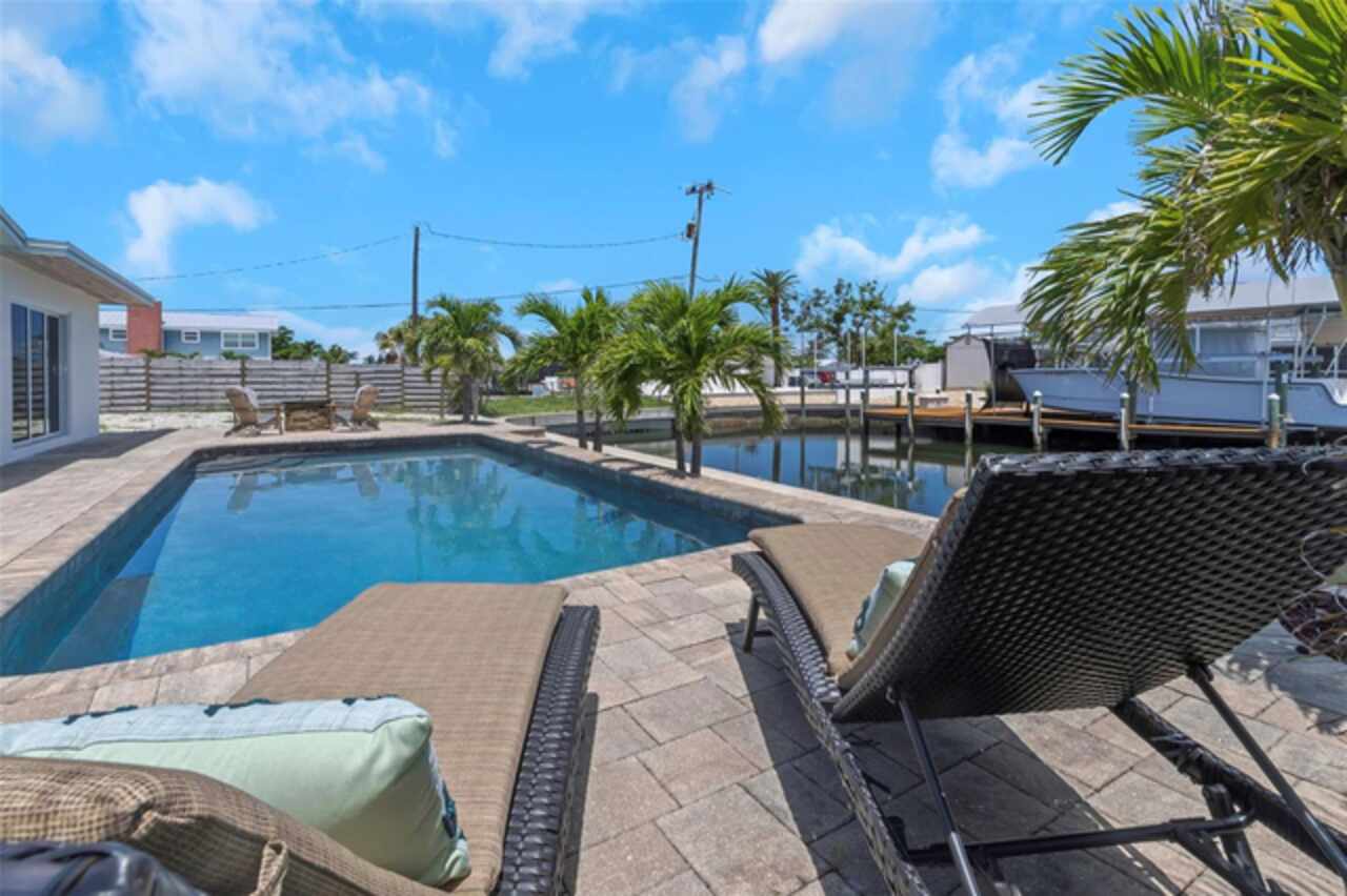 RARE CORNER LOT WITH OVER 115’ OF CANAL FRONTAGE! RECENTLY APPRAISED OVER ASKING! Deep-Water Access • Fully Remodeled • Luxury Waterfront Living This beautifully remodeled 3-bedroom, 2-bath deep-water pool home offers exceptional Florida waterfront living on a premium corner canal lot with more than 115 feet of frontage. Located in a highly sought-after waterfront community with no required HOA, the property blends luxury, comfort, and everyday livability. Buyer incentives are available—please inquire for details. Inside, the home features a bright, open split floor plan enhanced by modern finishes and thoughtful upgrades throughout. The chef-inspired kitchen showcases Gallery stainless steel appliances, custom cabinetry, quartz countertops, and a layout designed for both entertaining and practical daily use. The primary suite is a true retreat, offering a spa-like ensuite with dual rainfall showers, a freestanding soaking tub, and designer tile accents that create a calming, high-end atmosphere. Outdoor living is just as impressive. Step out to your private pool and paver patio, surrounded by wide canal views and room to relax or entertain. A brand-new dock and 16, 000 lb boat lift are currently being installed, providing direct deep-water access for boating, fishing, or enjoying sunset cruises right from your backyard—adding tremendous lifestyle and investment value. Recent major updates include a newer roof, a new HVAC system, a new water heater, a new electrical panel, and upgraded energy-efficient windows, giving you peace of mind and making this property truly turnkey. Everything has been completed for you—simply bring your boat and move in. Whether you’re searching for a full-time waterfront residence or a seasonal escape, this home delivers the perfect blend of luxury, functionality, and the Florida coastal lifestyle. (AVAILABLE FURNISHED) Buyer and Buyer’s Agent to verify all facts, measurements, and representations. Information deemed reliable but not guaranteed.