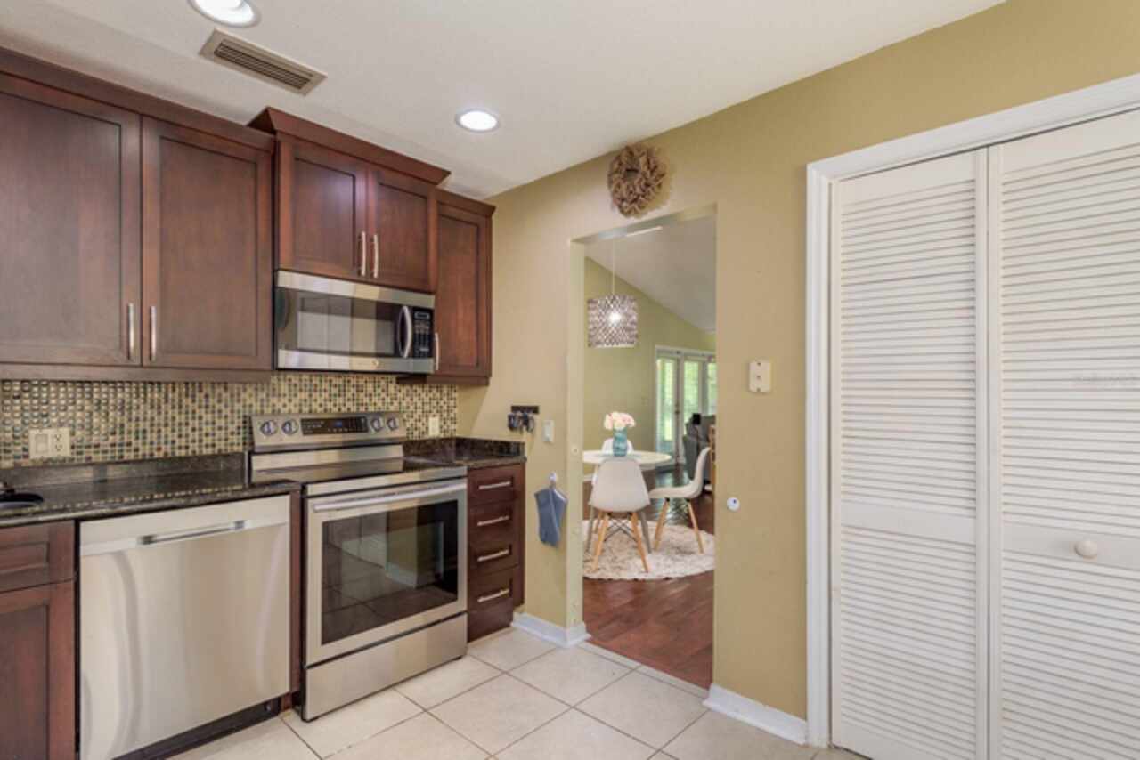 Welcome home to 1023 Lake Avoca Place, nestled in the coveted Pointe Alexis community where you can feel like you live in a resort every day. This three-bedroom, two-bathroom home with a two-car garage is beautifully updated. You will love the vaulted ceilings and all of the natural light in the living room. The kitchen has been updated to include granite countertops, modern cabinets and stainless-steel appliances. The primary bedroom is on one side of the home and connects to a beautiful, four-season sunroom. There is also a primary en-suite with dual vanities, tile shower and brand-new flooring. The primary walk-in closet has a built-in organizing system. The other two bedrooms are on the opposite side of the home, and they share an updated guest bathroom with a bathtub/shower combination. French doors from the living room lead to a covered, screened back porch. The backyard includes mature landscaping that provides privacy. At Pointe Alexis, the HOA manages your lawn care which gives you more time to enjoy the community pool, gym, clubhouse, tennis, pickleball and much more. The HOA fee includes the recreational amenities, grounds maintenance, water, sewer, trash removal, Internet and basic cable TV. Pointe Alexis is three and a half miles from the Sponge Docks and just two miles from Gulf beaches. Schedule your showing today to see this beautiful home and community.