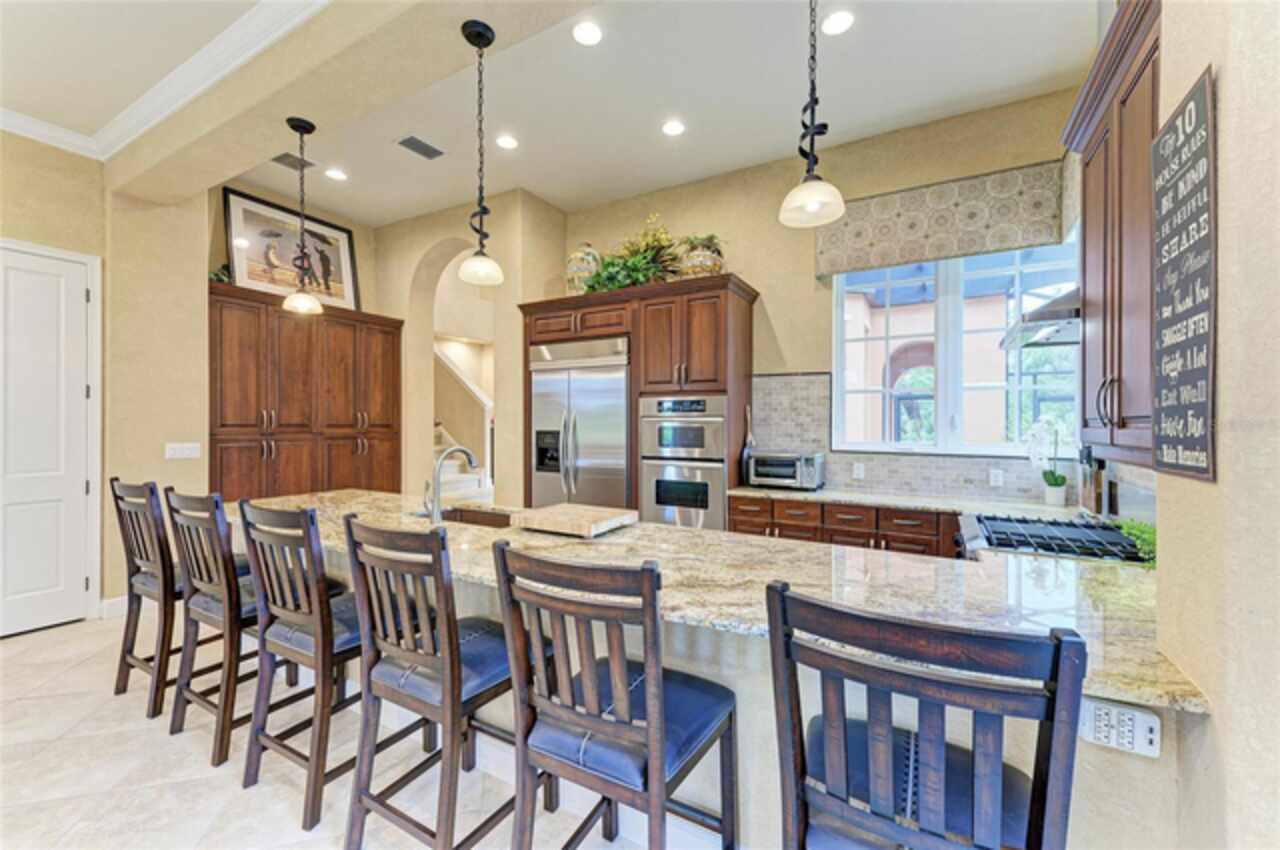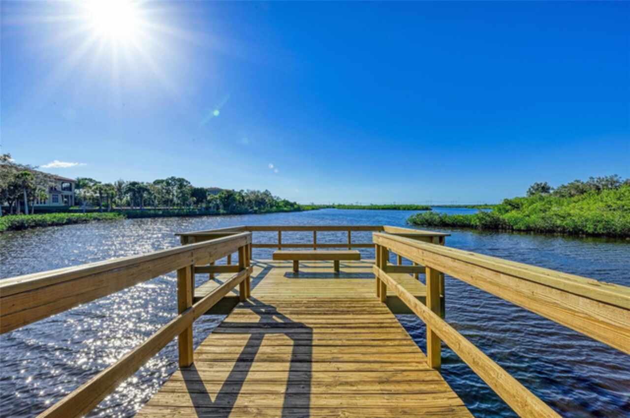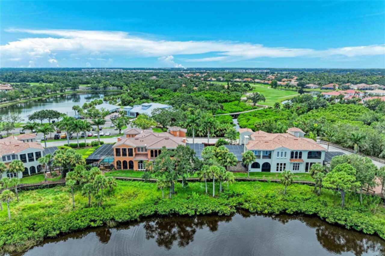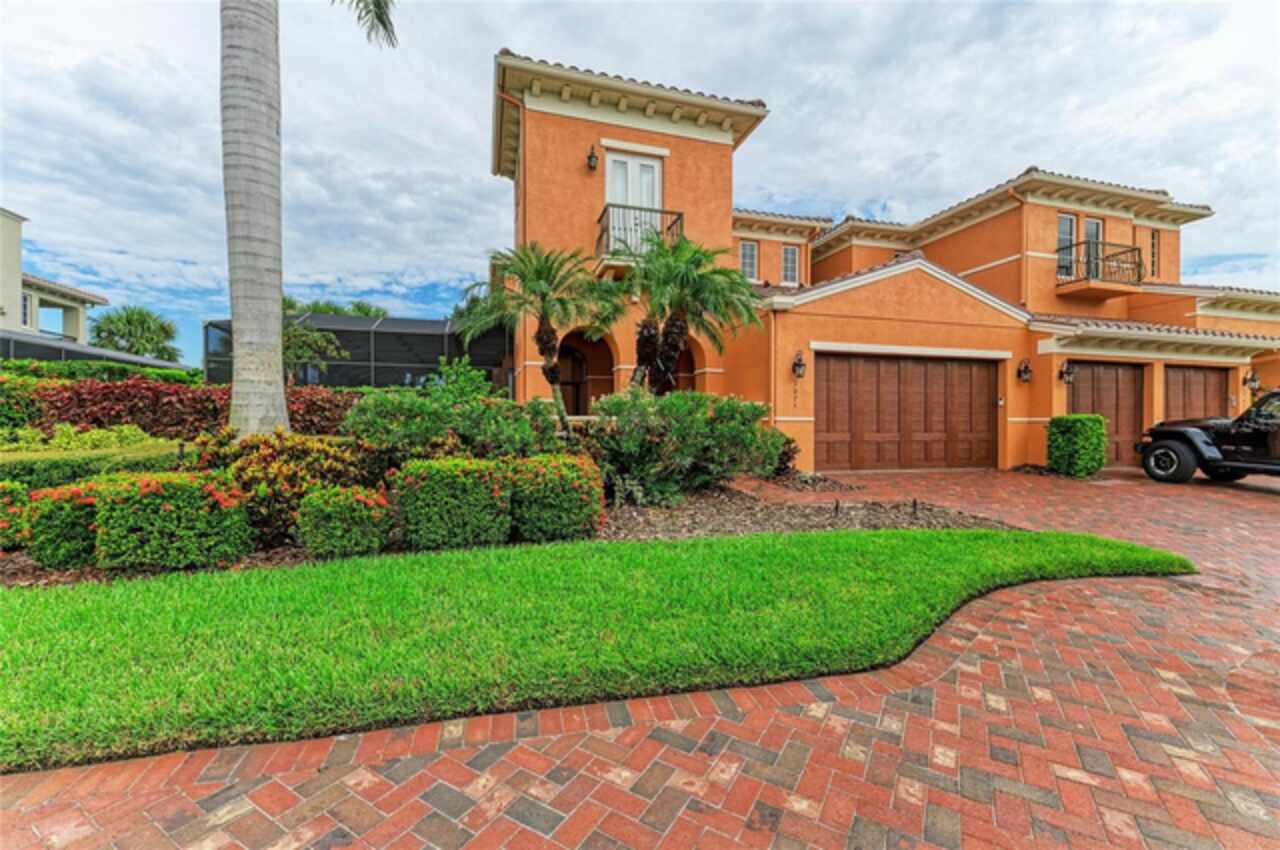 Florida luxury riverfront living in the gated community of Waterlefe Golf & River Club. This Mediterranean coastal-style villa/townhouse is located on the Manatee River with spectacular panoramic water views. This spacious two-story home offers 3, 240 square feet of living for a perfect blend of comfort, style, and functionality, with four bedrooms, four-and-a-half baths, separated living and dining rooms, beautiful high coffered and tray ceilings, hurricane-rated impact windows, remote-controlled window shades, crown molding, central vacuum, in-wall pest system, built-in ceiling speakers, screened-in heated swimming pool and jacuzzi, outside kitchen and bar and a second-story screened-in balcony with amazing views of the river. This home has extensive upgrades throughout and shows like a model. Ideal for entertaining, the impressive kitchen is outfitted for a culinary enthusiast with stainless steel appliances, including a gas stove with built-in vent, built-in wall oven, convection oven, wine refrigerator, travertine backsplash, granite counters, solid wood cabinets, breakfast bar, pantry and extra storage cabinetry. The kitchen is completely open to the living room for gatherings with family and friends, or to enjoy warming up next to the gas fireplace during the cooler months. The primary bedroom will take your breath away with the awe-inspiring water views and features direct access to the lanai overlooking the pool. The en-suite bath adds a touch of luxury with its thoughtful finishes, designed with a gorgeous soaking tub to take all your worries away, large walk-in shower with dual shower heads and dual custom-built walk-in closets. The large dining room provides plenty of space for dinner parties for your friends and family. The laundry room offers a front-load washer and dryer, utility sink and an abundance of extra storage cabinets. Upstairs, the additional three bedrooms all have en-suite baths and custom-built closets, allowing access to the screened balcony to enjoy stunning water views and beautiful sunsets. Walk through the glass doors to the outdoor screened paved area to enjoy the swimming pool, jacuzzi, outdoor kitchen with bar and grill for fun and entertainment. Within the screened pool area, you will find a covered patio with plenty of space to soak in the sun or to BBQ your favorite meal. You can also enjoy the serenity of a view to catch a glimpse of a variety of wildlife, beautiful birds and spectacular sunsets. Waterlefe Golf & River Club offers an active lifestyle with countless activities. Waterlefe River Club serves as the community hub, featuring a delightful restaurant, bar, fitness center, meeting rooms and a resort-style swimming pool with a tiki bar alongside the many comfortable lounge chairs. Get to know your neighbors at a variety of social events, from fitness classes to card games and book clubs to social events. You will find nature trails for walking, biking, boating, kayaking and fishing. Waterlefe offers an optional membership for a boat slip to the community marina for boating enthusiasts. Optional golf club memberships at an award-winning, semi-private, championship golf course. The association fee includes cable, internet, exterior maintenance including roof replacement (replaced in 2024), water, sewer, trash, painting and yard maintenance. Wake up each day knowing you are living your dream in this true Florida waterfront paradise.