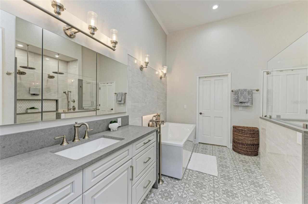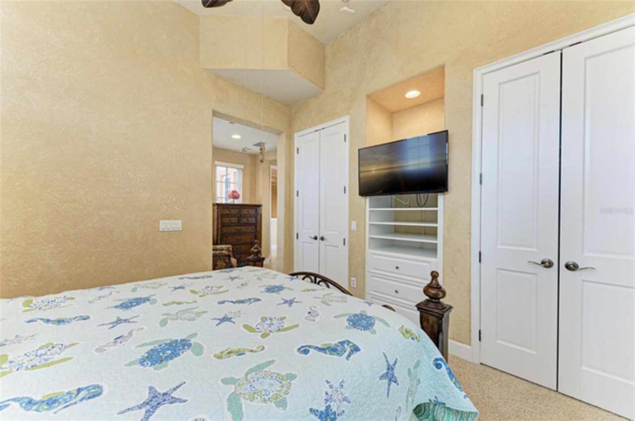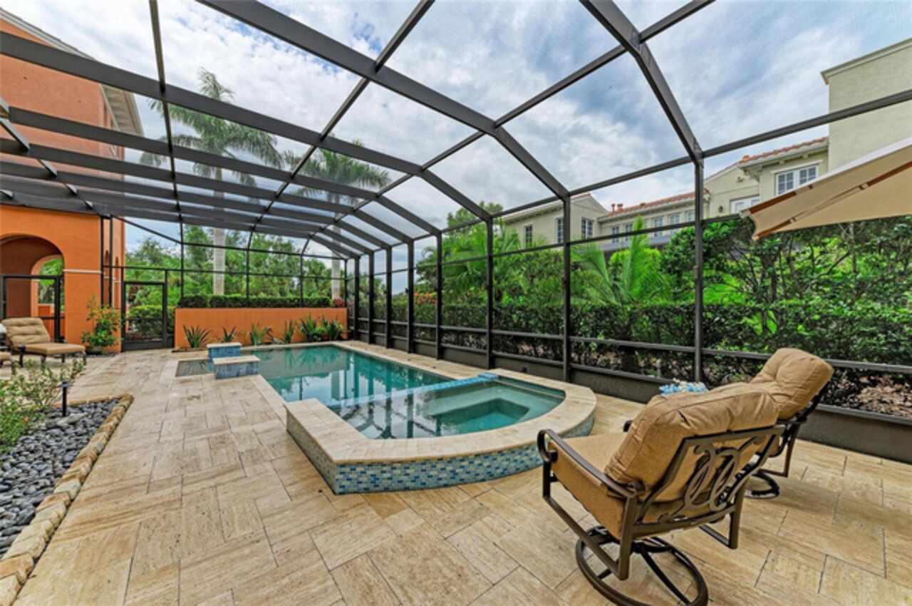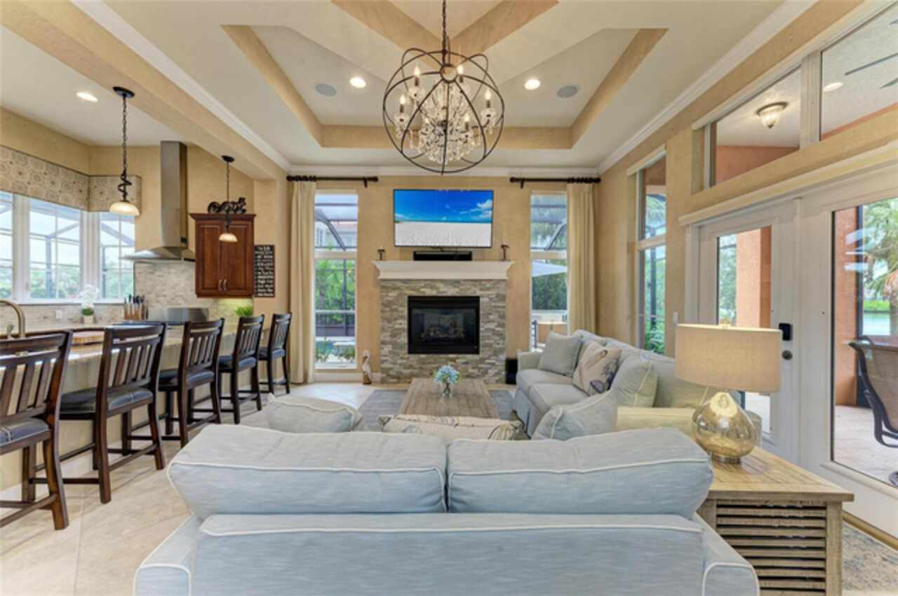 Florida luxury riverfront living in the gated community of Waterlefe Golf & River Club. This Mediterranean coastal-style villa/townhouse is located on the Manatee River with spectacular panoramic water views. This spacious two-story home offers 3, 240 square feet of living for a perfect blend of comfort, style, and functionality, with four bedrooms, four-and-a-half baths, separated living and dining rooms, beautiful high coffered and tray ceilings, hurricane-rated impact windows, remote-controlled window shades, crown molding, central vacuum, in-wall pest system, built-in ceiling speakers, screened-in heated swimming pool and jacuzzi, outside kitchen and bar and a second-story screened-in balcony with amazing views of the river. This home has extensive upgrades throughout and shows like a model. Ideal for entertaining, the impressive kitchen is outfitted for a culinary enthusiast with stainless steel appliances, including a gas stove with built-in vent, built-in wall oven, convection oven, wine refrigerator, travertine backsplash, granite counters, solid wood cabinets, breakfast bar, pantry and extra storage cabinetry. The kitchen is completely open to the living room for gatherings with family and friends, or to enjoy warming up next to the gas fireplace during the cooler months. The primary bedroom will take your breath away with the awe-inspiring water views and features direct access to the lanai overlooking the pool. The en-suite bath adds a touch of luxury with its thoughtful finishes, designed with a gorgeous soaking tub to take all your worries away, large walk-in shower with dual shower heads and dual custom-built walk-in closets. The large dining room provides plenty of space for dinner parties for your friends and family. The laundry room offers a front-load washer and dryer, utility sink and an abundance of extra storage cabinets. Upstairs, the additional three bedrooms all have en-suite baths and custom-built closets, allowing access to the screened balcony to enjoy stunning water views and beautiful sunsets. Walk through the glass doors to the outdoor screened paved area to enjoy the swimming pool, jacuzzi, outdoor kitchen with bar and grill for fun and entertainment. Within the screened pool area, you will find a covered patio with plenty of space to soak in the sun or to BBQ your favorite meal. You can also enjoy the serenity of a view to catch a glimpse of a variety of wildlife, beautiful birds and spectacular sunsets. Waterlefe Golf & River Club offers an active lifestyle with countless activities. Waterlefe River Club serves as the community hub, featuring a delightful restaurant, bar, fitness center, meeting rooms and a resort-style swimming pool with a tiki bar alongside the many comfortable lounge chairs. Get to know your neighbors at a variety of social events, from fitness classes to card games and book clubs to social events. You will find nature trails for walking, biking, boating, kayaking and fishing. Waterlefe offers an optional membership for a boat slip to the community marina for boating enthusiasts. Optional golf club memberships at an award-winning, semi-private, championship golf course. The association fee includes cable, internet, exterior maintenance including roof replacement (replaced in 2024), water, sewer, trash, painting and yard maintenance. Wake up each day knowing you are living your dream in this true Florida waterfront paradise.