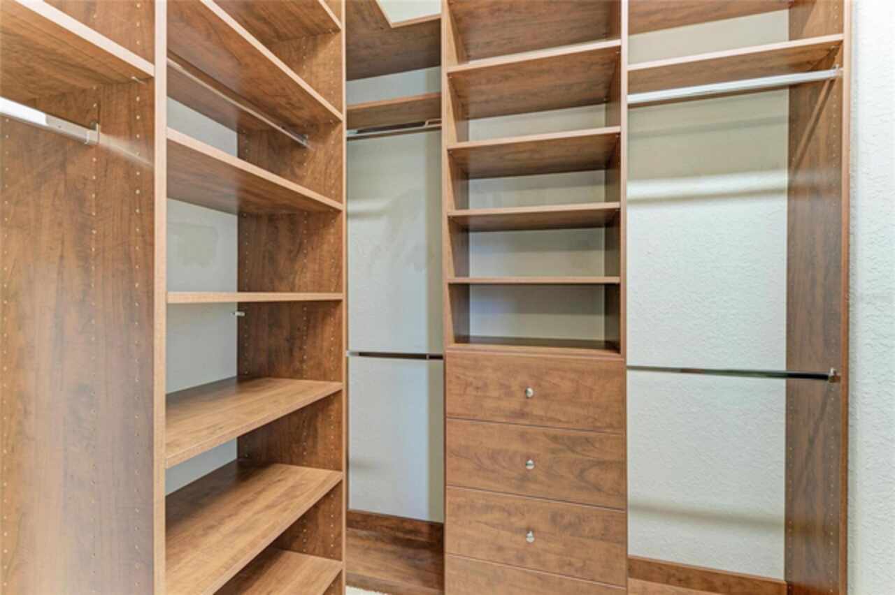 Built-in Features, Cathedral Ceiling(s), Ceiling Fans(s), Central Vaccum, Crown Molding, Eat-in Kitchen, High Ceilings, In Wall Pest System, Kitchen/Family Room Combo, Open Floorplan, Primary Bedroom Main Floor, Solid Surface Counters, Solid Wood Cabinets, Split Bedroom, Stone Counters, Thermostat, Tray Ceiling(s), Walk-In Closet(s), Wet Bar, Window Treatments