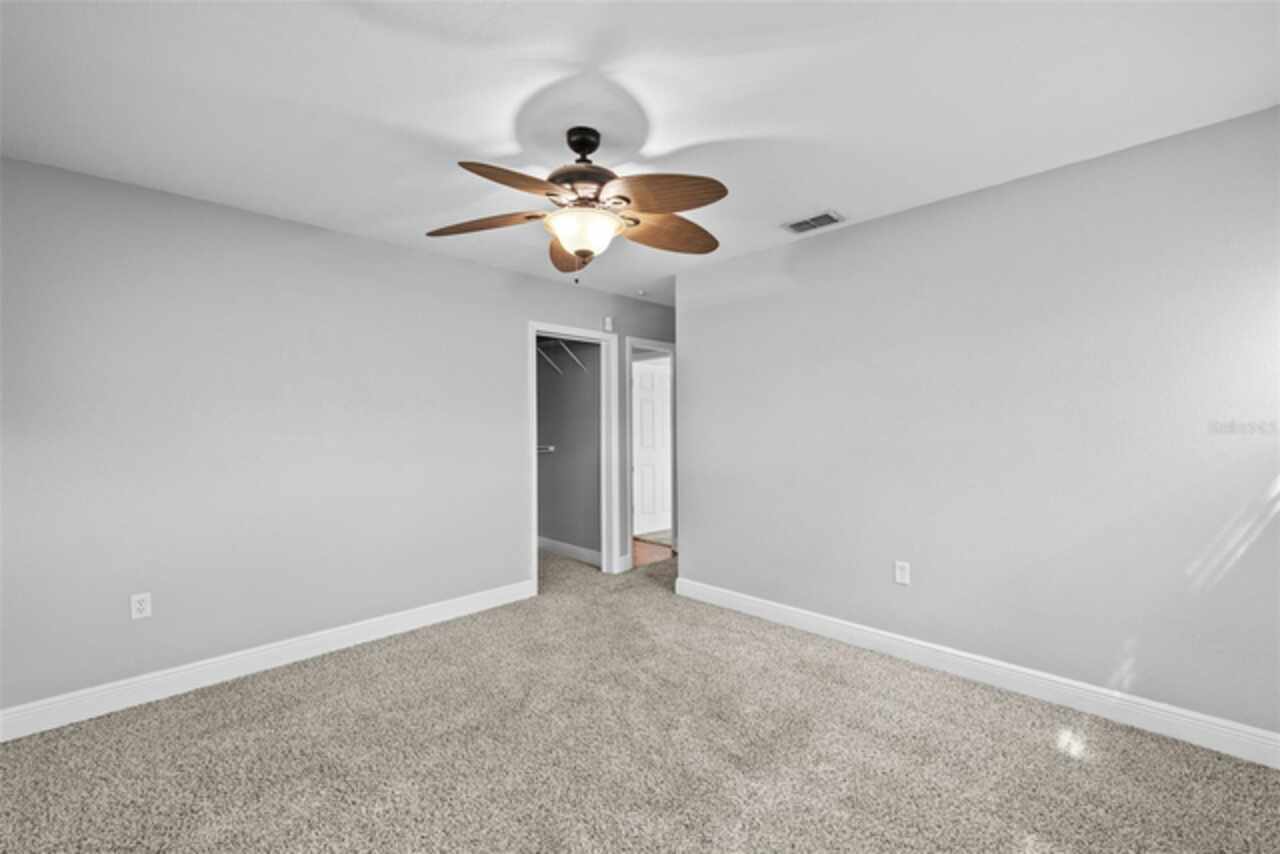 Built-in Features, Ceiling Fans(s), Crown Molding, Living Room/Dining Room Combo, Open Floorplan, Primary Bedroom Main Floor, Solid Surface Counters, Solid Wood Cabinets, Stone Counters, Thermostat, Walk-In Closet(s), Window Treatments