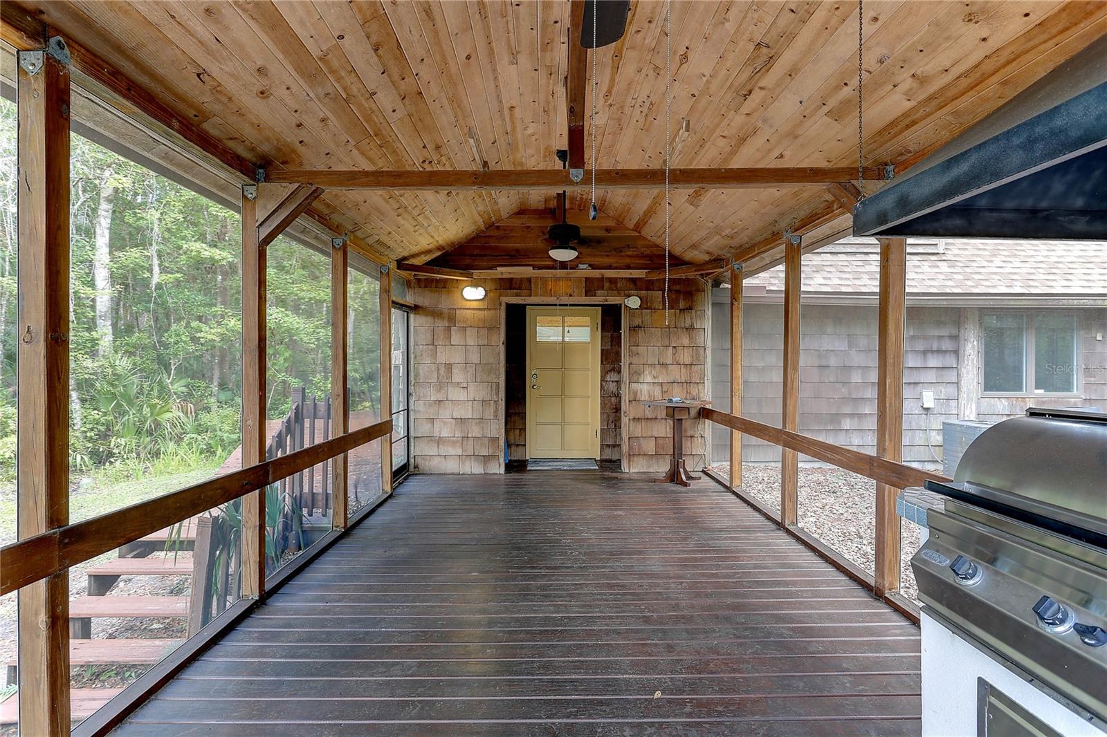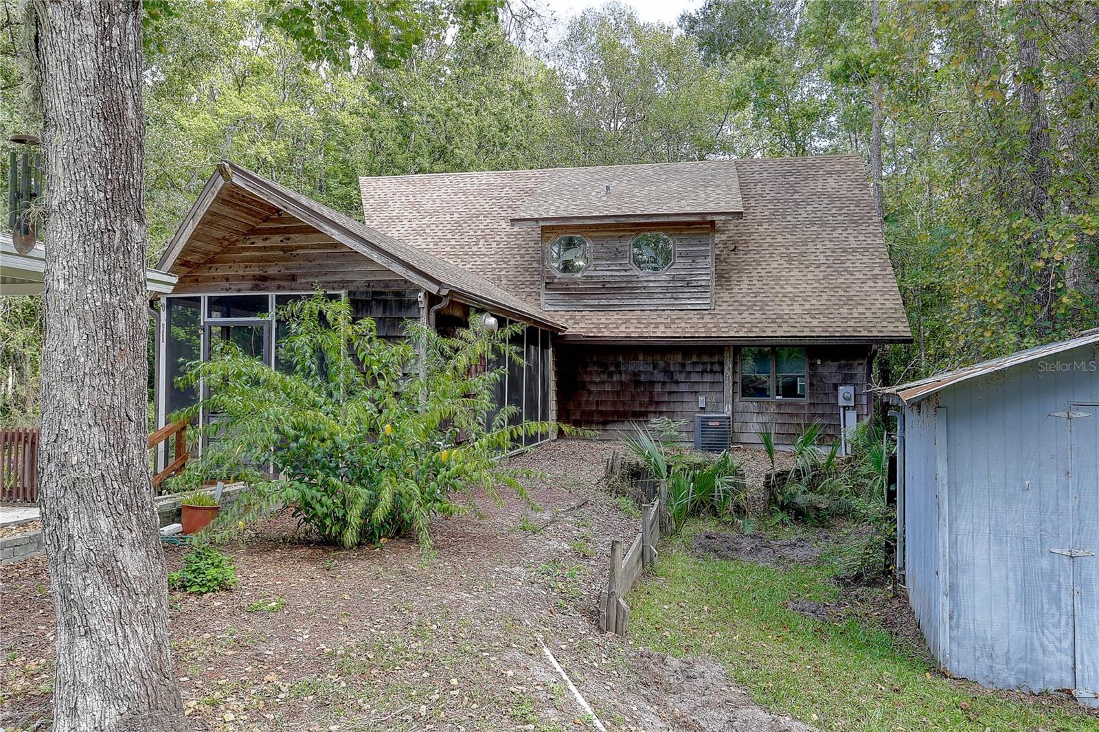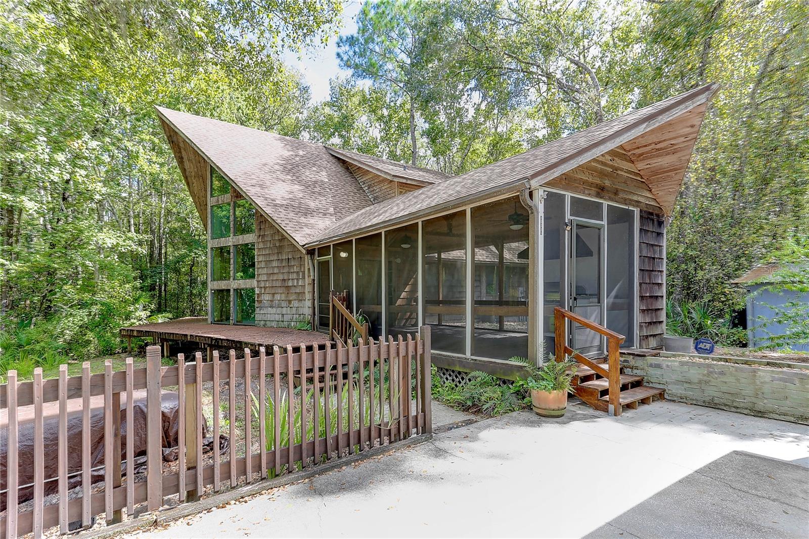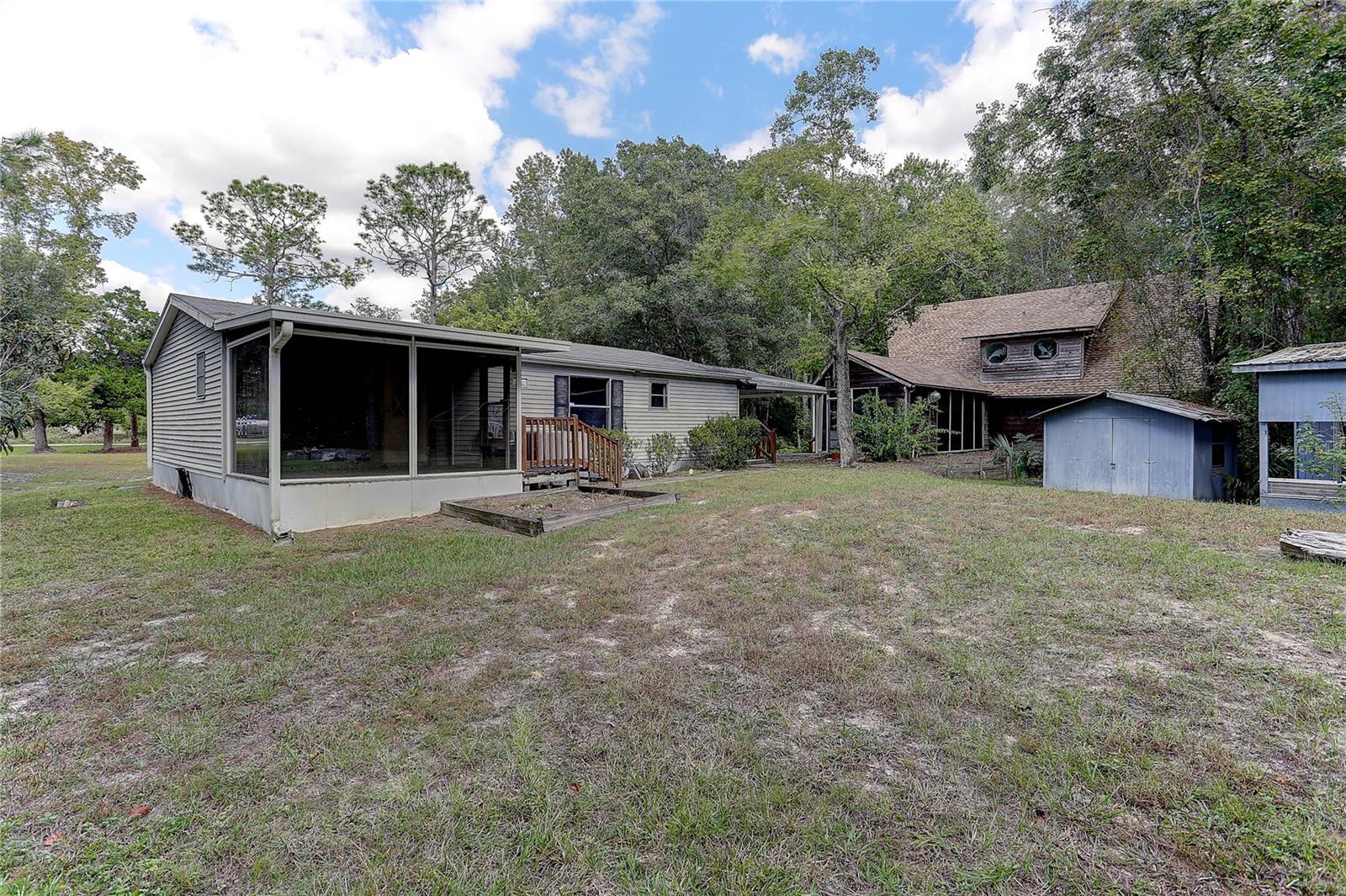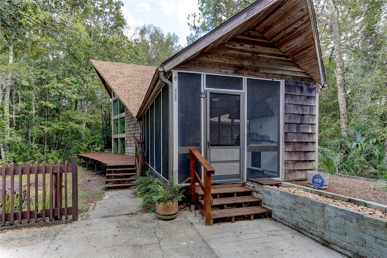 Two Homes on 2.49 Acres in Picturesque Chassahowitzka, Florida The main residence is a custom-built chalet-style cedar home showcasing dramatic glassed prows and exceptional craftsmanship, constructed in 1998. It offers 1, 645 square feet of living area with three bedrooms and two baths. The first floor features a spacious great room, kitchen, two bedrooms, and one bath, while the second level provides an open loft-style primary bedroom with a walk-in closet and full bath. Architectural highlights include soaring vaulted ceilings finished in tongue-and-groove cedar, a stunning corner stone fireplace, and a wraparound front deck. An attached screened cedar porch with vaulted ceilings and an outdoor kitchen creates the perfect setting for entertaining or relaxing while enjoying the surrounding wildlife. The washer and dryer are conveniently located in a kitchen closet, and the roof was replaced in 2024. The second home, a 1990 doublewide manufactured home with 960 square feet of living area, includes two bedrooms and two baths. It offers a front open deck and a rear glass-enclosed porch and is ready for renovation. This tranquil Chassahowitzka location captures the charm of “Old Florida” with its wooded surroundings and nearby creeks and rivers. The community boat ramp and canoe/kayak launch are just a couple of blocks away, making it ideal for nature lovers and weekend getaways. The second home presents excellent potential as a rental, guest home, or workspace for those who desire to operate a home-based business. Please take a moment to view the professional photos and virtual tour, then contact your Realtor to arrange a private showing before this exceptional property is gone!
