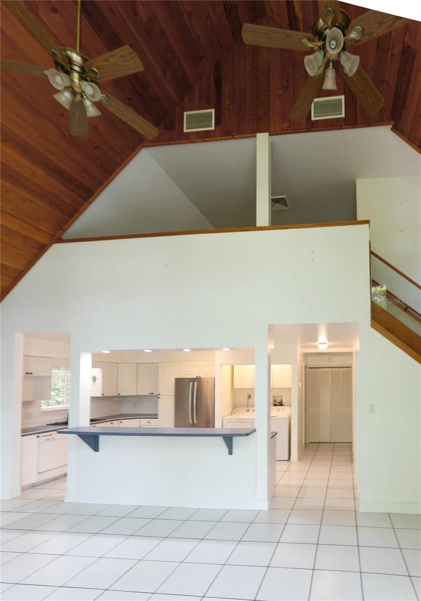 Cathedral Ceiling(s), Ceiling Fans(s), High Ceilings, Open Floorplan, PrimaryBedroom Upstairs, Thermostat, Vaulted Ceiling(s), Walk-In Closet(s)