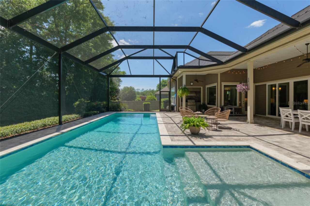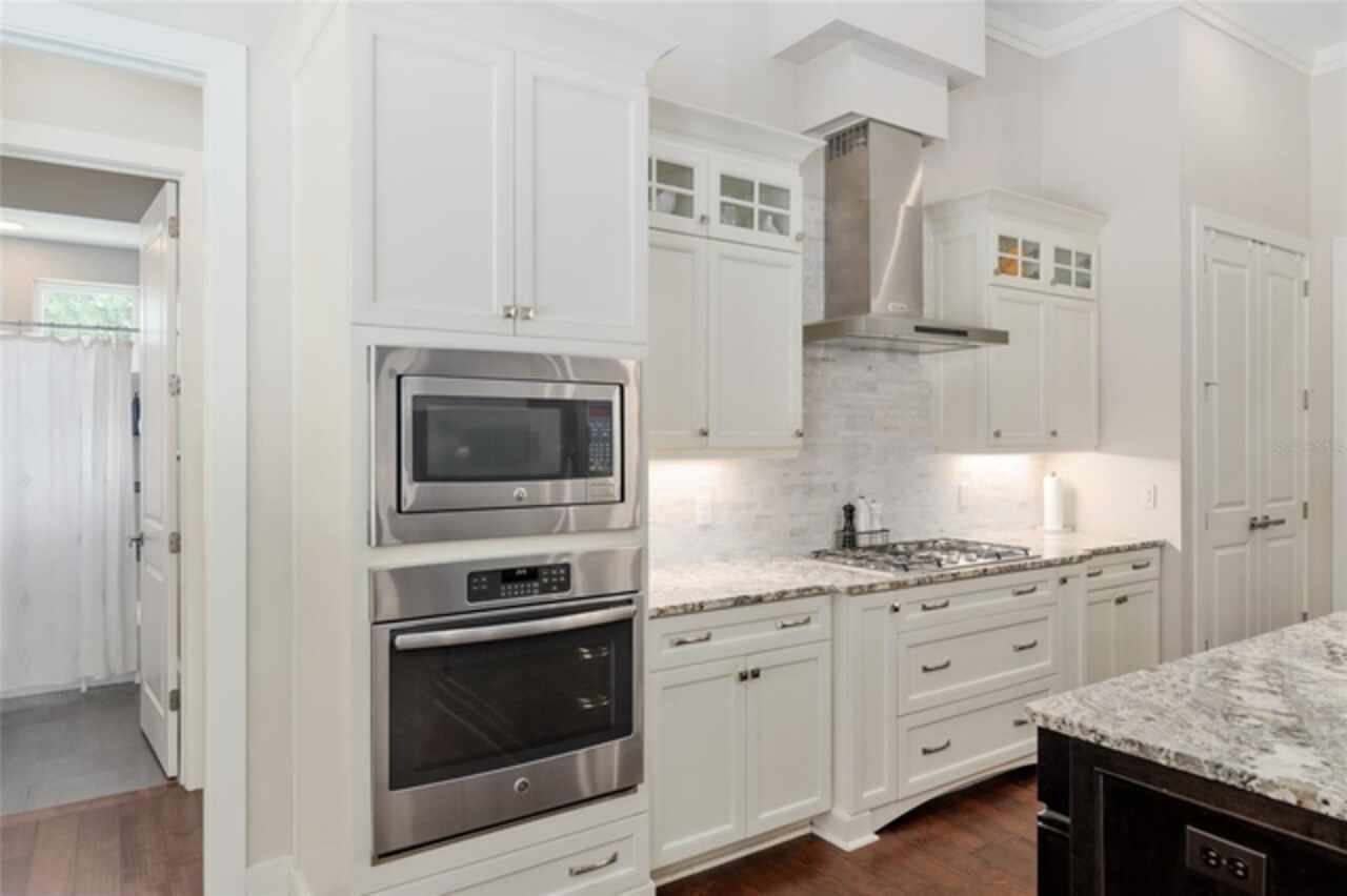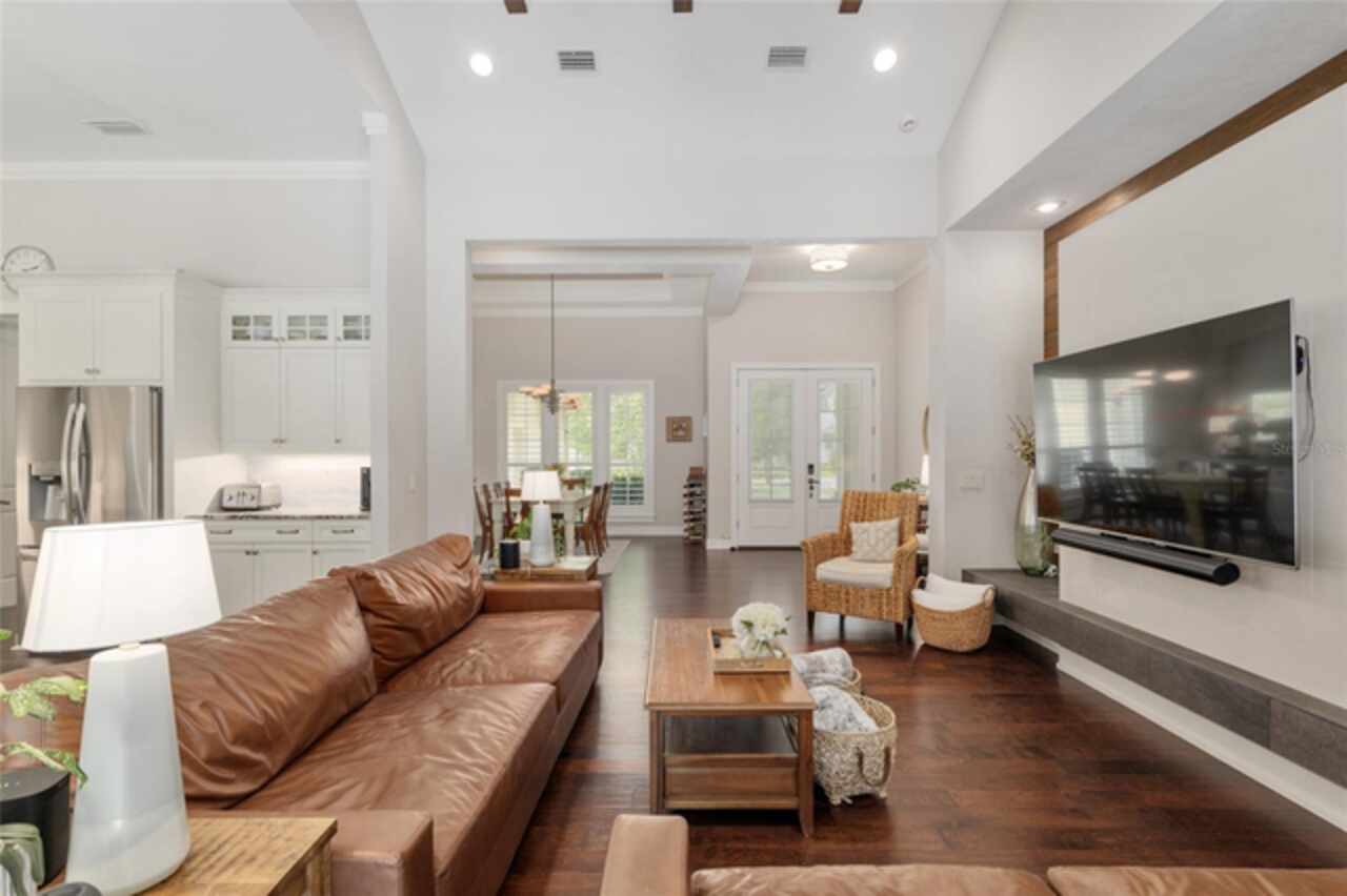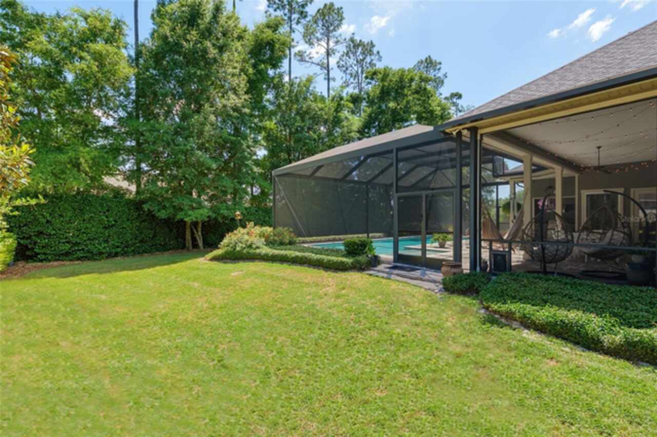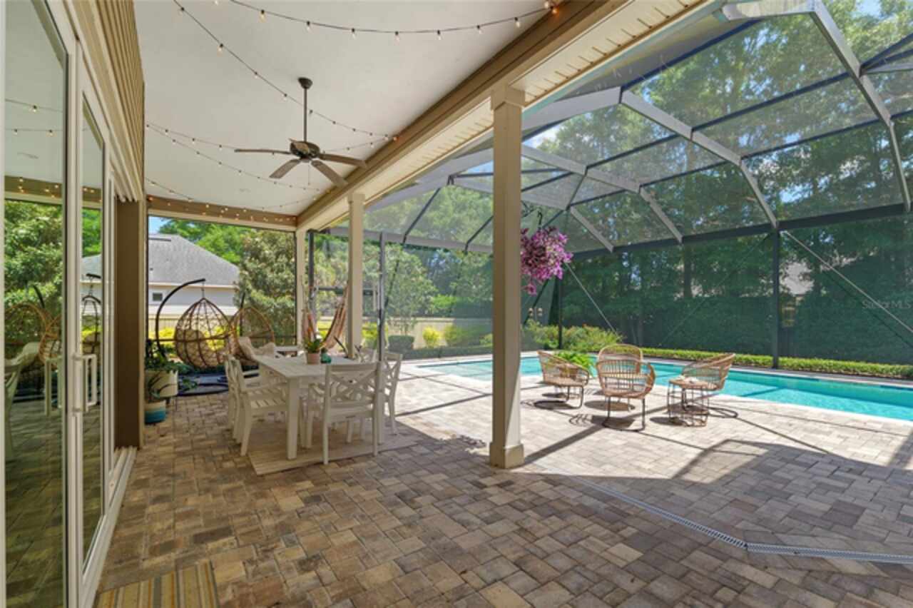Under contract-accepting backup offers. Exceptionally built, an exceptional location and an exceptional floor plan! This Mark Warring built home in the Estates of Wilds Plantation is situated on a rarely available south-facing lot, which maximizes sunlight exposure. This popular floor plan features 4 bedrooms plus bonus room/5th bedroom home and 4 baths. Rich engineered hardwood flooring connects all of the downstairs living spaces. The separate dining room, great room, kitchen and nook have an easy flow, perfect for daily living or for casual entertaining. The wood beam vaulted ceiling gives the family room its spacious feel. The focal point is the wood ship lap wall with its modern aesthetic for your TV and gas fireplace. Floating shelves are to the right, and the entire wall has an elevated tiled hearth. Open the telescoping sliding glass doors to access your paver lanai, pool and summer kitchen area. The stunning kitchen has hand-crafted wood cabinetry and neutral granite counters. On each side of the exhaust hood are display cabinetry with glass inserts. Add’l features include a convection wall oven and separate microwave, a gas cooktop, double door pantry, a custom backsplash and a functional one-level center island countertop. The nook has a single French door for lanai and summer kitchen access. Via the nook are 2 guest rooms, each with double door closets, and a full guest bath. Off the opposite end of the kitchen is the en suite guest bedroom. This 4-way split plan offers the master suite and bath occupying the entire left wing of the home. Best features include south-facing windows of the lanai and pool and a step-up tray ceiling accented with natural wood beams. The hallway to the bath has his-and-her walk-in closets, each with organizational systems, and a hallway dressing mirror. The master bath features handcrafted floating cabinetry, neutral granite counters, a soaking tub with a custom tile wall and shelving flanking each side, and a separate water closet and step-in shower. The staircase for the bonus room/5th bedroom is located in the clutter hallway near the laundry room hallway. The upstairs landing as a direct attic access door and a storage closet. Spanning the width of the 3CG below with 528SF, the bonus room/5th bedroom features a double door entry, built-in shelving and a full guest bath. Downstairs the concrete paver lanai can be accessed via the nook or great room. The summer kitchen has a built-in grill with exhaust hood. The pool, its solar panels, and screen enclosure were added in 2017. The pool is perfect for swimming laps and for fun and play. The screen enclosure was specially engineered for “picture” screening for uninterrupted views of the rear yard on all 3 sides. Additional home features include 30-year architectural shingle roof, irrigation system, laundry room with sink and upper and lower cabinets for storage, Plantation shutters, Leviton WiFi enabled lighting system with dimming feature, alarm system, tankless gas WH, and a zoned high efficiency HVAC system. Walk, ride your bike or drive to the nearby local and private schools. Publix, several restaurants and local shops in the Haile Market Square, only 4 min away.