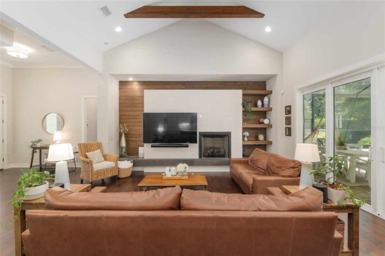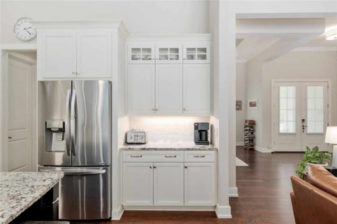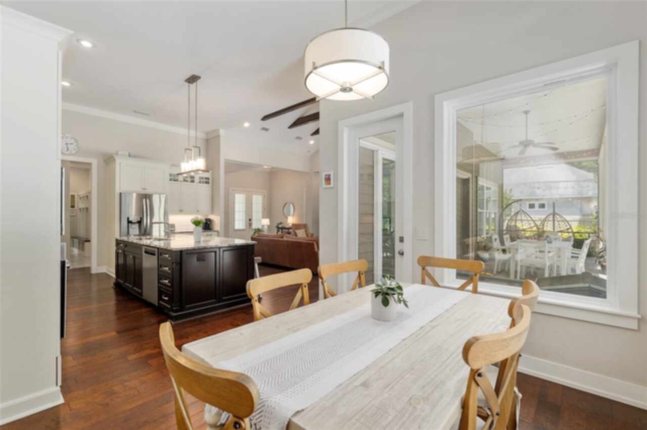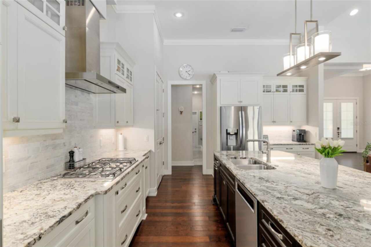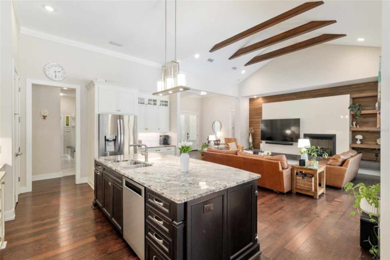Under contract-accepting backup offers. Exceptionally built, an exceptional location and an exceptional floor plan! This Mark Warring built home in the Estates of Wilds Plantation is situated on a rarely available south-facing lot, which maximizes sunlight exposure. This popular floor plan features 4 bedrooms plus bonus room/5th bedroom home and 4 baths. Rich engineered hardwood flooring connects all of the downstairs living spaces. The separate dining room, great room, kitchen and nook have an easy flow, perfect for daily living or for casual entertaining. The wood beam vaulted ceiling gives the family room its spacious feel. The focal point is the wood ship lap wall with its modern aesthetic for your TV and gas fireplace. Floating shelves are to the right, and the entire wall has an elevated tiled hearth. Open the telescoping sliding glass doors to access your paver lanai, pool and summer kitchen area. The stunning kitchen has hand-crafted wood cabinetry and neutral granite counters. On each side of the exhaust hood are display cabinetry with glass inserts. Add’l features include a convection wall oven and separate microwave, a gas cooktop, double door pantry, a custom backsplash and a functional one-level center island countertop. The nook has a single French door for lanai and summer kitchen access. Via the nook are 2 guest rooms, each with double door closets, and a full guest bath. Off the opposite end of the kitchen is the en suite guest bedroom. This 4-way split plan offers the master suite and bath occupying the entire left wing of the home. Best features include south-facing windows of the lanai and pool and a step-up tray ceiling accented with natural wood beams. The hallway to the bath has his-and-her walk-in closets, each with organizational systems, and a hallway dressing mirror. The master bath features handcrafted floating cabinetry, neutral granite counters, a soaking tub with a custom tile wall and shelving flanking each side, and a separate water closet and step-in shower. The staircase for the bonus room/5th bedroom is located in the clutter hallway near the laundry room hallway. The upstairs landing as a direct attic access door and a storage closet. Spanning the width of the 3CG below with 528SF, the bonus room/5th bedroom features a double door entry, built-in shelving and a full guest bath. Downstairs the concrete paver lanai can be accessed via the nook or great room. The summer kitchen has a built-in grill with exhaust hood. The pool, its solar panels, and screen enclosure were added in 2017. The pool is perfect for swimming laps and for fun and play. The screen enclosure was specially engineered for “picture” screening for uninterrupted views of the rear yard on all 3 sides. Additional home features include 30-year architectural shingle roof, irrigation system, laundry room with sink and upper and lower cabinets for storage, Plantation shutters, Leviton WiFi enabled lighting system with dimming feature, alarm system, tankless gas WH, and a zoned high efficiency HVAC system. Walk, ride your bike or drive to the nearby local and private schools. Publix, several restaurants and local shops in the Haile Market Square, only 4 min away.