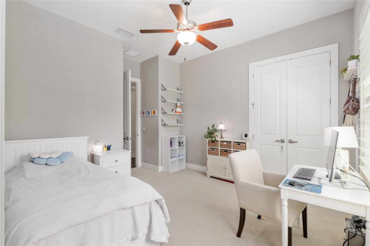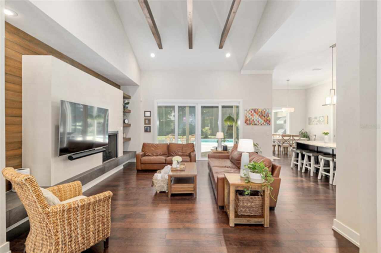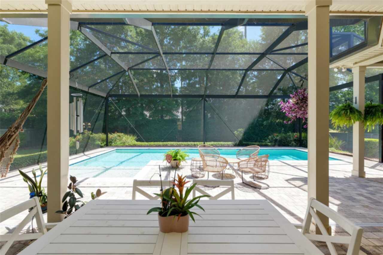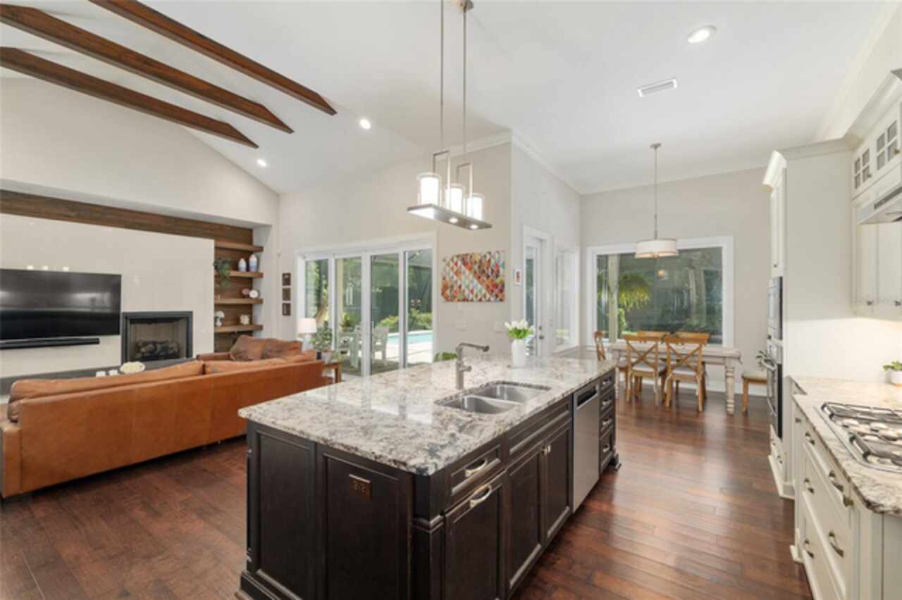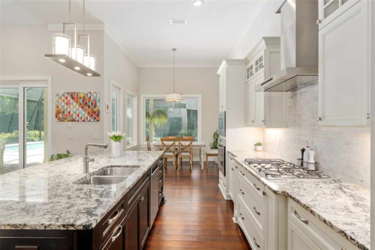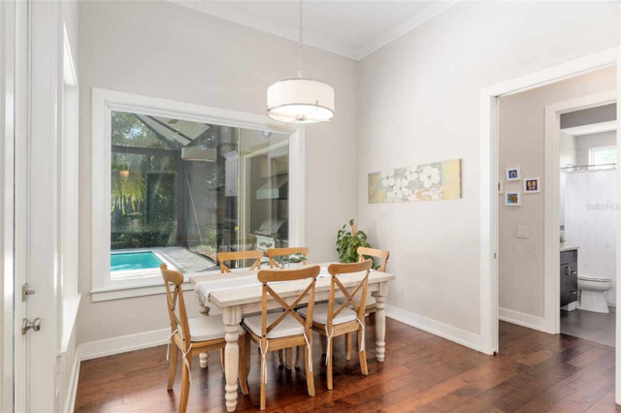 Under contract-accepting backup offers. Exceptionally built, an exceptional location and an exceptional floor plan! This Mark Warring built home in the Estates of Wilds Plantation is situated on a rarely available south-facing lot, which maximizes sunlight exposure. This popular floor plan features 4 bedrooms plus bonus room/5th bedroom home and 4 baths. Rich engineered hardwood flooring connects all of the downstairs living spaces. The separate dining room, great room, kitchen and nook have an easy flow, perfect for daily living or for casual entertaining. The wood beam vaulted ceiling gives the family room its spacious feel. The focal point is the wood ship lap wall with its modern aesthetic for your TV and gas fireplace. Floating shelves are to the right, and the entire wall has an elevated tiled hearth. Open the telescoping sliding glass doors to access your paver lanai, pool and summer kitchen area. The stunning kitchen has hand-crafted wood cabinetry and neutral granite counters. On each side of the exhaust hood are display cabinetry with glass inserts. Add’l features include a convection wall oven and separate microwave, a gas cooktop, double door pantry, a custom backsplash and a functional one-level center island countertop. The nook has a single French door for lanai and summer kitchen access. Via the nook are 2 guest rooms, each with double door closets, and a full guest bath. Off the opposite end of the kitchen is the en suite guest bedroom. This 4-way split plan offers the master suite and bath occupying the entire left wing of the home. Best features include south-facing windows of the lanai and pool and a step-up tray ceiling accented with natural wood beams. The hallway to the bath has his-and-her walk-in closets, each with organizational systems, and a hallway dressing mirror. The master bath features handcrafted floating cabinetry, neutral granite counters, a soaking tub with a custom tile wall and shelving flanking each side, and a separate water closet and step-in shower. The staircase for the bonus room/5th bedroom is located in the clutter hallway near the laundry room hallway. The upstairs landing as a direct attic access door and a storage closet. Spanning the width of the 3CG below with 528SF, the bonus room/5th bedroom features a double door entry, built-in shelving and a full guest bath. Downstairs the concrete paver lanai can be accessed via the nook or great room. The summer kitchen has a built-in grill with exhaust hood. The pool, its solar panels, and screen enclosure were added in 2017. The pool is perfect for swimming laps and for fun and play. The screen enclosure was specially engineered for “picture” screening for uninterrupted views of the rear yard on all 3 sides. Additional home features include 30-year architectural shingle roof, irrigation system, laundry room with sink and upper and lower cabinets for storage, Plantation shutters, Leviton WiFi enabled lighting system with dimming feature, alarm system, tankless gas WH, and a zoned high efficiency HVAC system. Walk, ride your bike or drive to the nearby local and private schools. Publix, several restaurants and local shops in the Haile Market Square, only 4 min away.