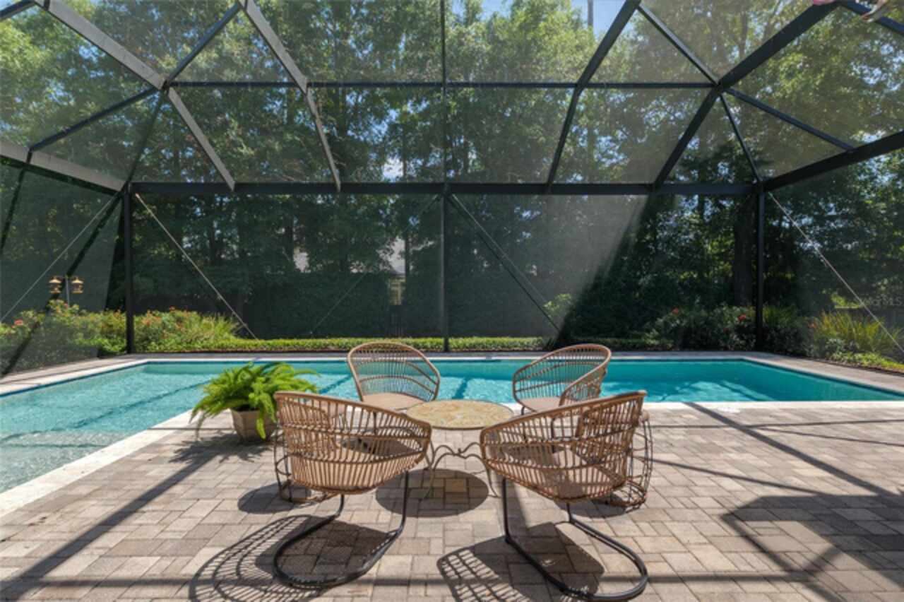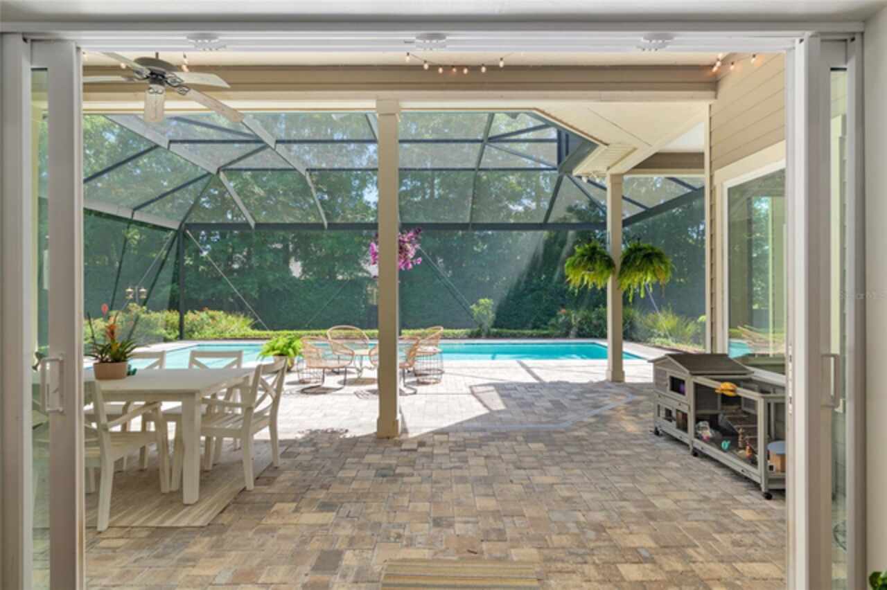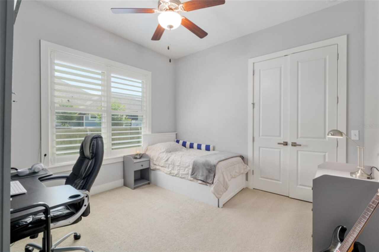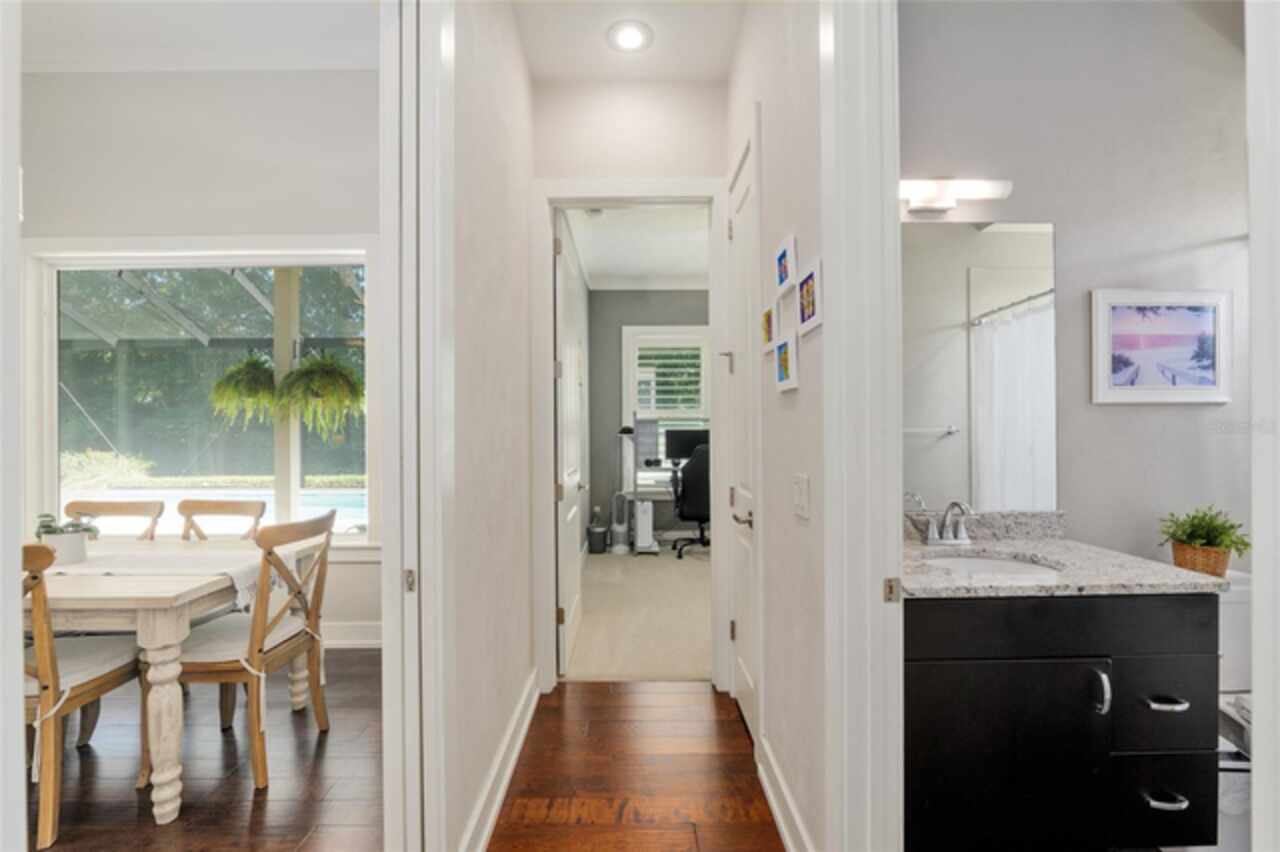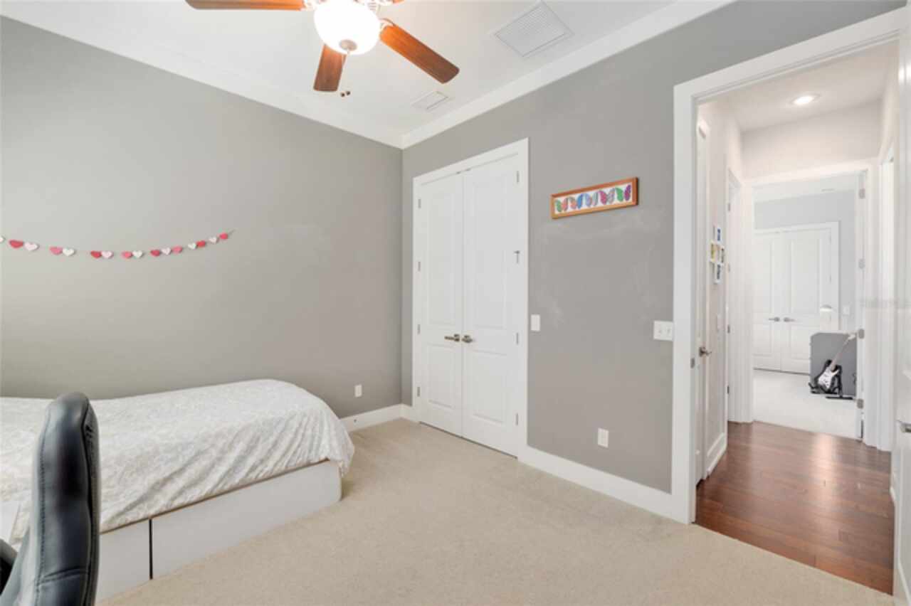 Under contract-accepting backup offers. Exceptionally built, an exceptional location and an exceptional floor plan! This Mark Warring built home in the Estates of Wilds Plantation is situated on a rarely available south-facing lot, which maximizes sunlight exposure. This popular floor plan features 4 bedrooms plus bonus room/5th bedroom home and 4 baths. Rich engineered hardwood flooring connects all of the downstairs living spaces. The separate dining room, great room, kitchen and nook have an easy flow, perfect for daily living or for casual entertaining. The wood beam vaulted ceiling gives the family room its spacious feel. The focal point is the wood ship lap wall with its modern aesthetic for your TV and gas fireplace. Floating shelves are to the right, and the entire wall has an elevated tiled hearth. Open the telescoping sliding glass doors to access your paver lanai, pool and summer kitchen area. The stunning kitchen has hand-crafted wood cabinetry and neutral granite counters. On each side of the exhaust hood are display cabinetry with glass inserts. Add’l features include a convection wall oven and separate microwave, a gas cooktop, double door pantry, a custom backsplash and a functional one-level center island countertop. The nook has a single French door for lanai and summer kitchen access. Via the nook are 2 guest rooms, each with double door closets, and a full guest bath. Off the opposite end of the kitchen is the en suite guest bedroom. This 4-way split plan offers the master suite and bath occupying the entire left wing of the home. Best features include south-facing windows of the lanai and pool and a step-up tray ceiling accented with natural wood beams. The hallway to the bath has his-and-her walk-in closets, each with organizational systems, and a hallway dressing mirror. The master bath features handcrafted floating cabinetry, neutral granite counters, a soaking tub with a custom tile wall and shelving flanking each side, and a separate water closet and step-in shower. The staircase for the bonus room/5th bedroom is located in the clutter hallway near the laundry room hallway. The upstairs landing as a direct attic access door and a storage closet. Spanning the width of the 3CG below with 528SF, the bonus room/5th bedroom features a double door entry, built-in shelving and a full guest bath. Downstairs the concrete paver lanai can be accessed via the nook or great room. The summer kitchen has a built-in grill with exhaust hood. The pool, its solar panels, and screen enclosure were added in 2017. The pool is perfect for swimming laps and for fun and play. The screen enclosure was specially engineered for “picture” screening for uninterrupted views of the rear yard on all 3 sides. Additional home features include 30-year architectural shingle roof, irrigation system, laundry room with sink and upper and lower cabinets for storage, Plantation shutters, Leviton WiFi enabled lighting system with dimming feature, alarm system, tankless gas WH, and a zoned high efficiency HVAC system. Walk, ride your bike or drive to the nearby local and private schools. Publix, several restaurants and local shops in the Haile Market Square, only 4 min away.